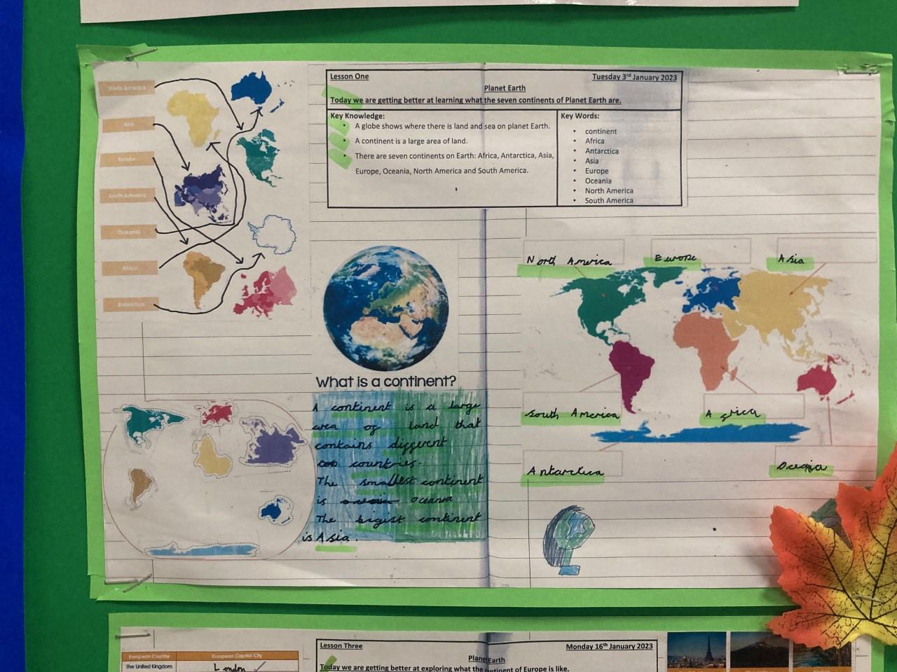 Year 2 have loved learning all about Planet Earth in Geography. They have learnt about the 7 continents and 5 oceans and are learning lots of interesting facts about the different continents.