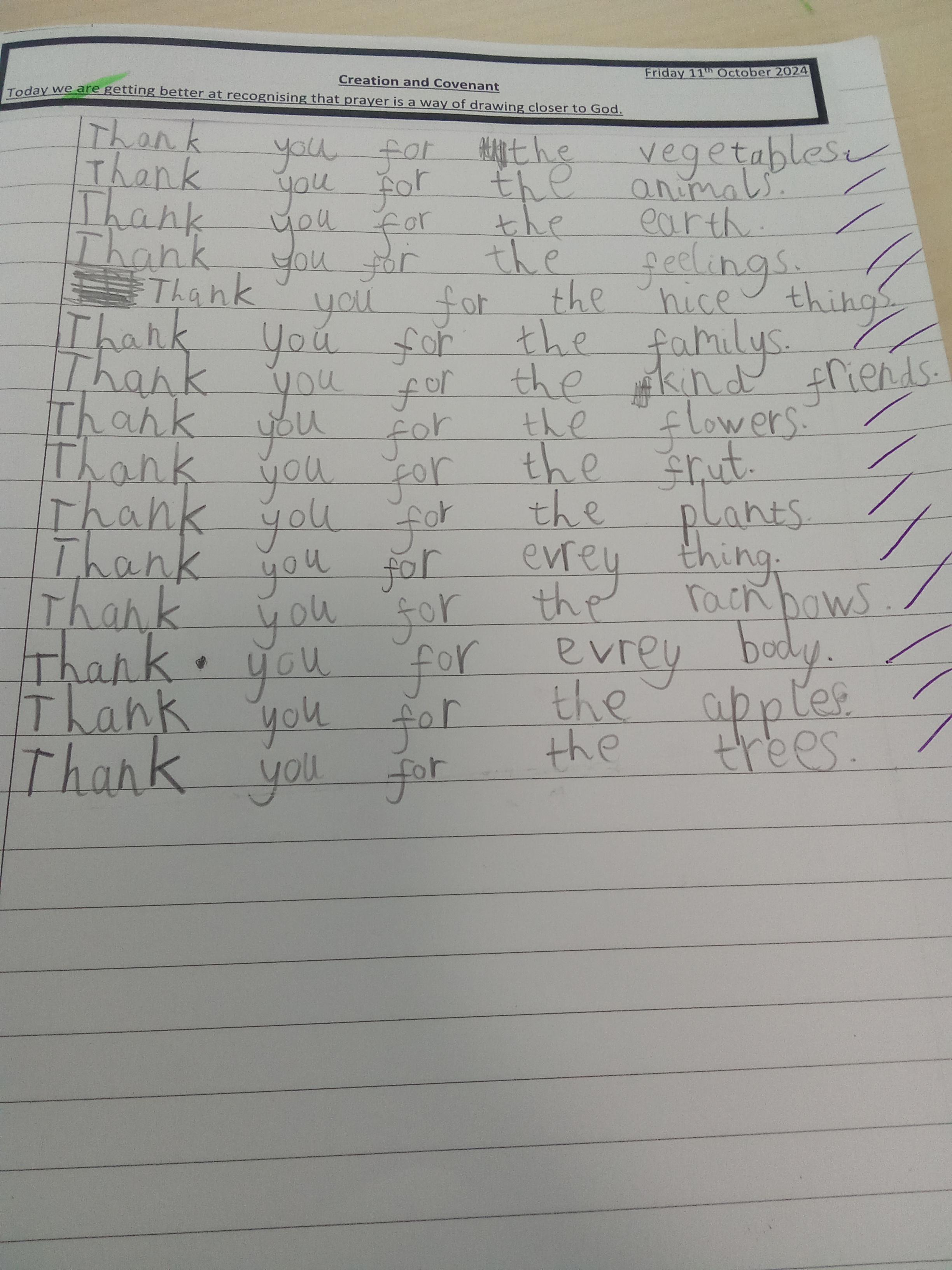 Year 2 have been exploring the topic 'Thanksgiving'. They have explored what they are thankful for and the different ways they can say thank you. They then learnt about the story of the Last Supper and its significance.