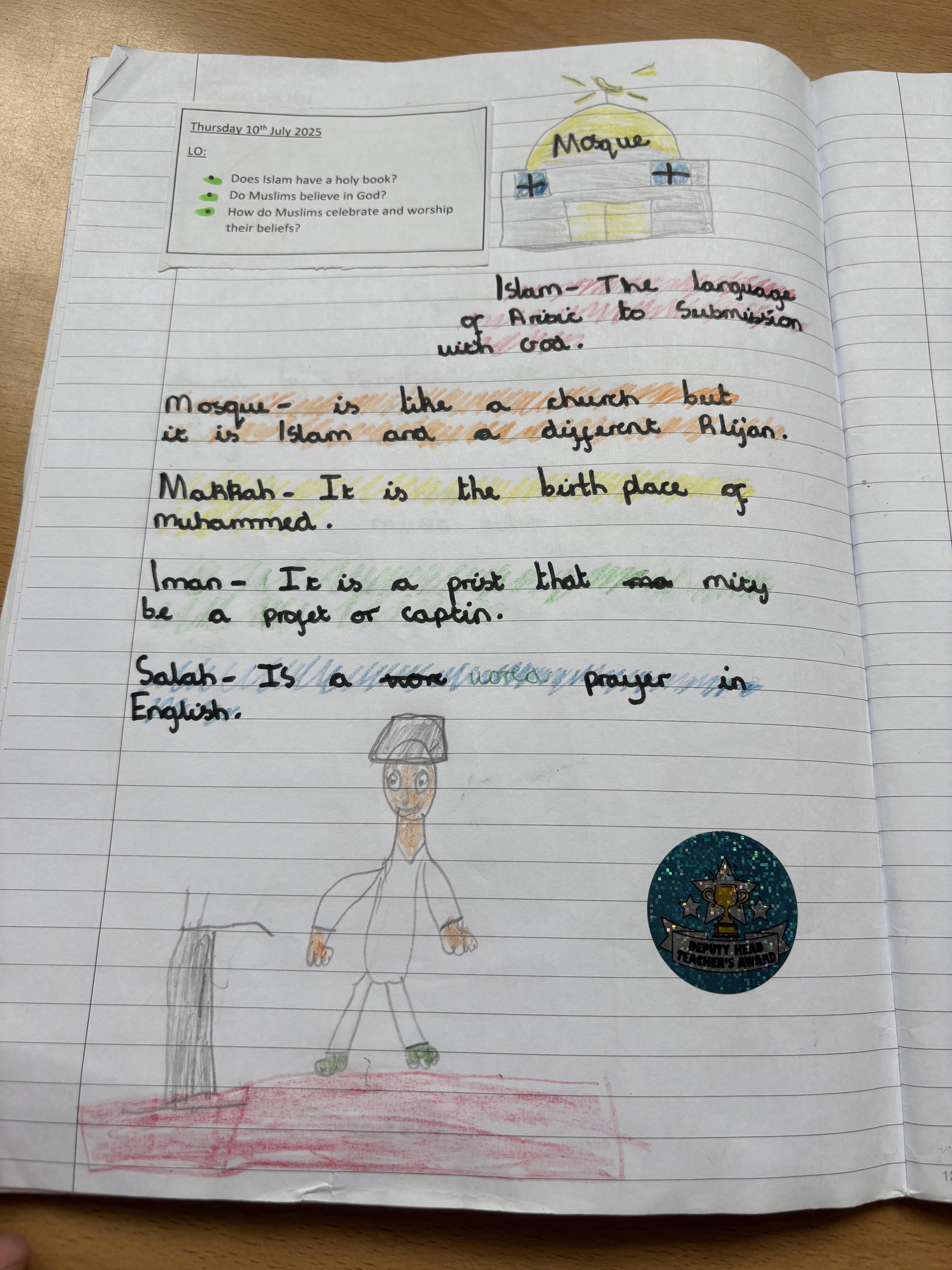 Year 2 loved learning about Islam. They learnt all about how Muslims pray at home and what life is like in a Muslim family.