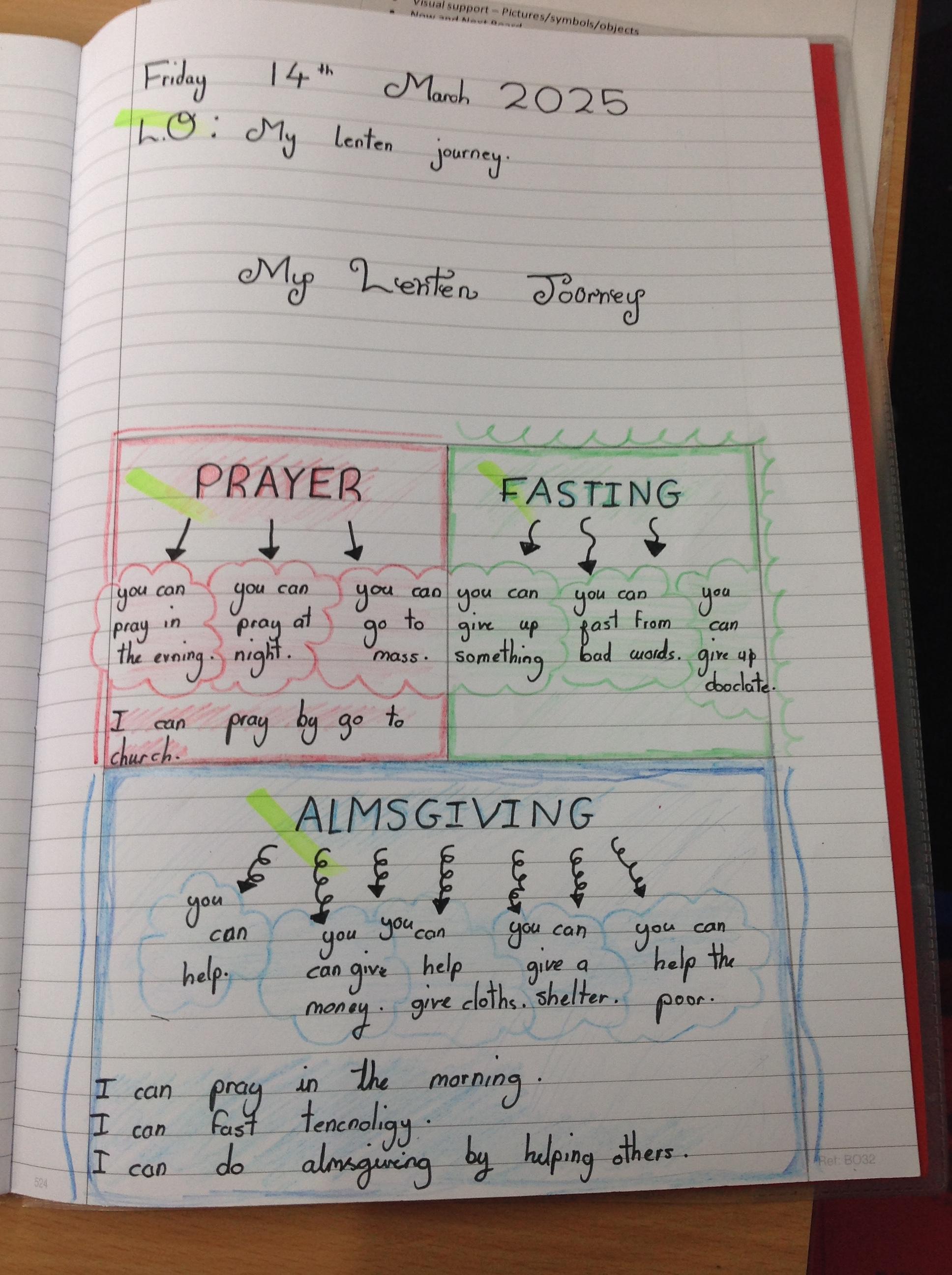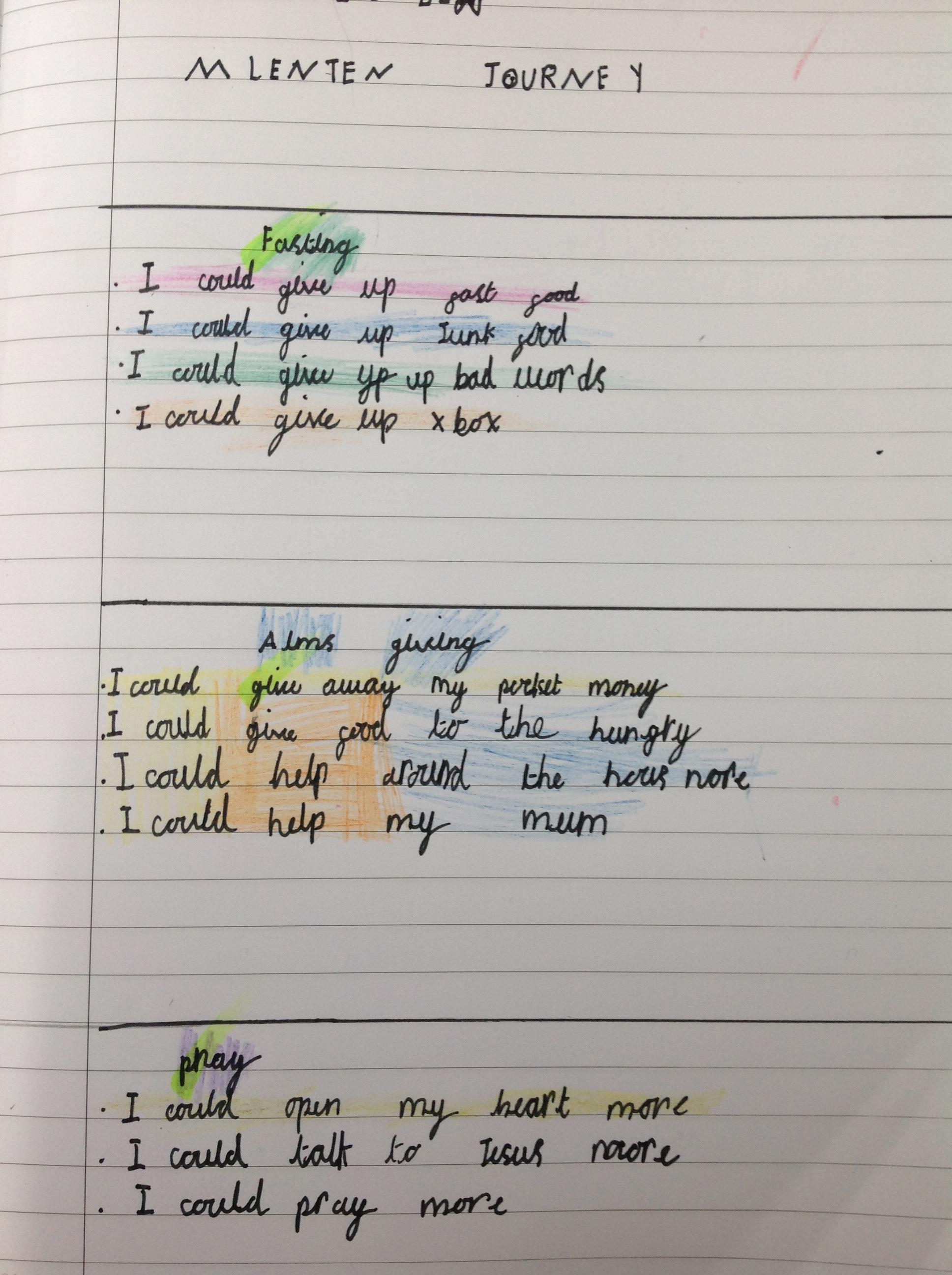 In Year One, we have explored Lent and looked at how we can Pray, help others and fast during the next 40 days. We worked as a group to think of different ideas.