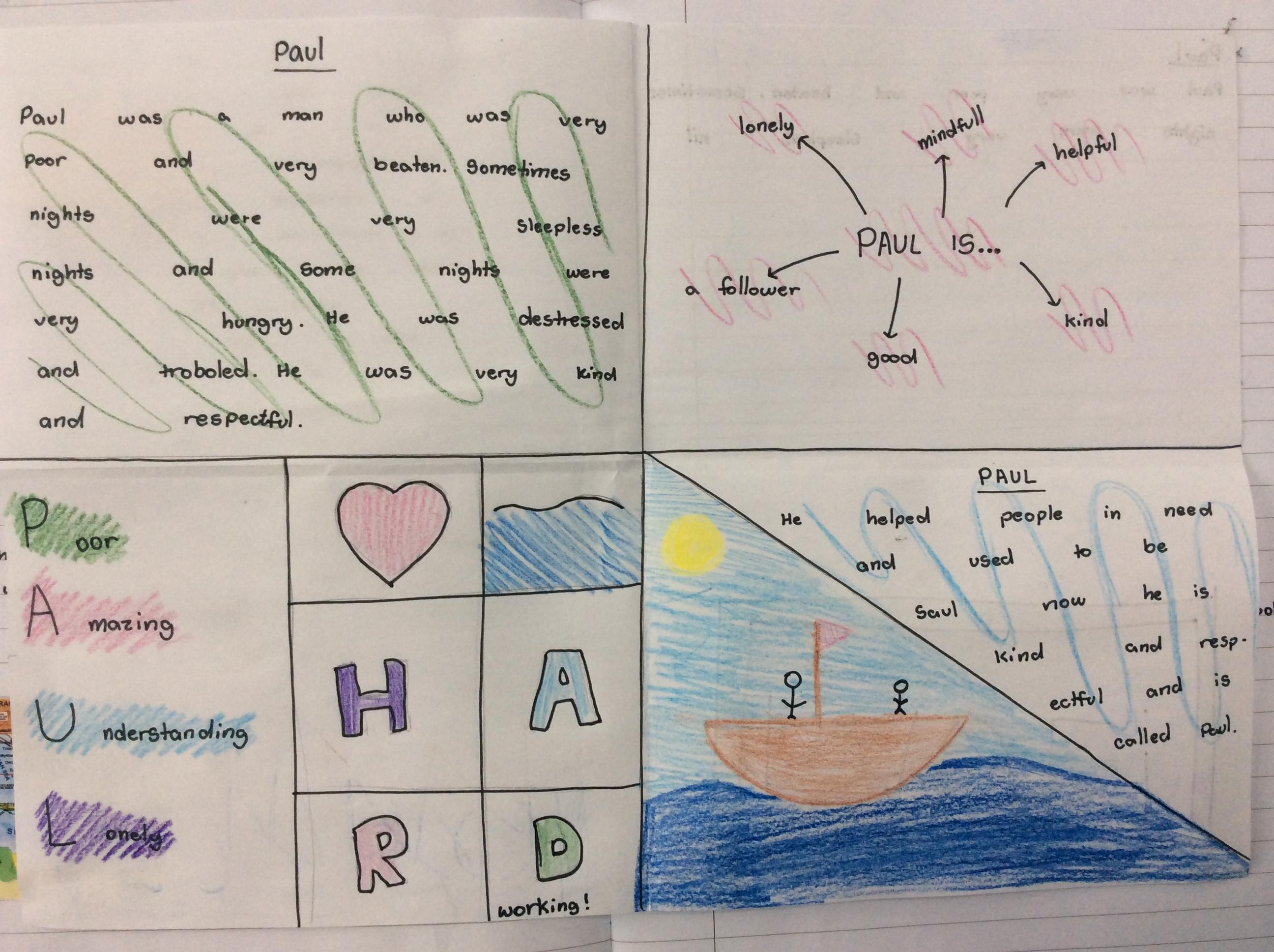 Year 4 looked at the family of Ruth including her descendant Solomon. They used speech bubbles to represent how Ruth was to both her mother-in-law Naomi and husband Boaz. They then looked at how Solomon was a great and wise leader.