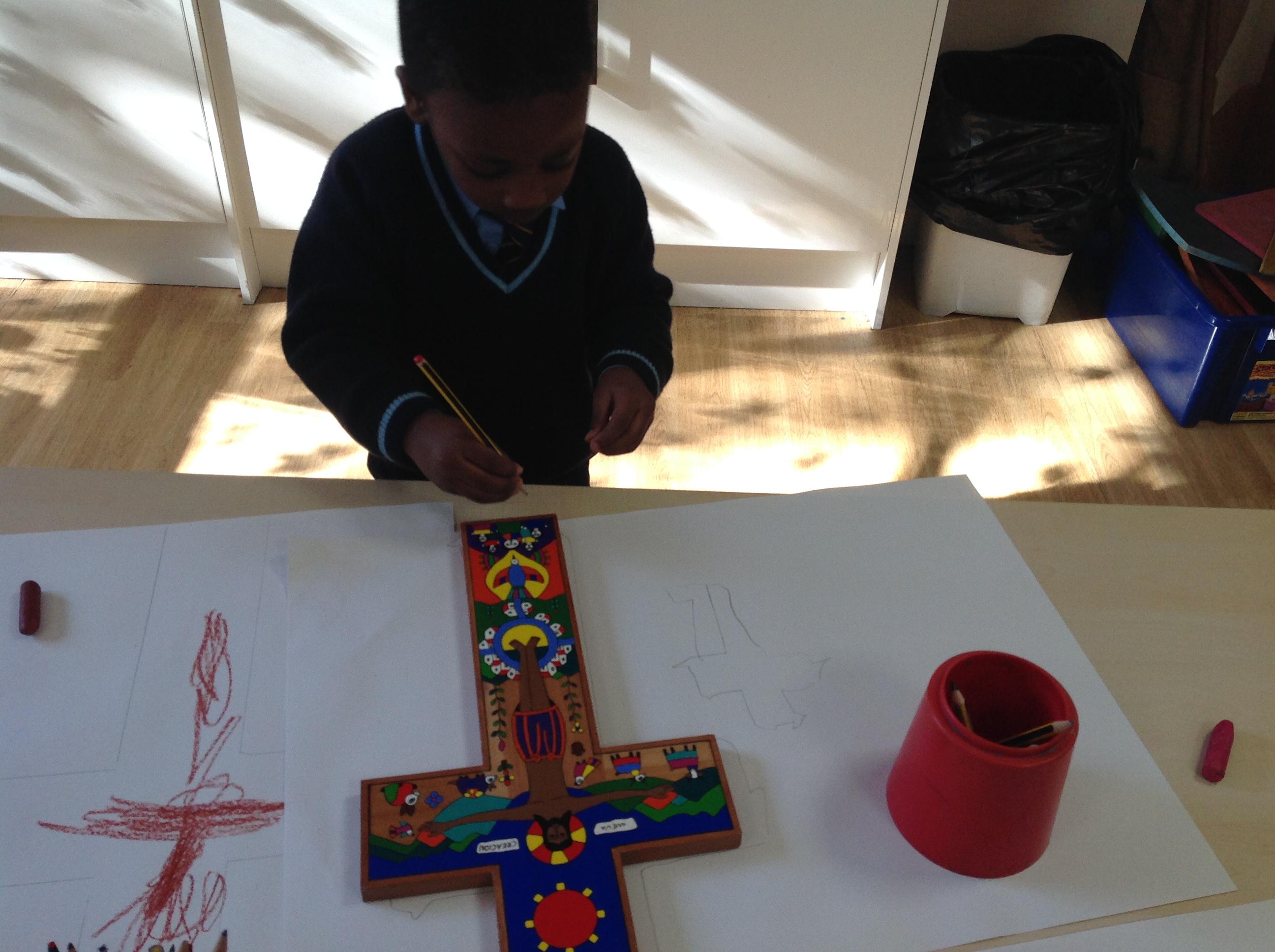 In Year 2, they have created a piece of artwork in RE to represent and celebrate the fact that God is always with us.