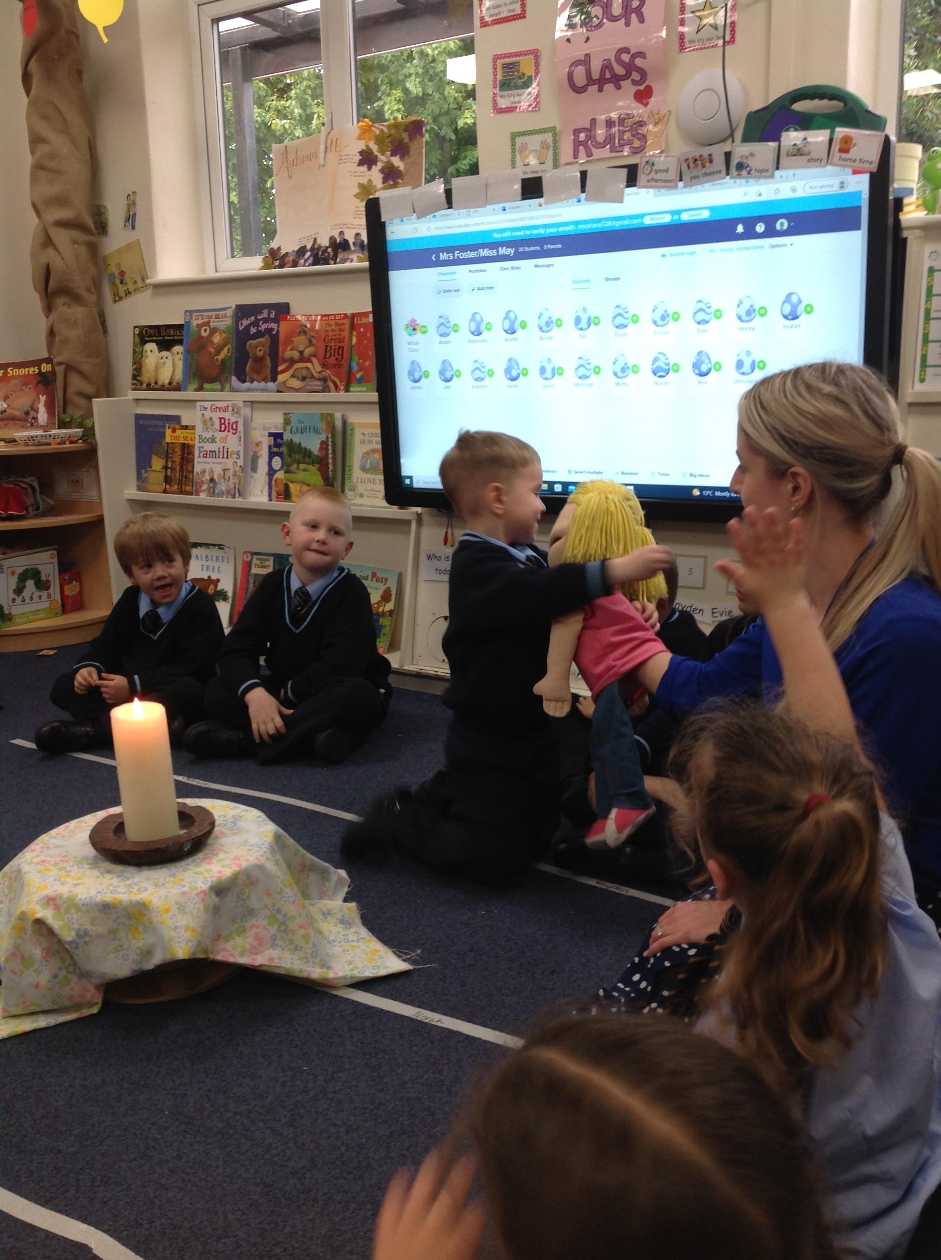 Welcome - In RE, Reception have been talking about how we would welcome someone new into our class. Our children loved meeting our new friend and giving them lots of hugs!