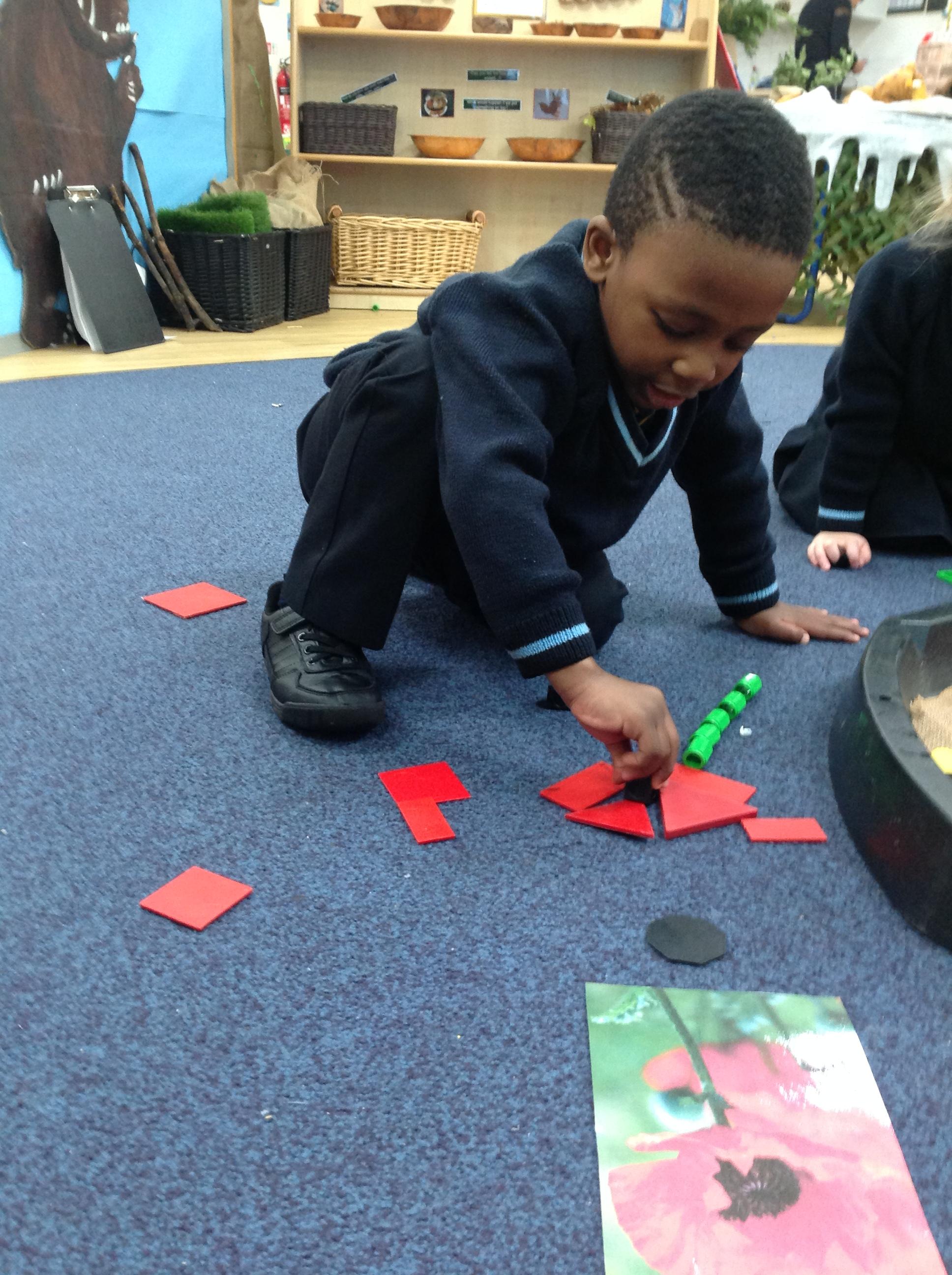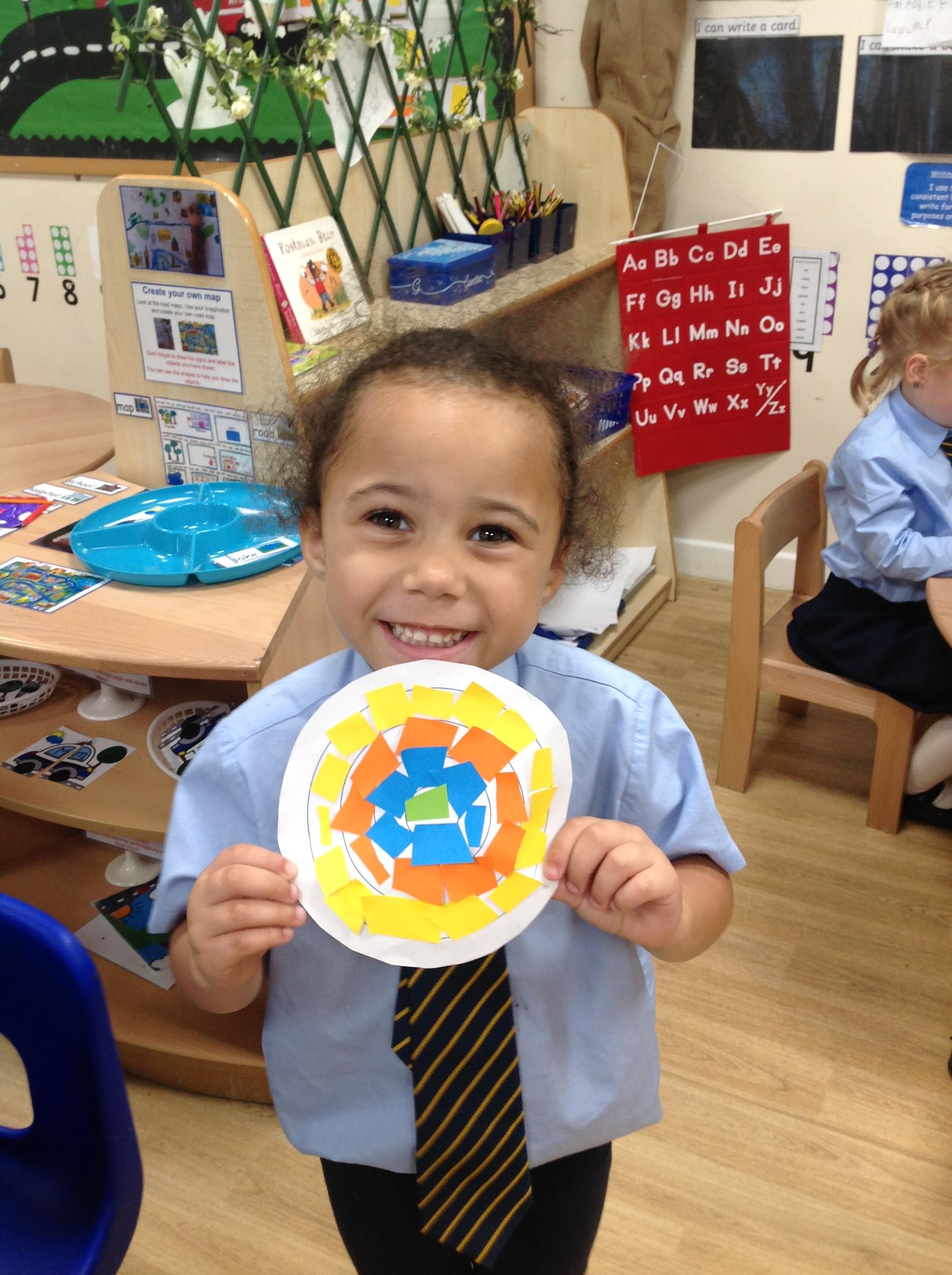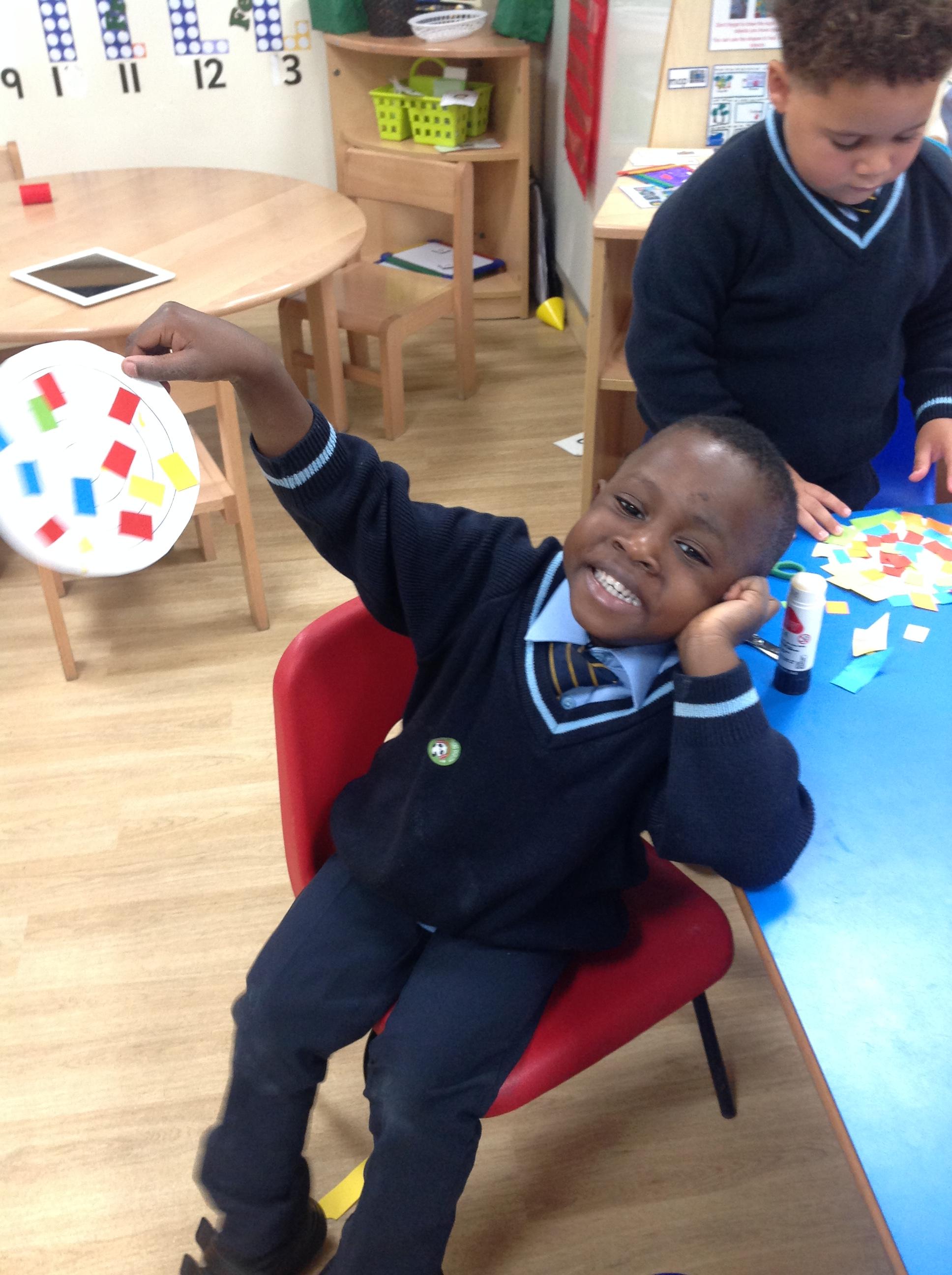 Nursery have been gluing and sticking different materials to make a dragon scale. Don't they look beautiful and colourful?