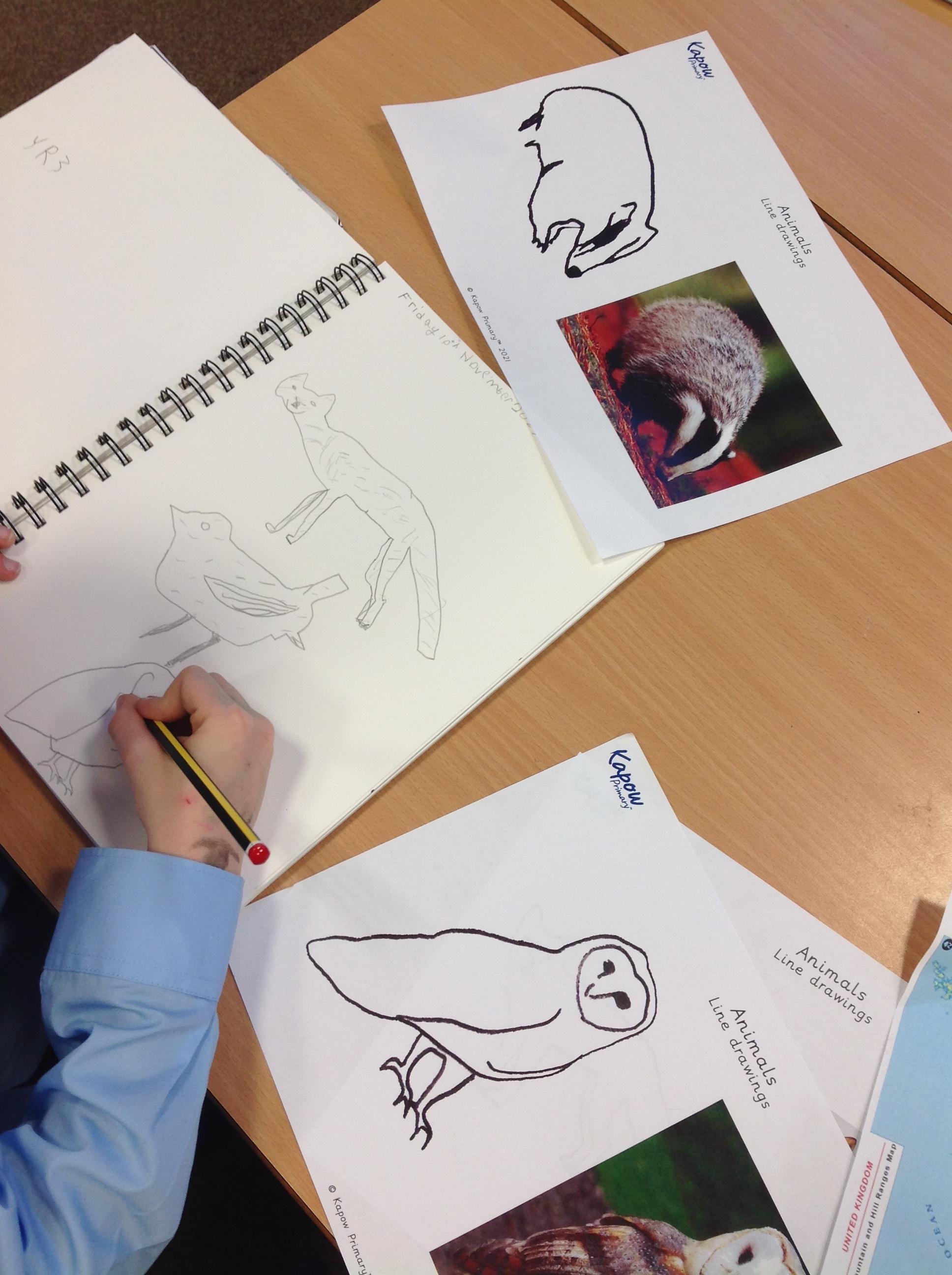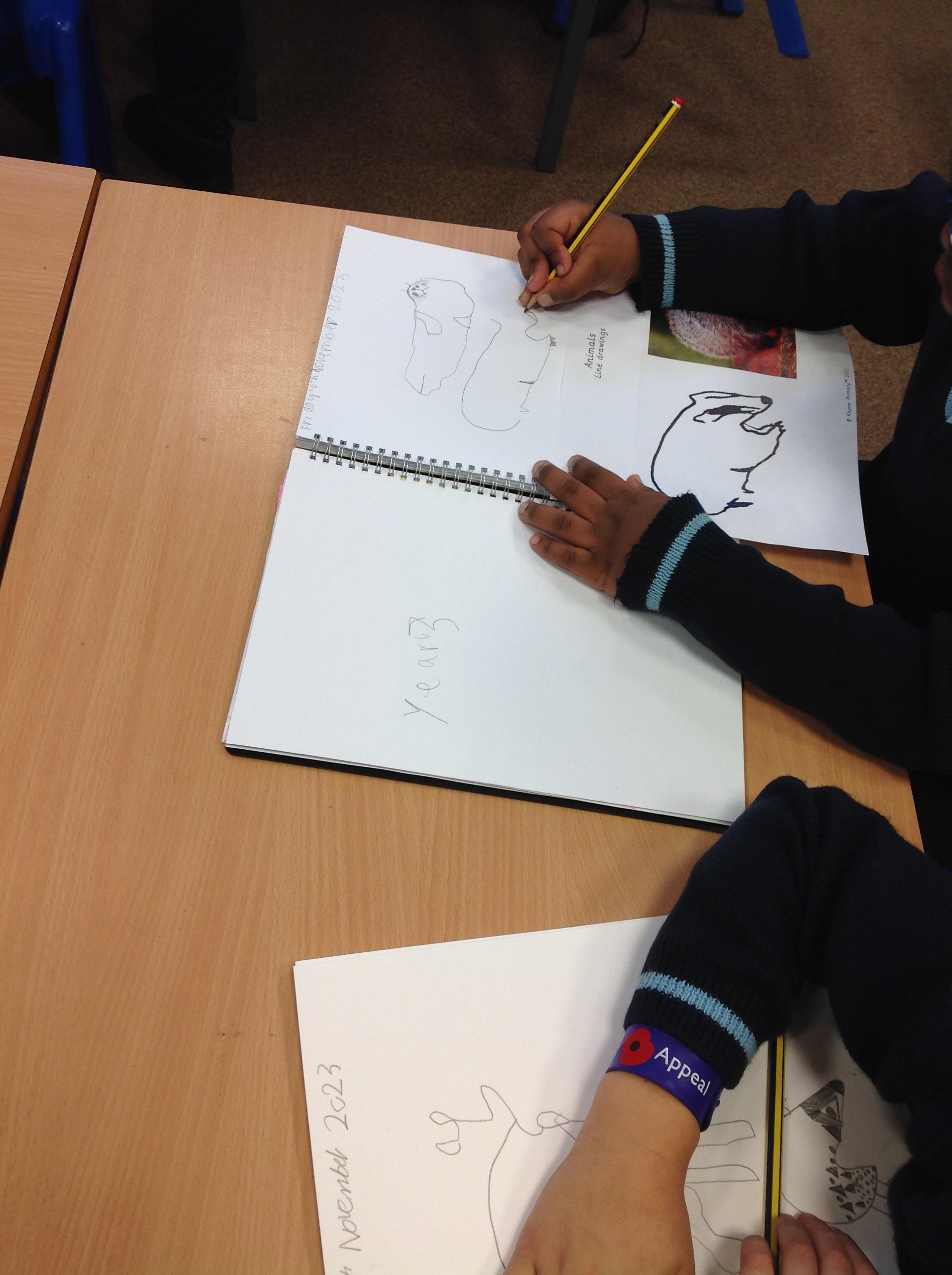 Year 3 explored prehistoric art and how the paintings were produced approximately 17,000 years ago. Using photos of animals we drew some line drawings in our sketchbooks. We then added detail by drawing fur and patterns.