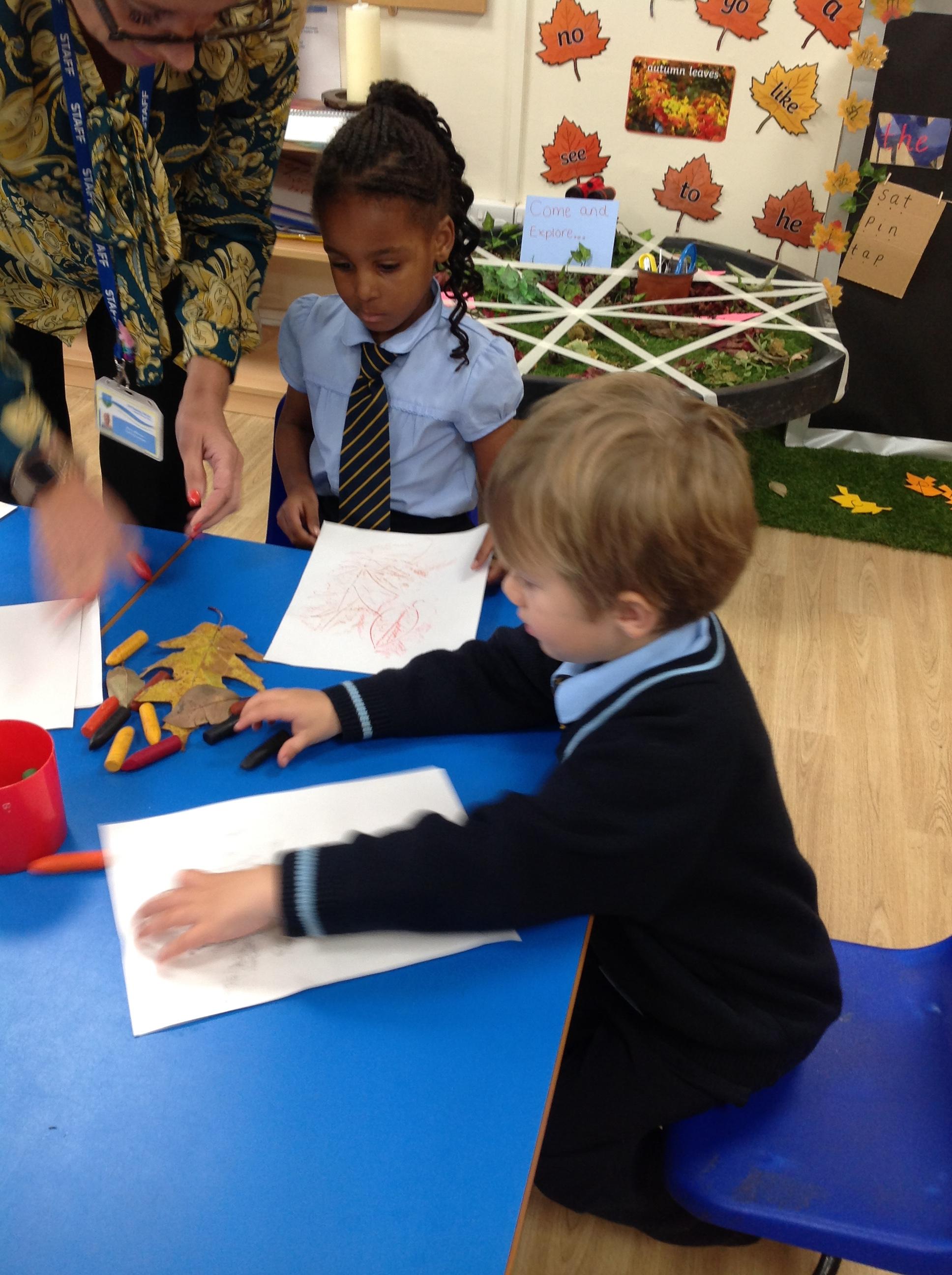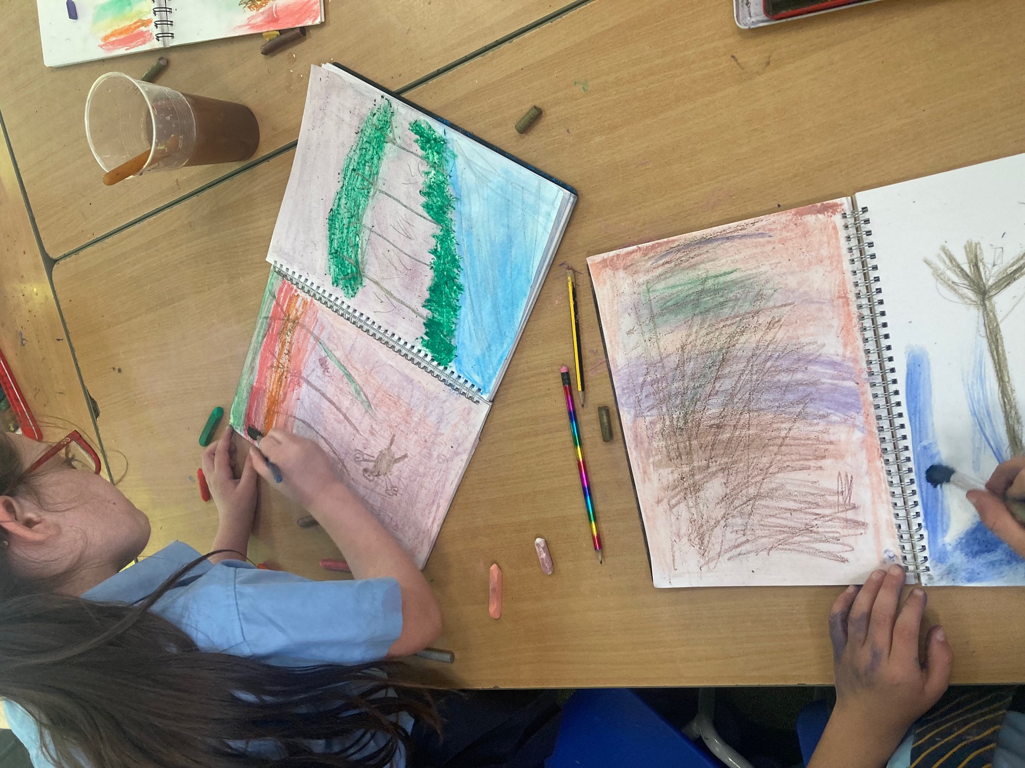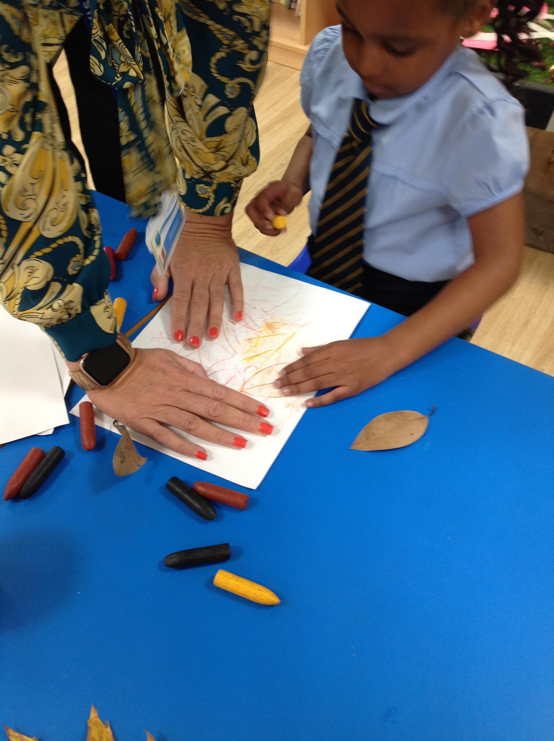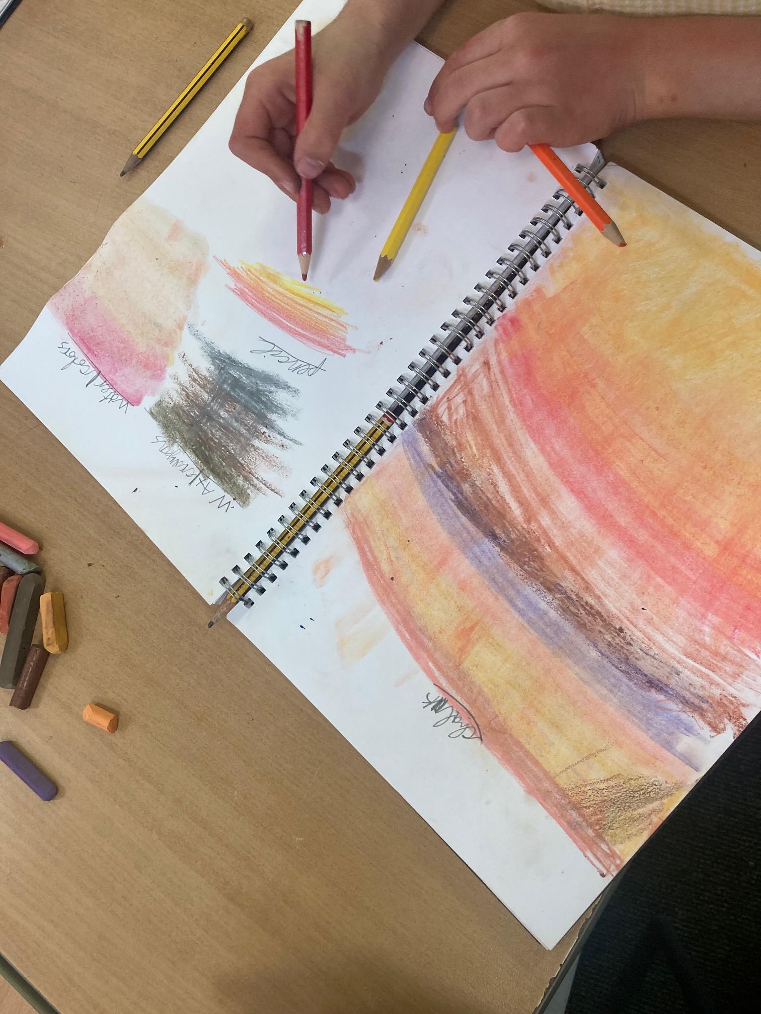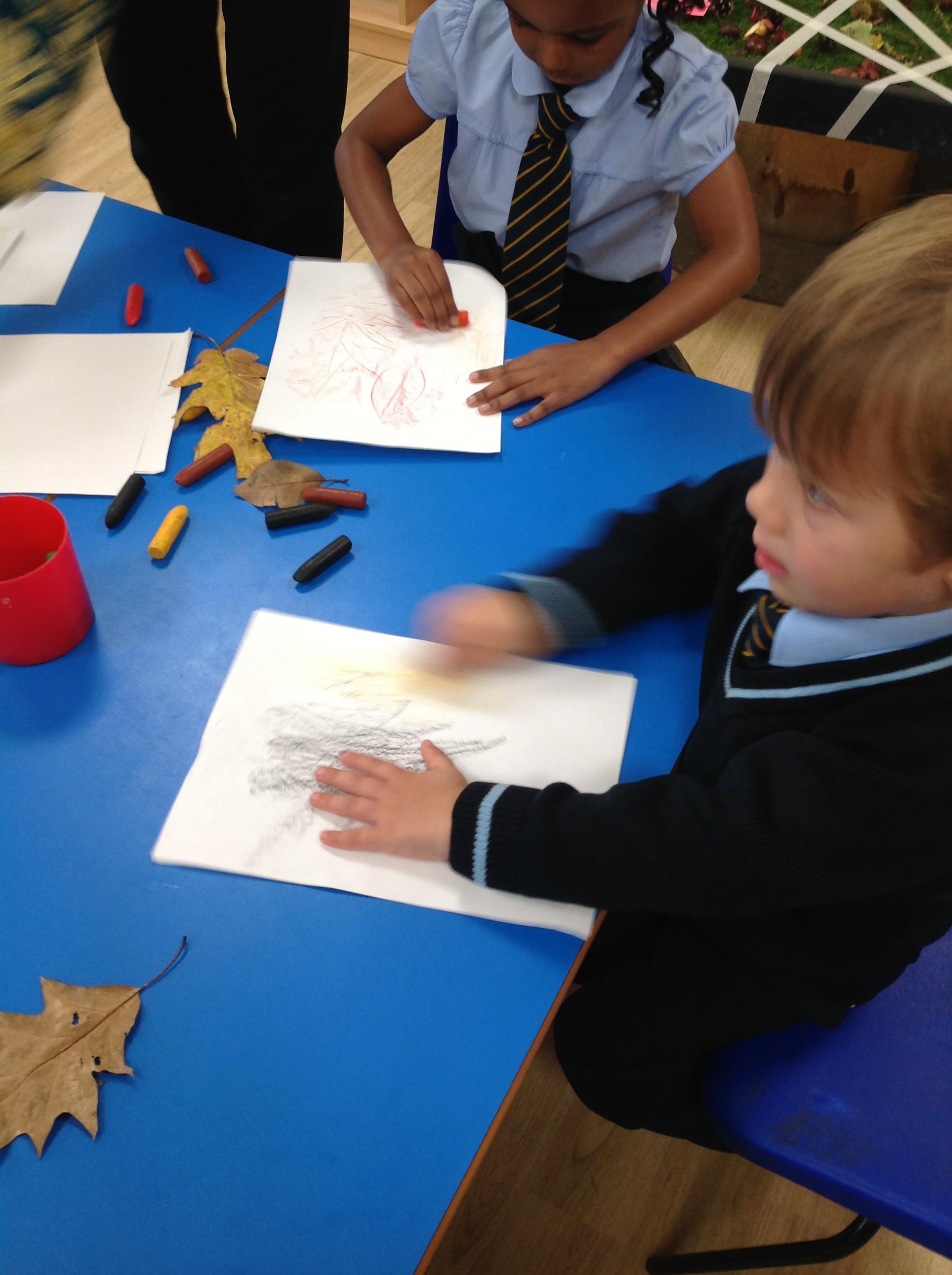 Exploring art with natural resources! Reception children have enjoyed using pastel crayons to make pictures of the natural resources!