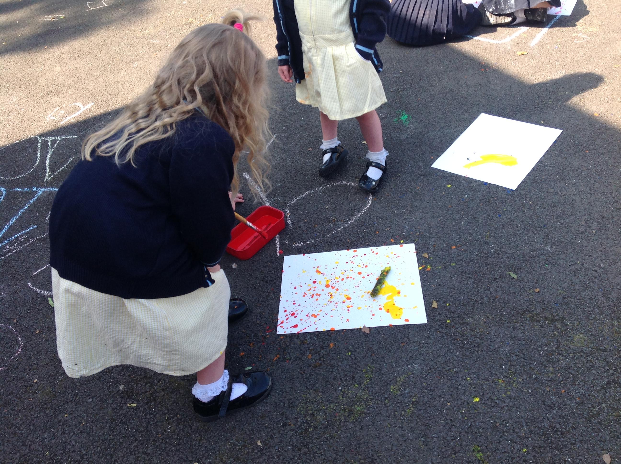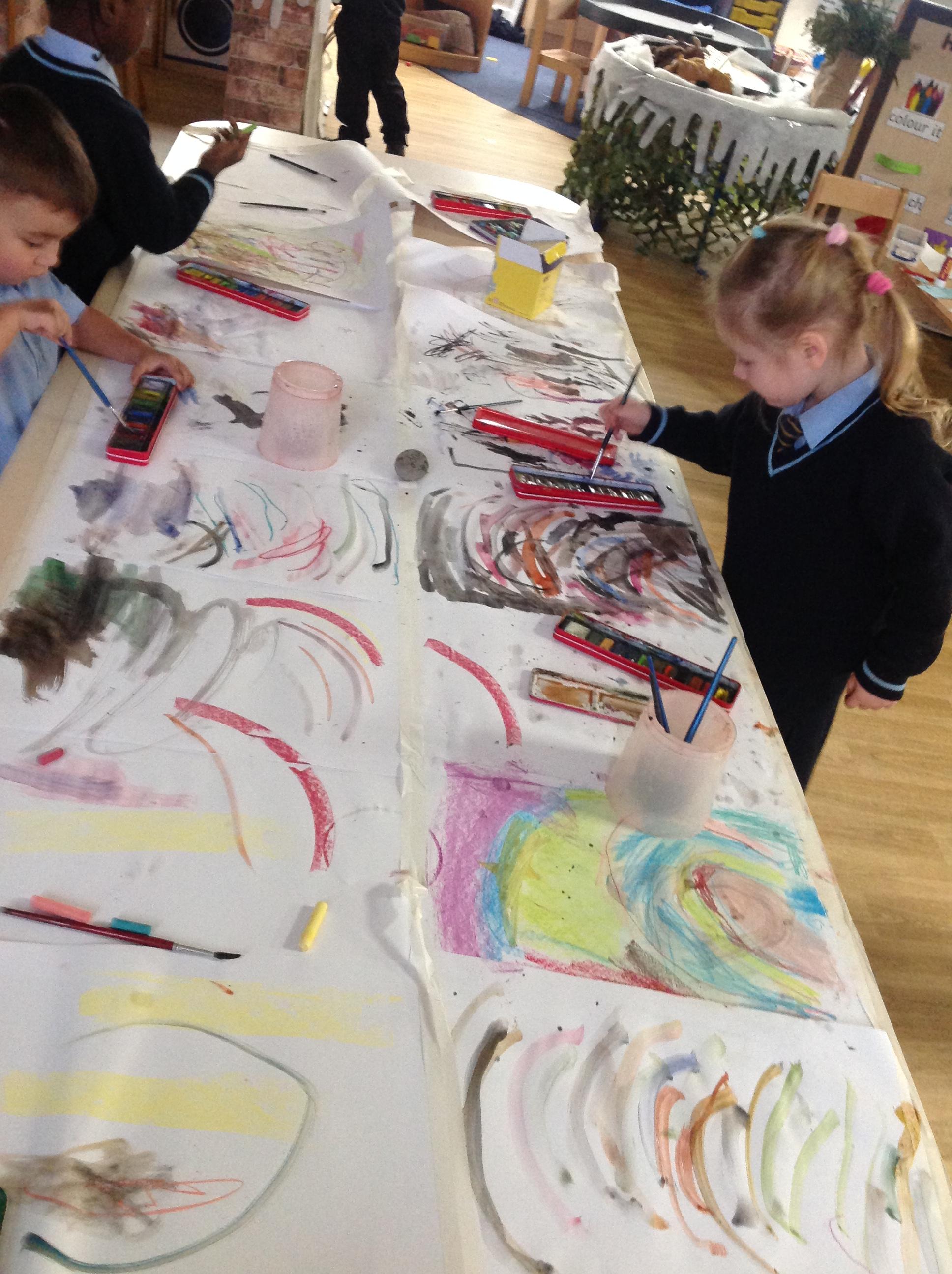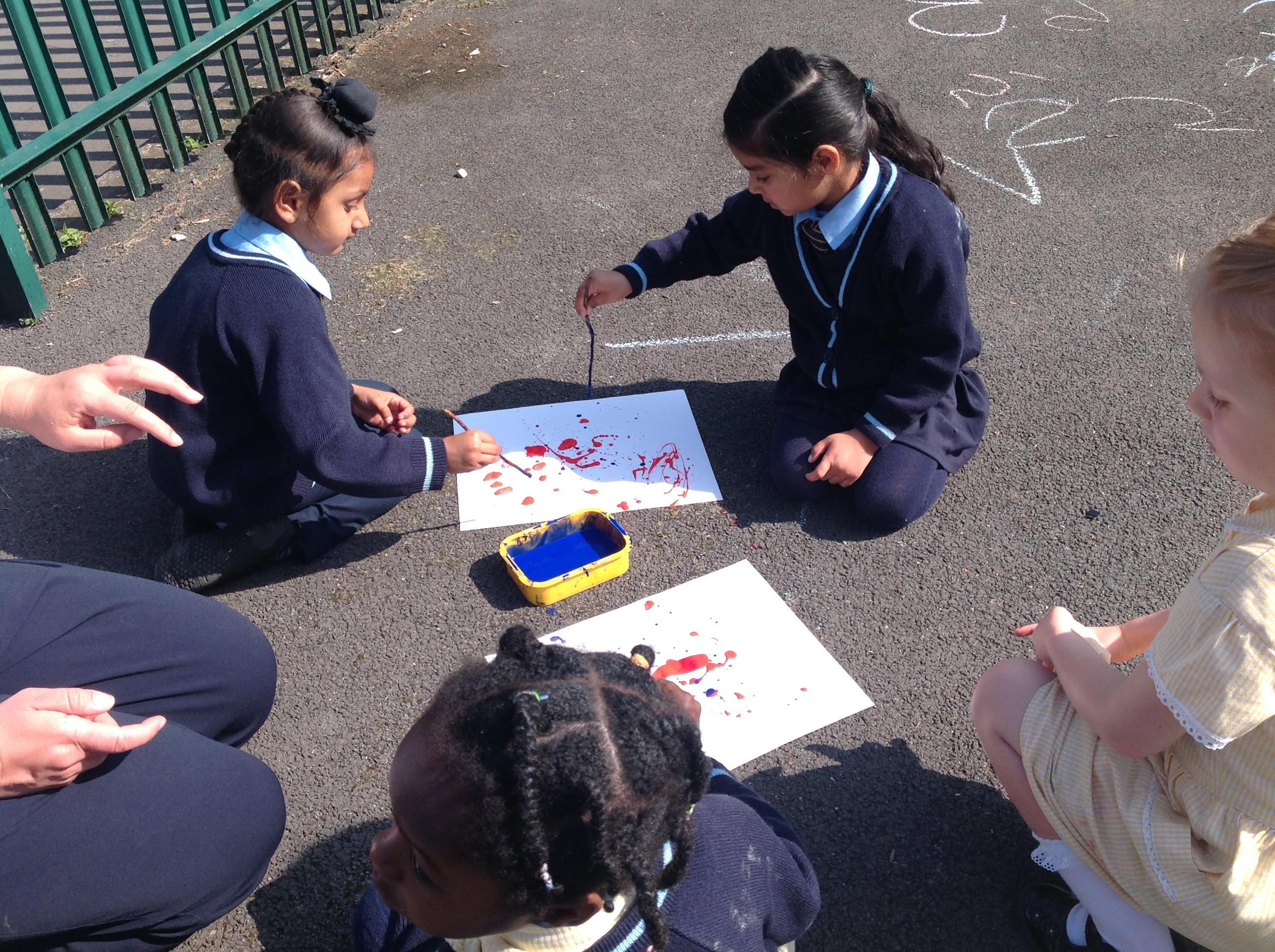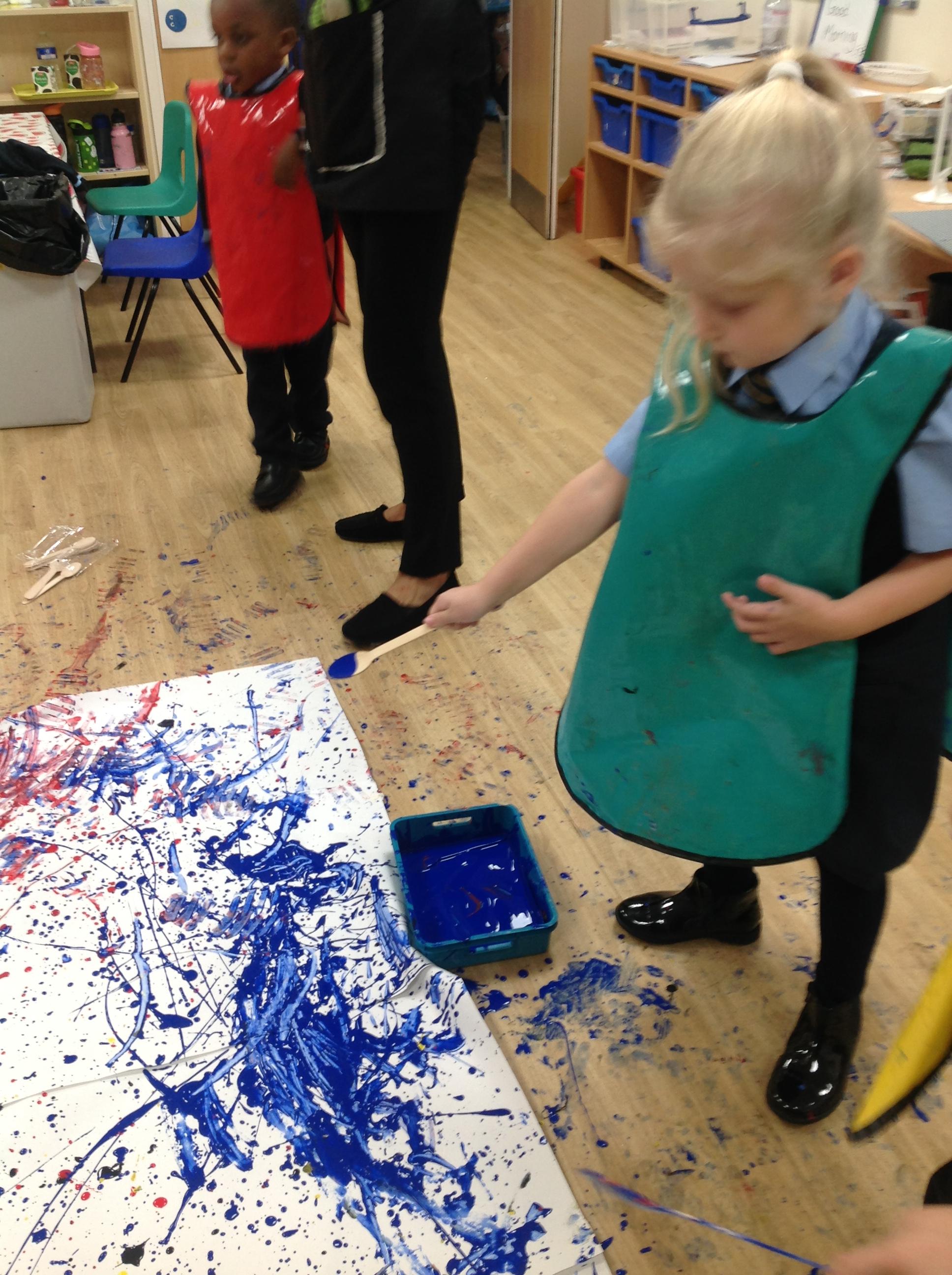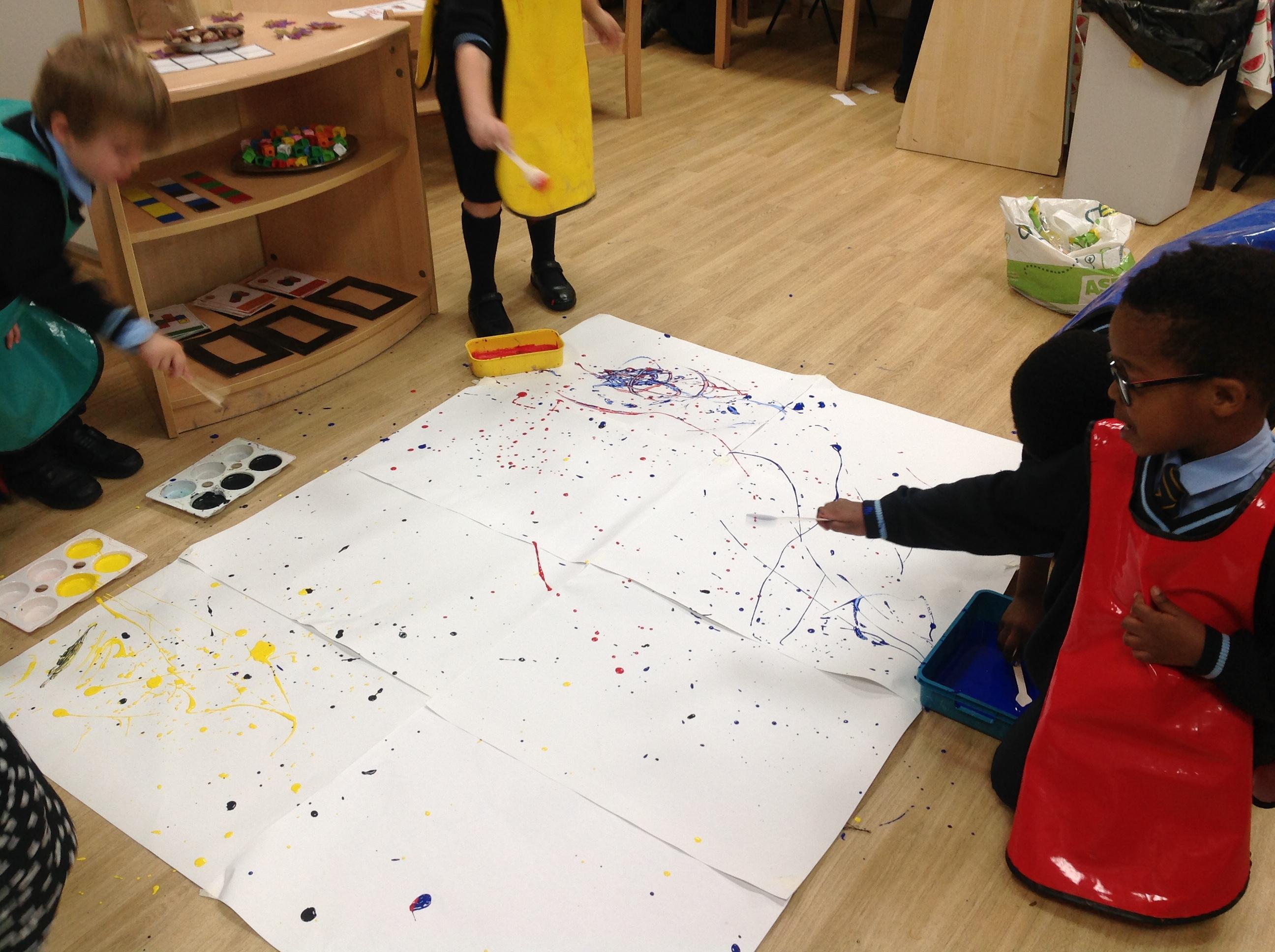 Today the children have been creating some amazing artwork based on the work of Jackson Pollock. The children used paintbrushes and sticks to make these beautiful paintings.