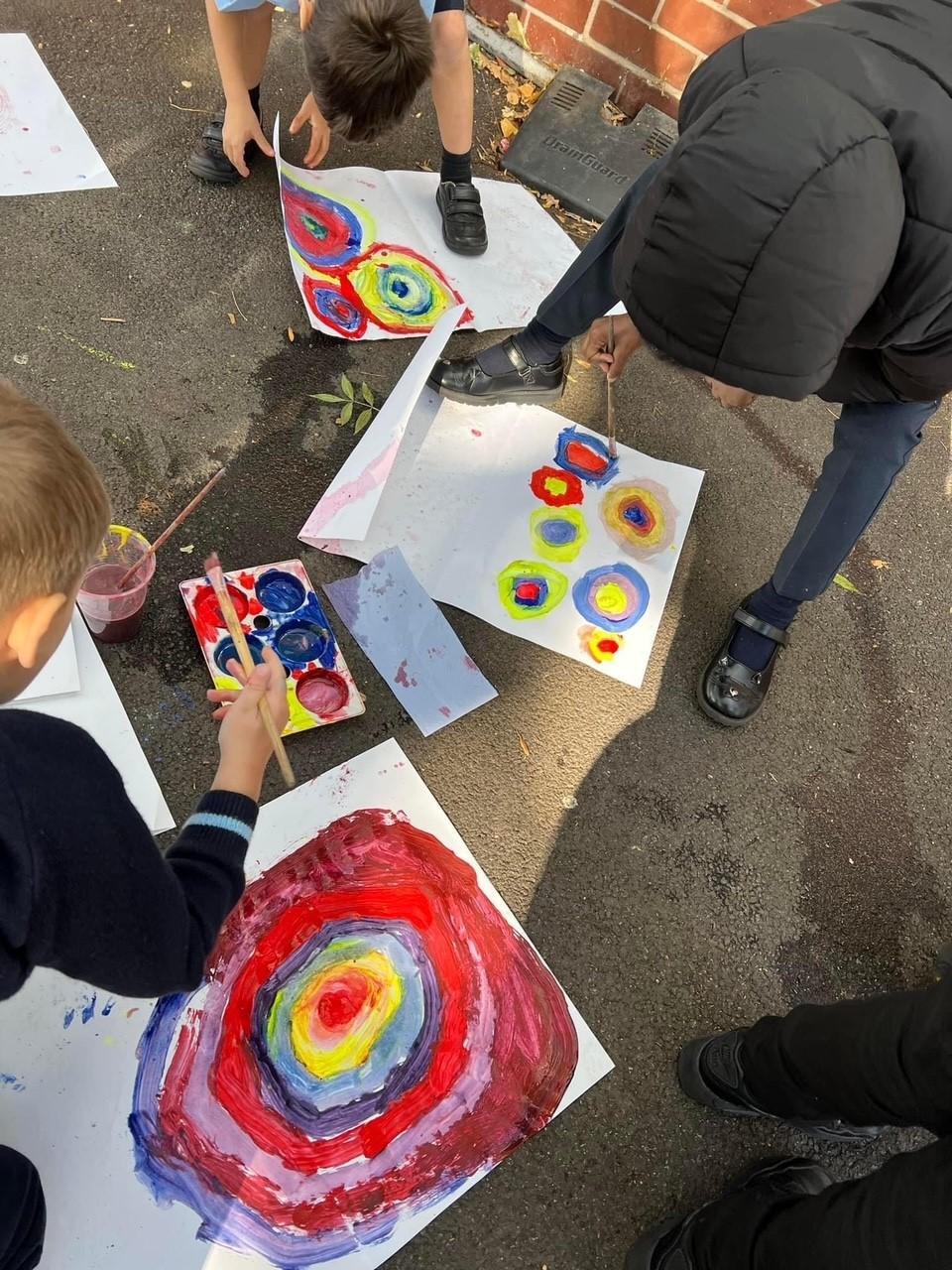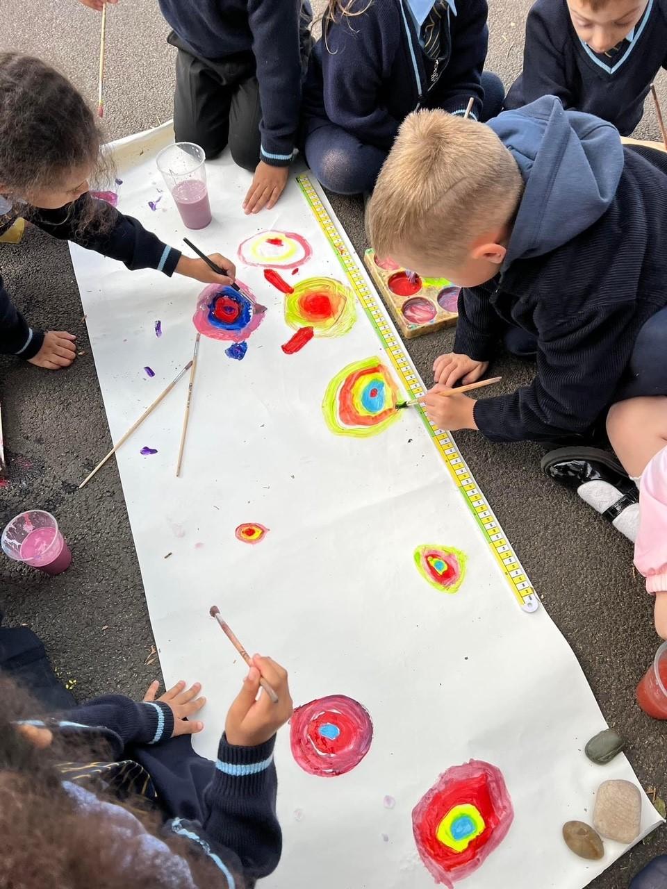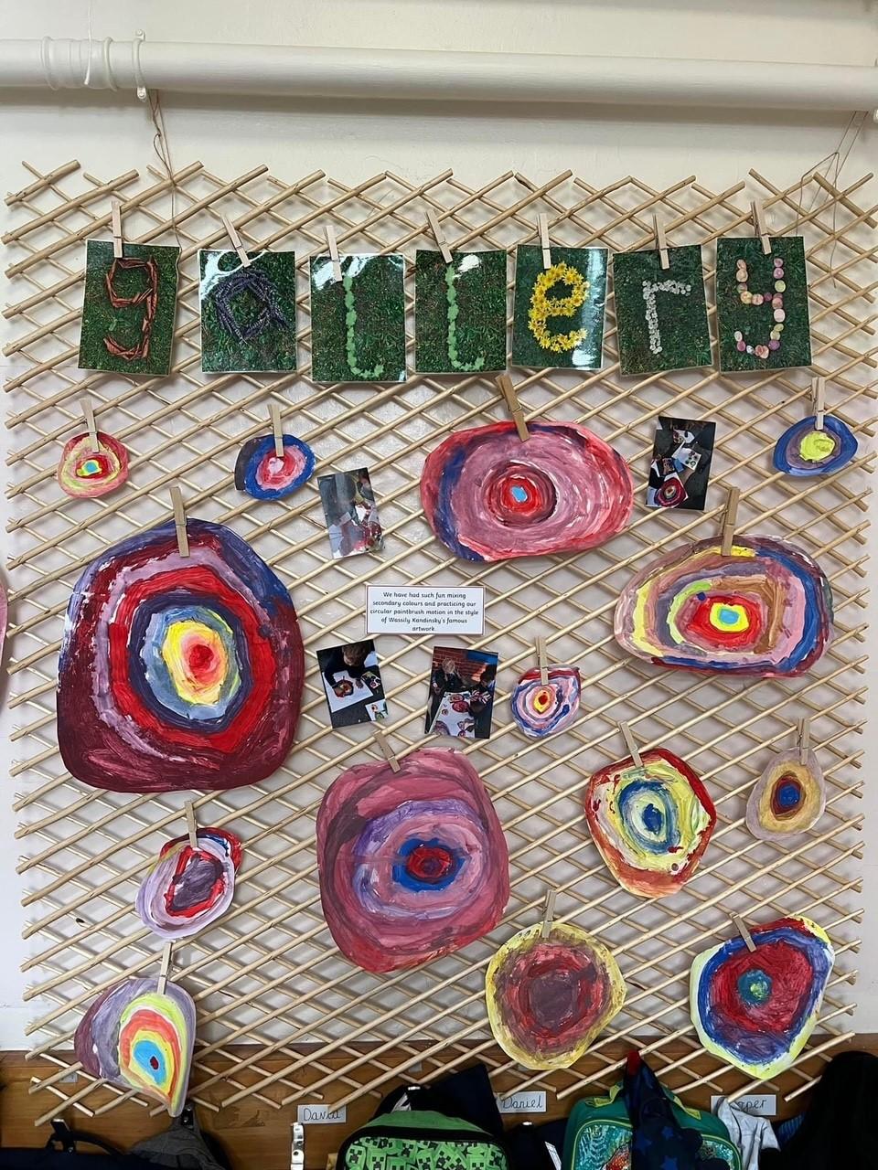 Year 1 had fun mixing secondary colours and practicing circular paintbrush motion in the style of Wassily Kandinsky’s famous art work!