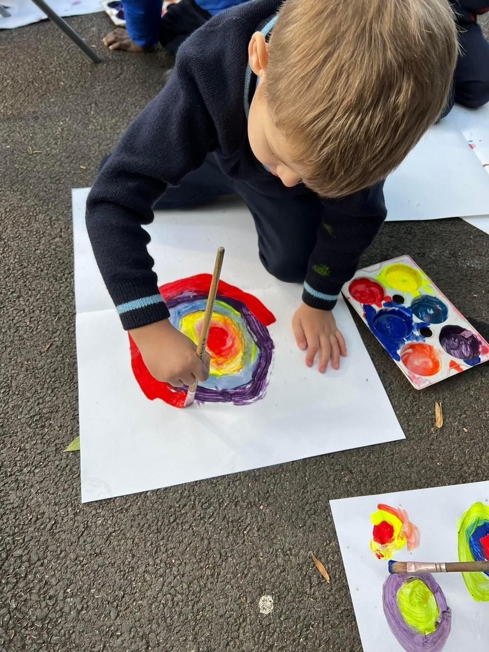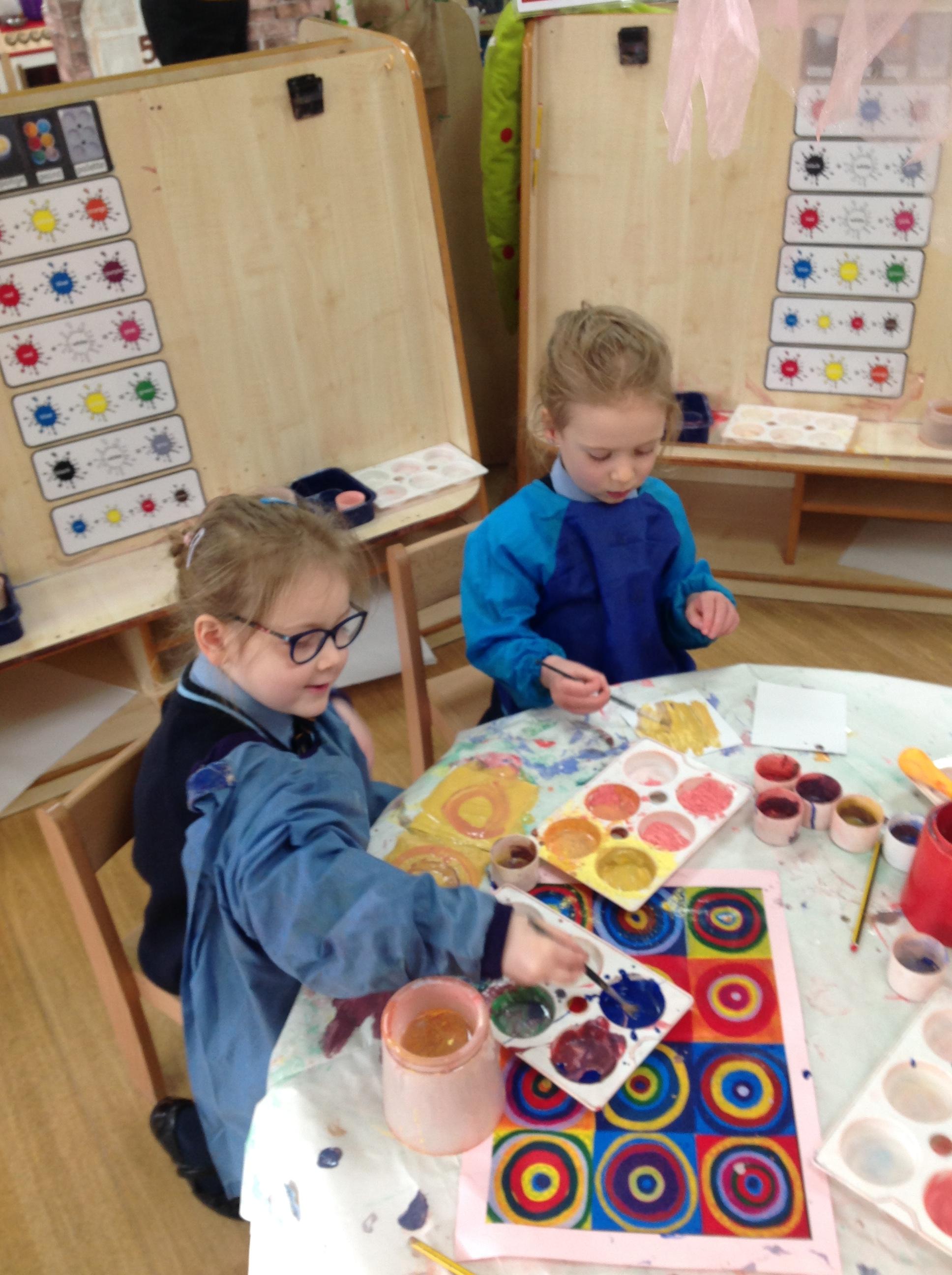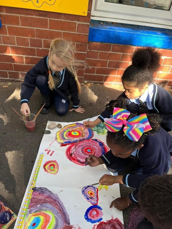 Year 1 had fun mixing secondary colours and practicing circular paintbrush motion in the style of Wassily Kandinsky’s famous art work!