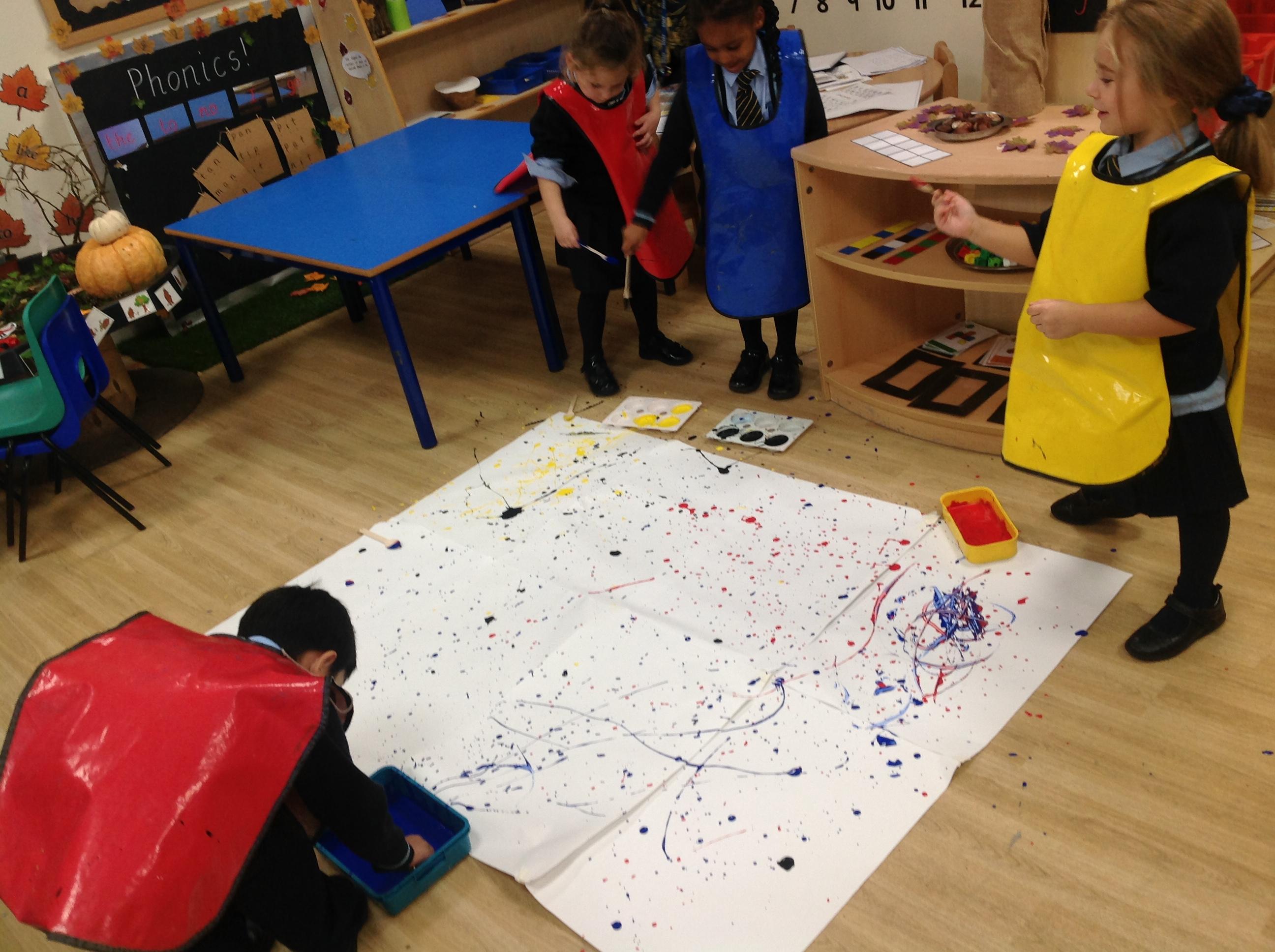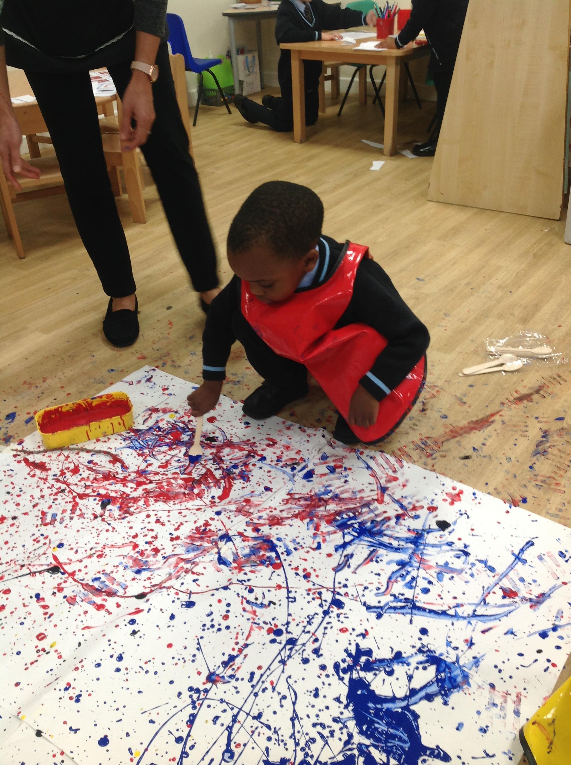 Amazing Jackson Pollock inspired art by Reception class. Children have been looking at the artwork of Jackson Pollock and created a wonderful piece of artwork!