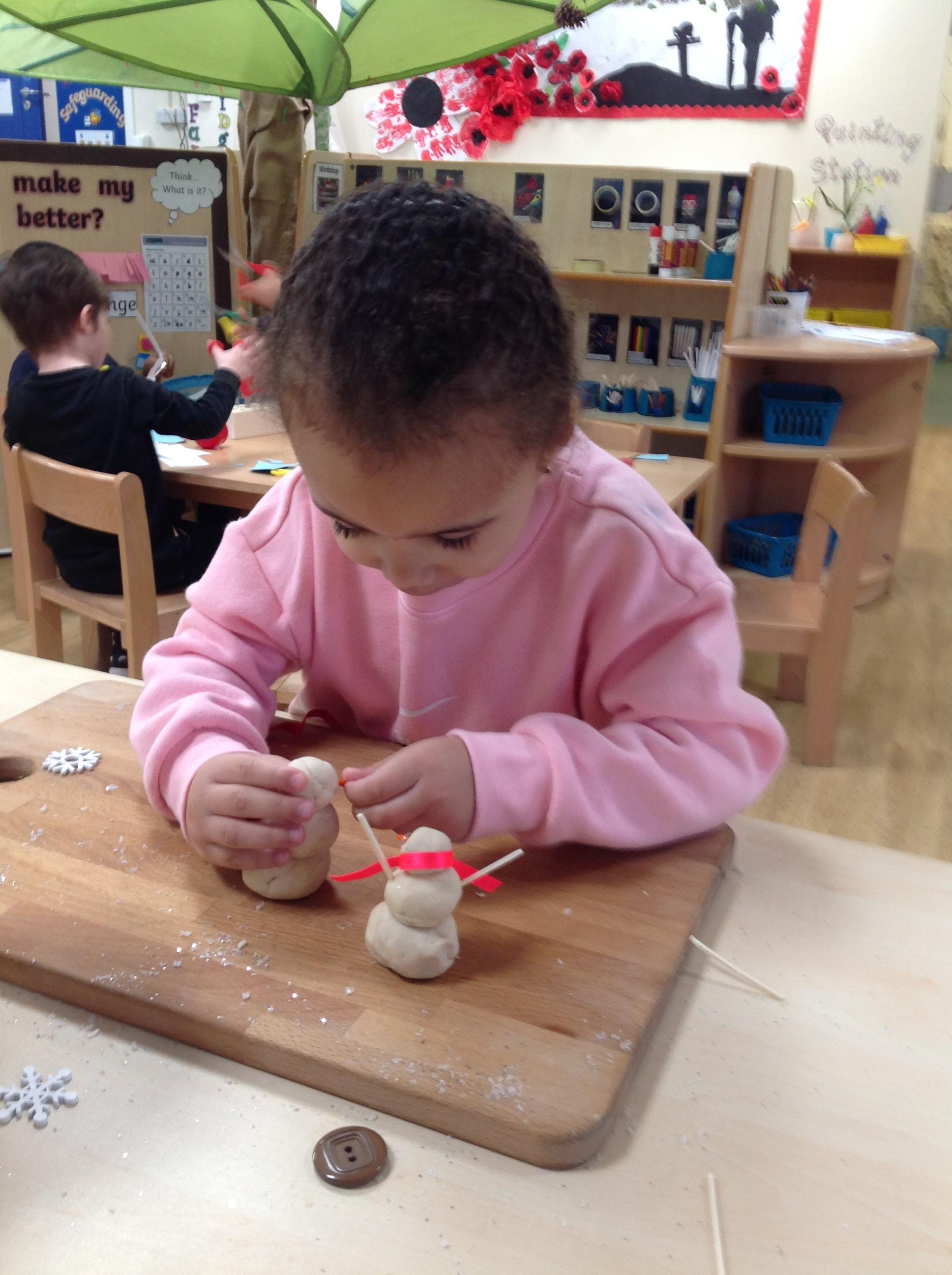 Look at these amazing snowmen! Children have been making snowmen using our playdough and exploring different objects to make the snowman's body. I think these children are all ready for snow!