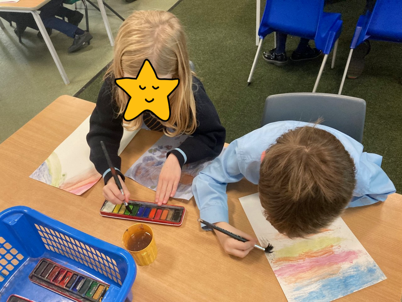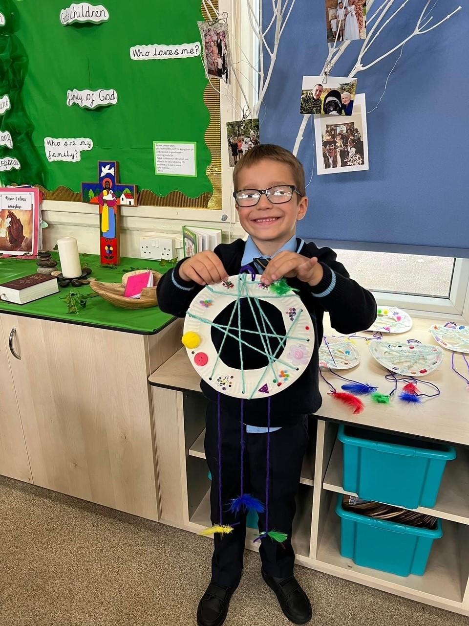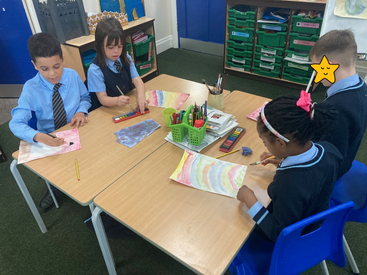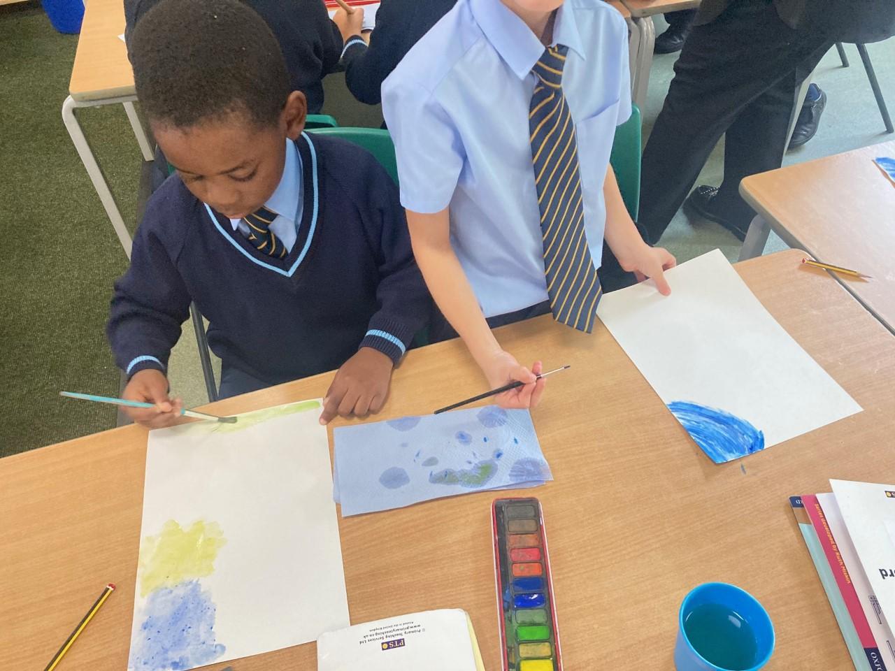 Year 2 have been using their art skills across the curriculum. In RE, they created a piece of artwork with watercolours, celebrating the fact that God is always with us. They used their skills learnt in their 'painting' unit to carefully craft their work.