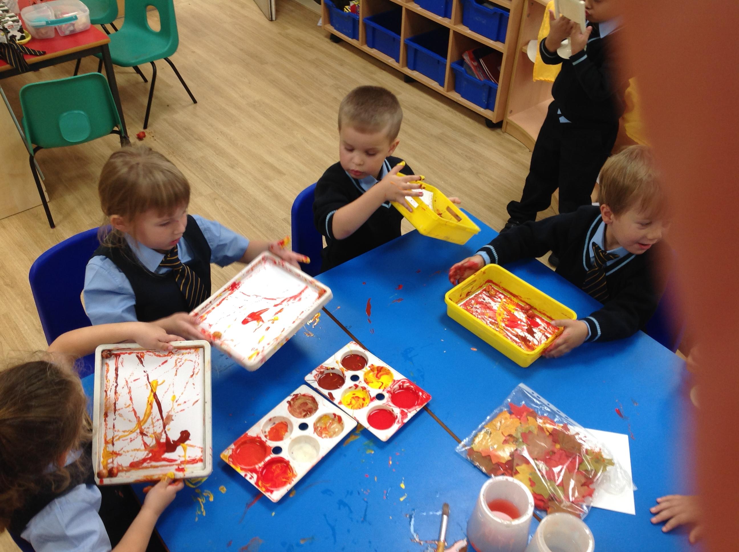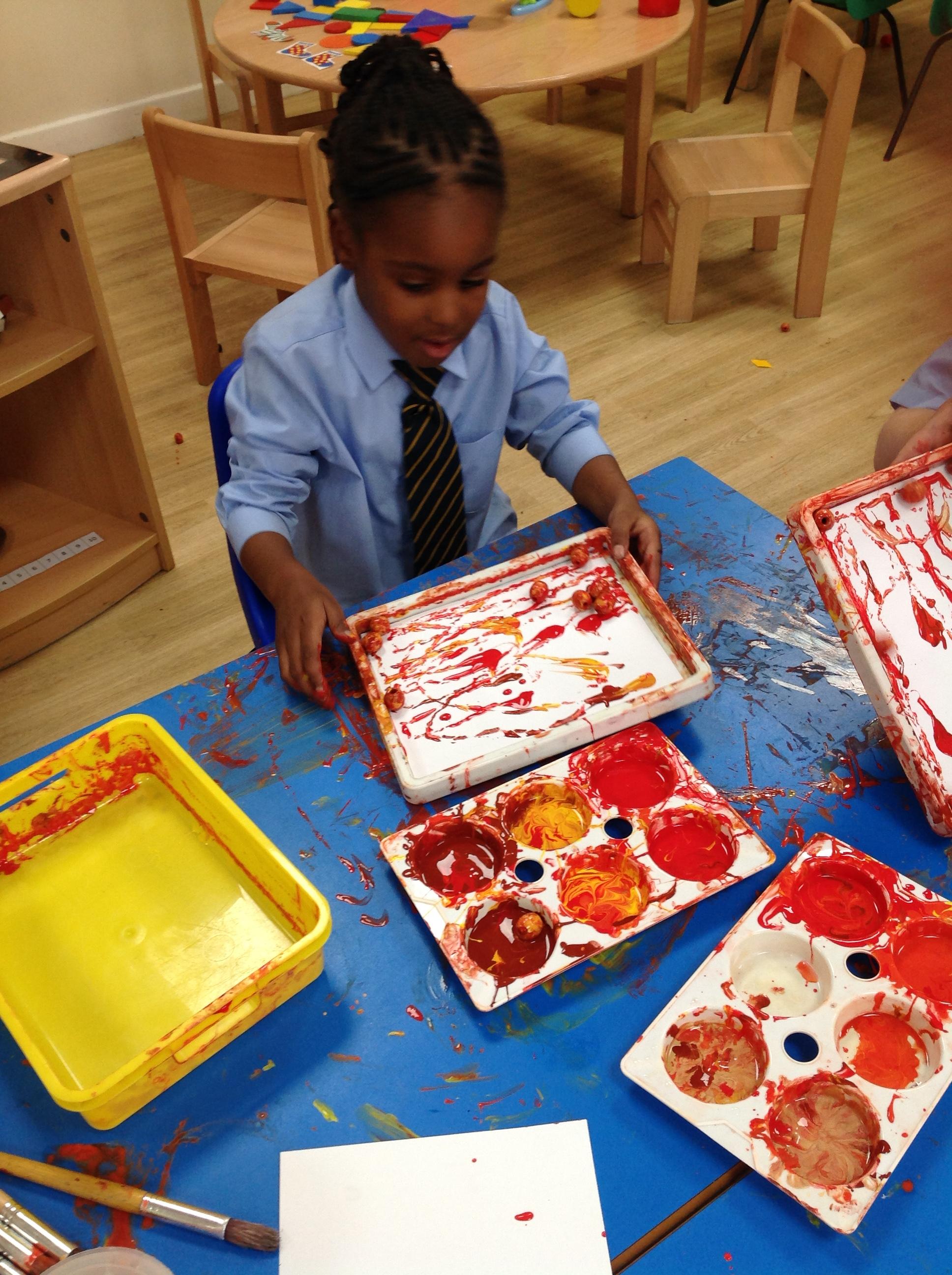 Wonderful Art - Reception children have been using autumnal colours to make lovely artwork. Children have been using beads and paint and rolling it along the page to create some beautiful patterns!