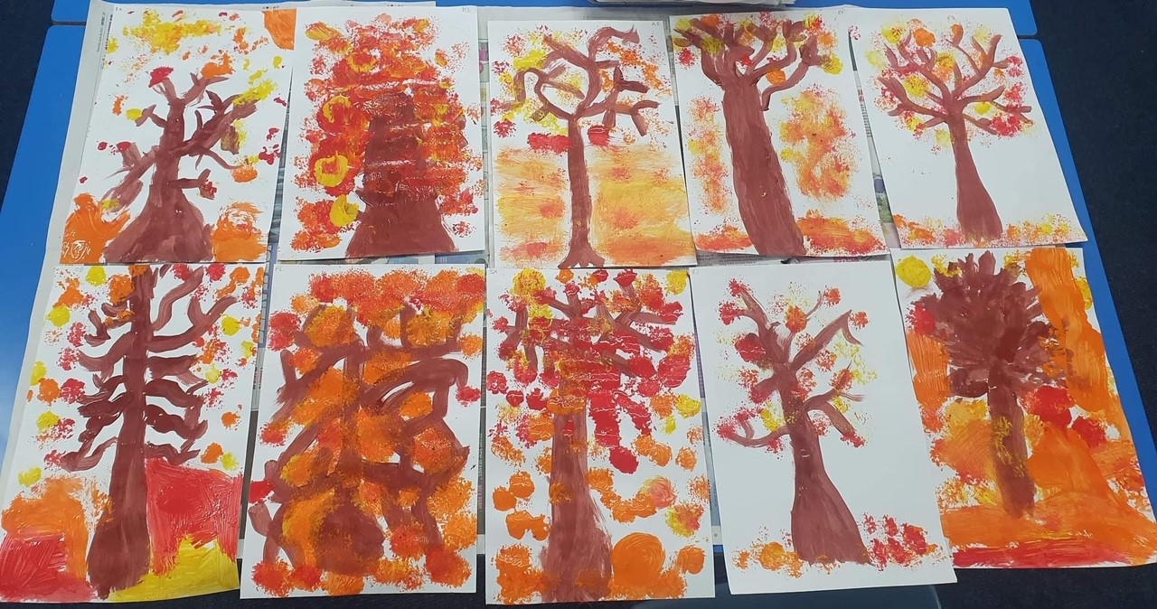 Arts and Crafts club have celebrated the changing of the seasons by creating their own unique autumnal trees. They used a mixture of paintbrushes and broccoli to add texture to their work.