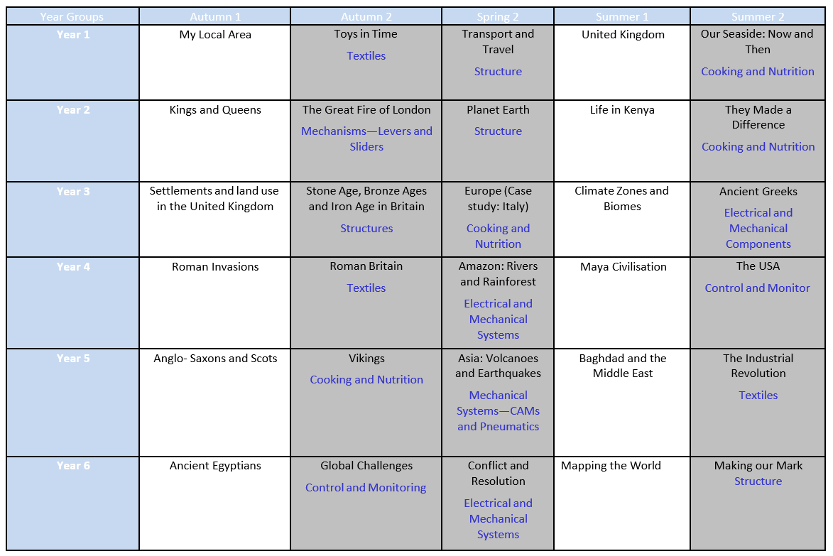 We believe that all children in our school should have the opportunity to develop a creative mindset, become innovative designers and to critically evaluate their own work. We think that is it vital that children have access to a wide range of materials and resources that can allow them to experiment with design, technique and creativity. The problem solving and critical thinking skills acquired through design technology lessons will be used across the whole school curriculum.
