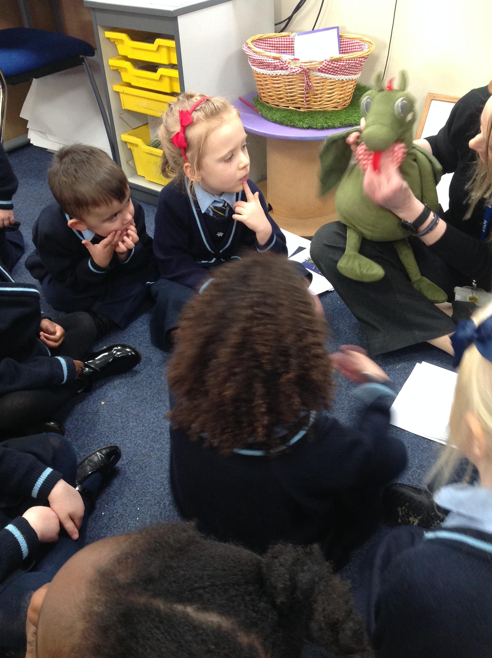 How would you care for a dragon? Well Nursery know how to! The children talked about how they would care for Madam Dragon. They mentioned how they would hug her, feed her, give her water and also play with her!