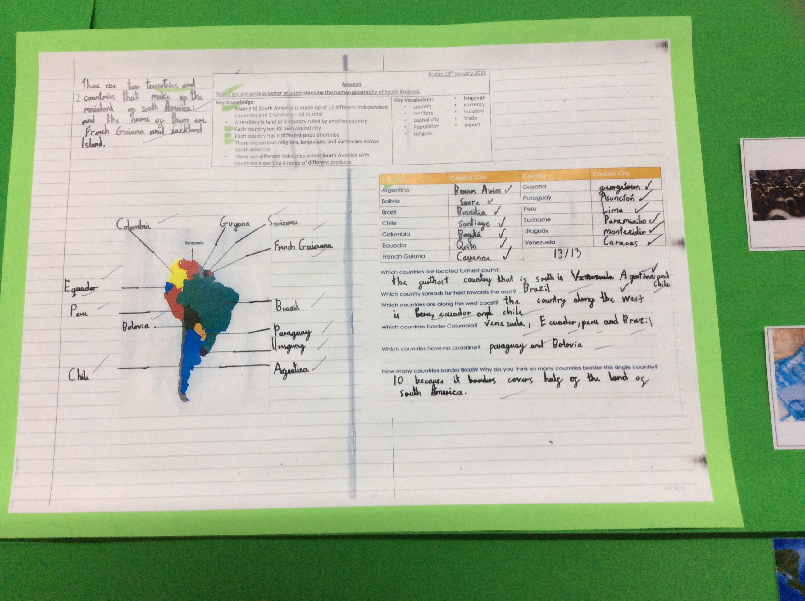 As part of our Spring term topic, Year 4 are looking at the Amazon. We started by looking at the human and physical geography of South America. We have then looked at where rainforests are located in the world, before investigating the different layers within the rainforest.