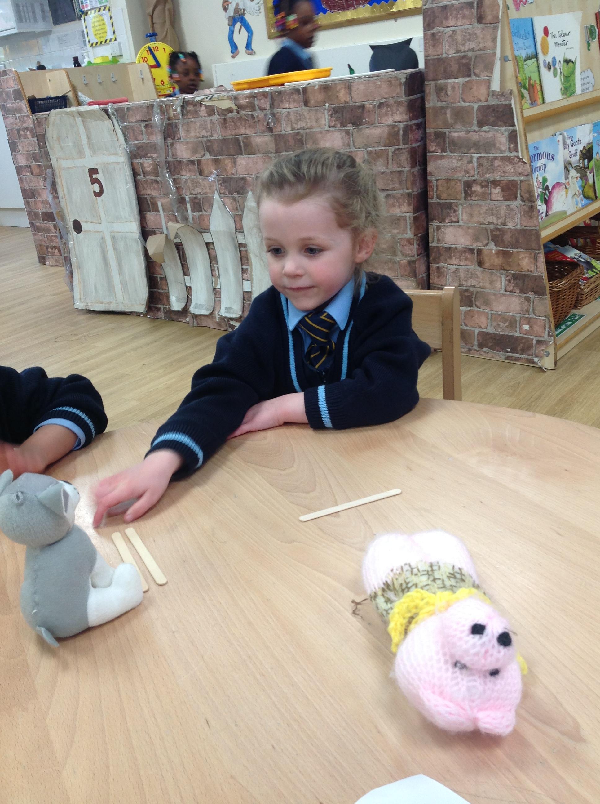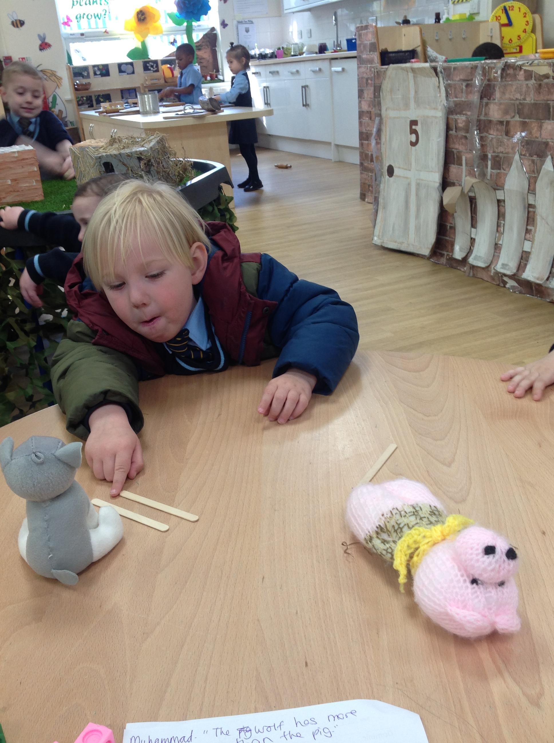 The Nursery children have been comparing objects and seeing if they are longer or shorter.