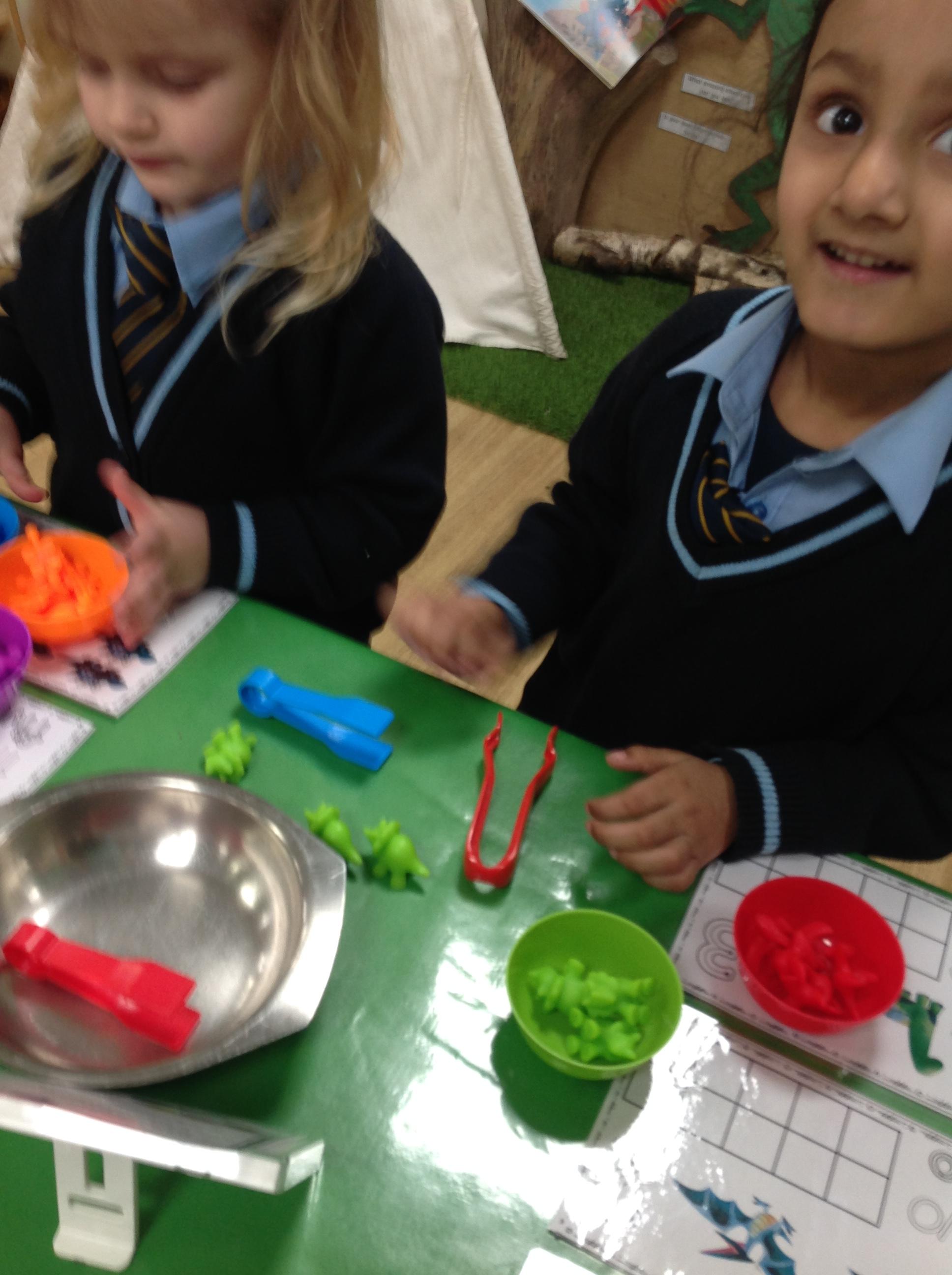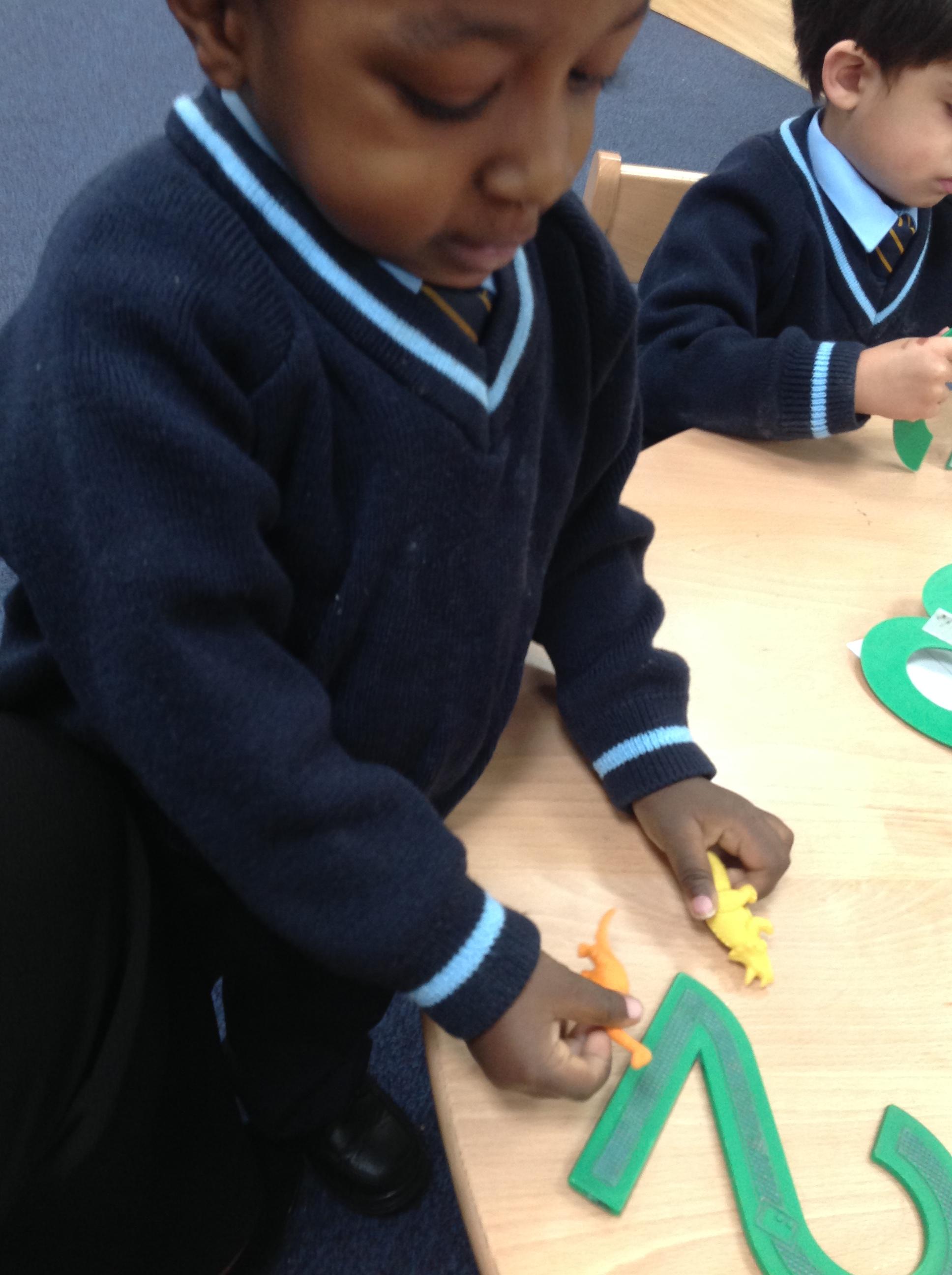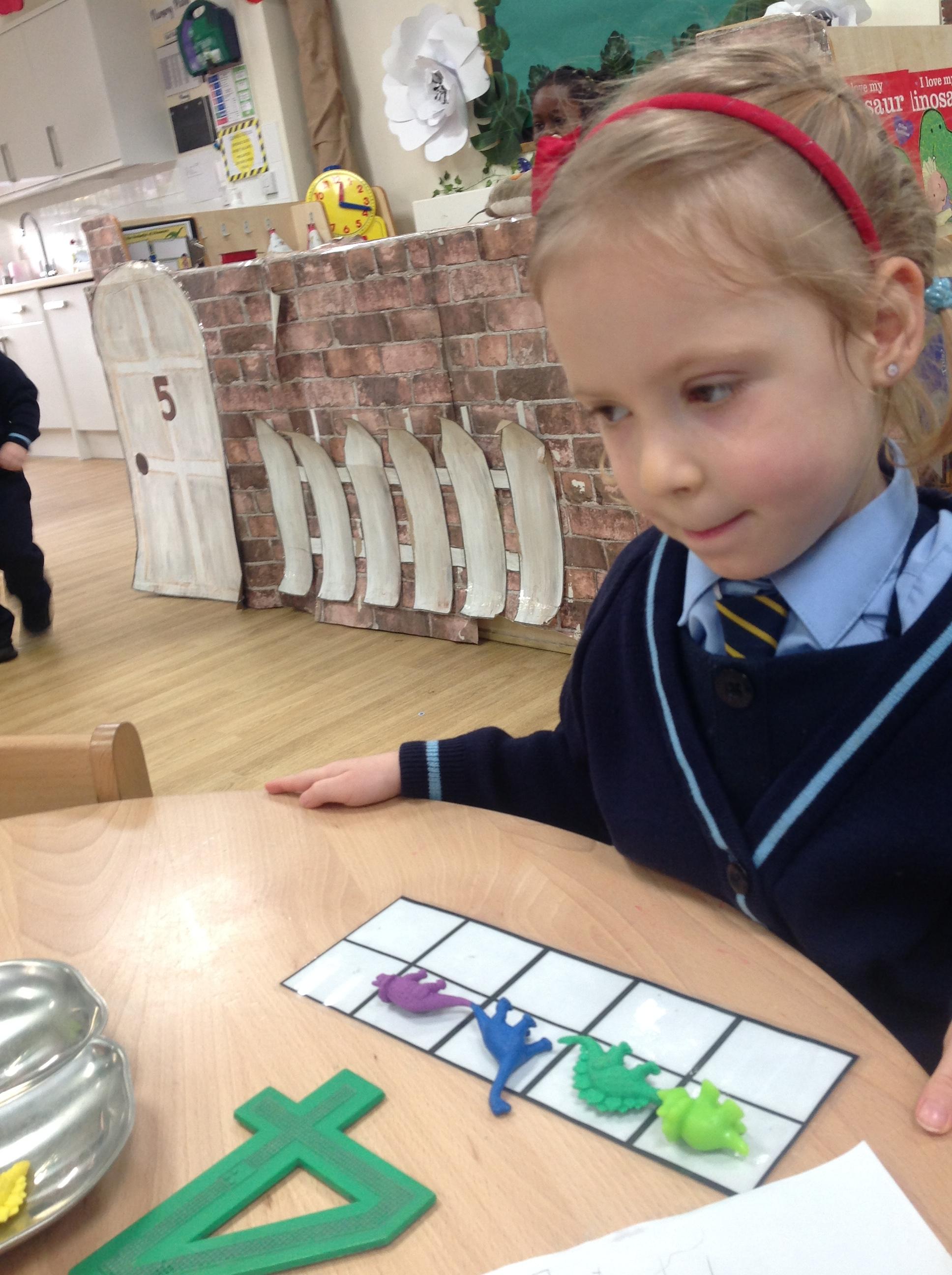 This week nursery have been working really hard on linking their numbers to amounts. Nursery children have been making groups of objects that match the number shown. The children especially enjoyed counting out dinosaurs!