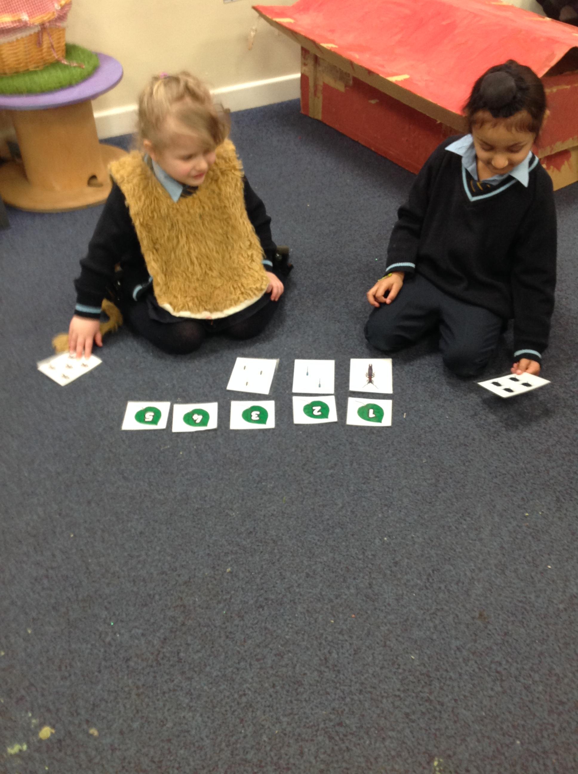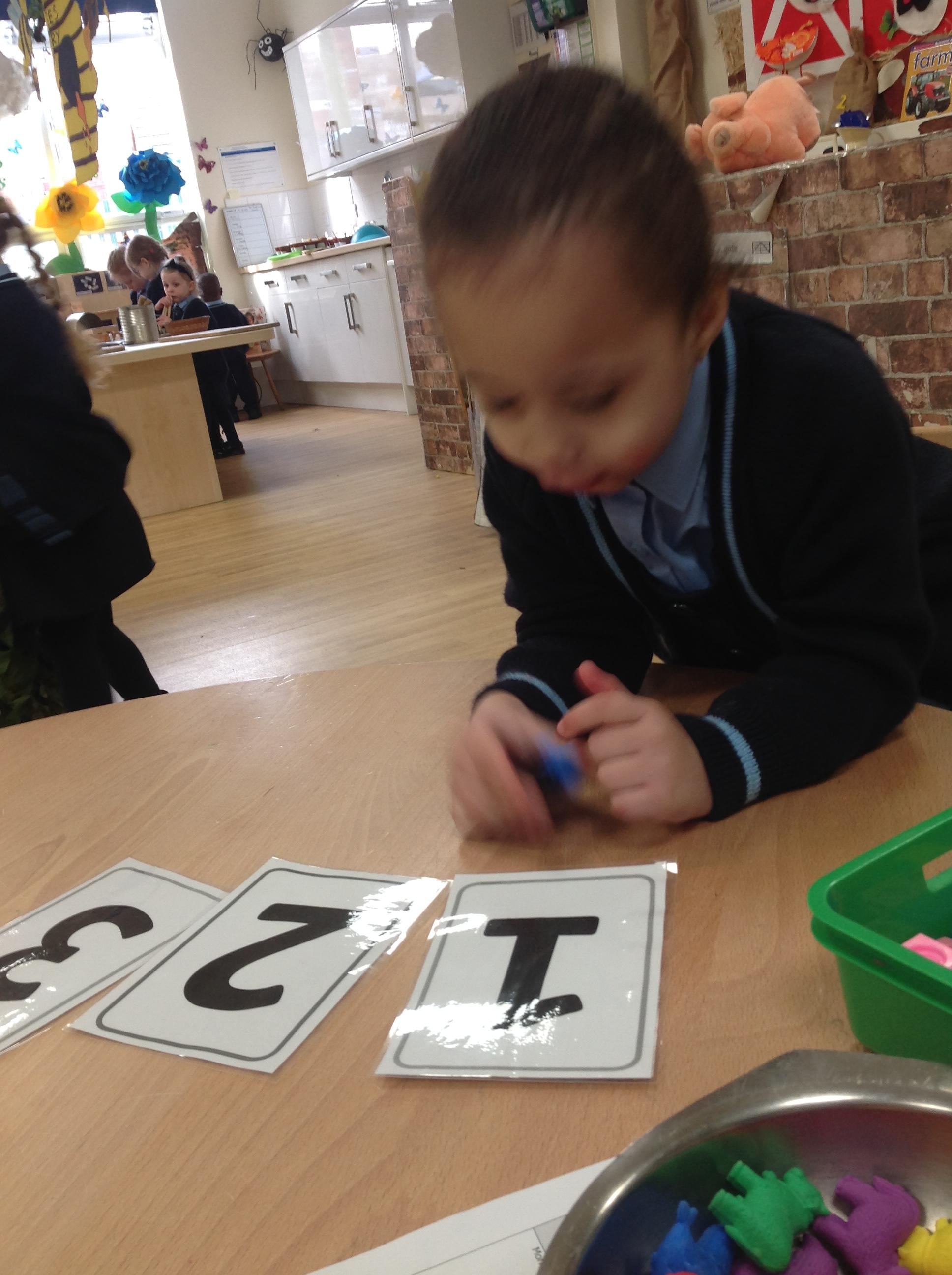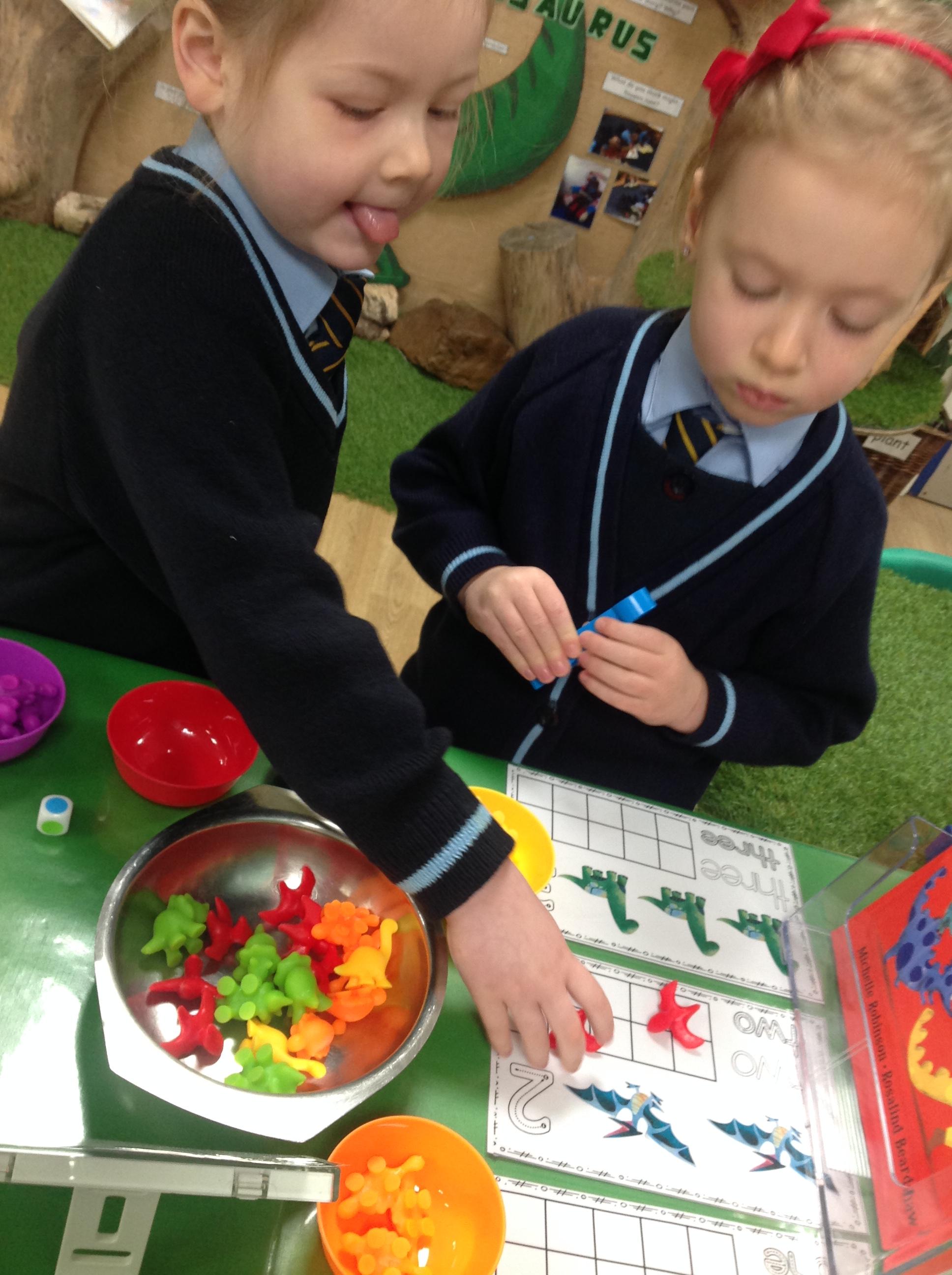 This week nursery have been working really hard on linking their numbers to amounts. Nursery children have been making groups of objects that match the number shown. The children especially enjoyed counting out dinosaurs!