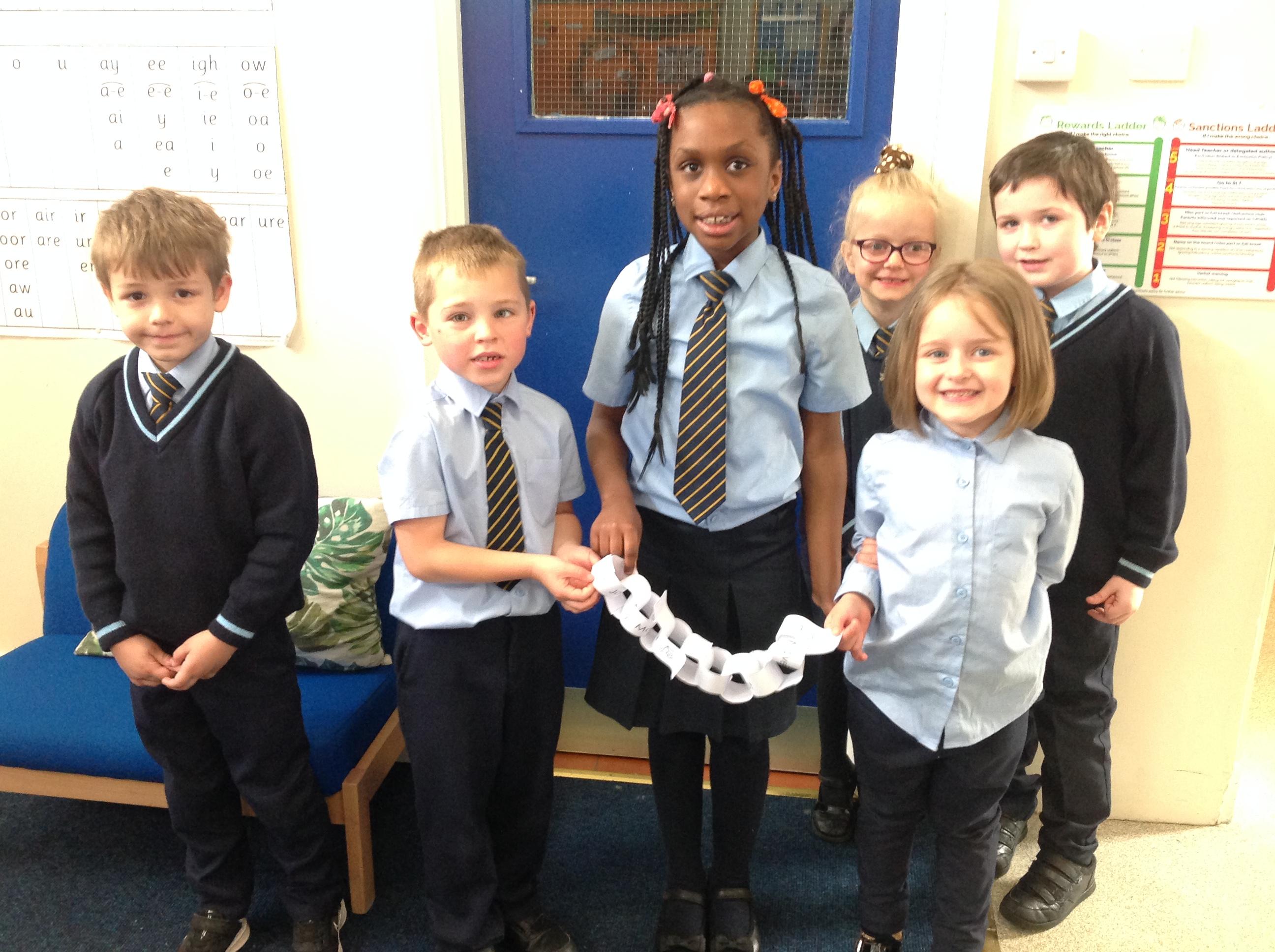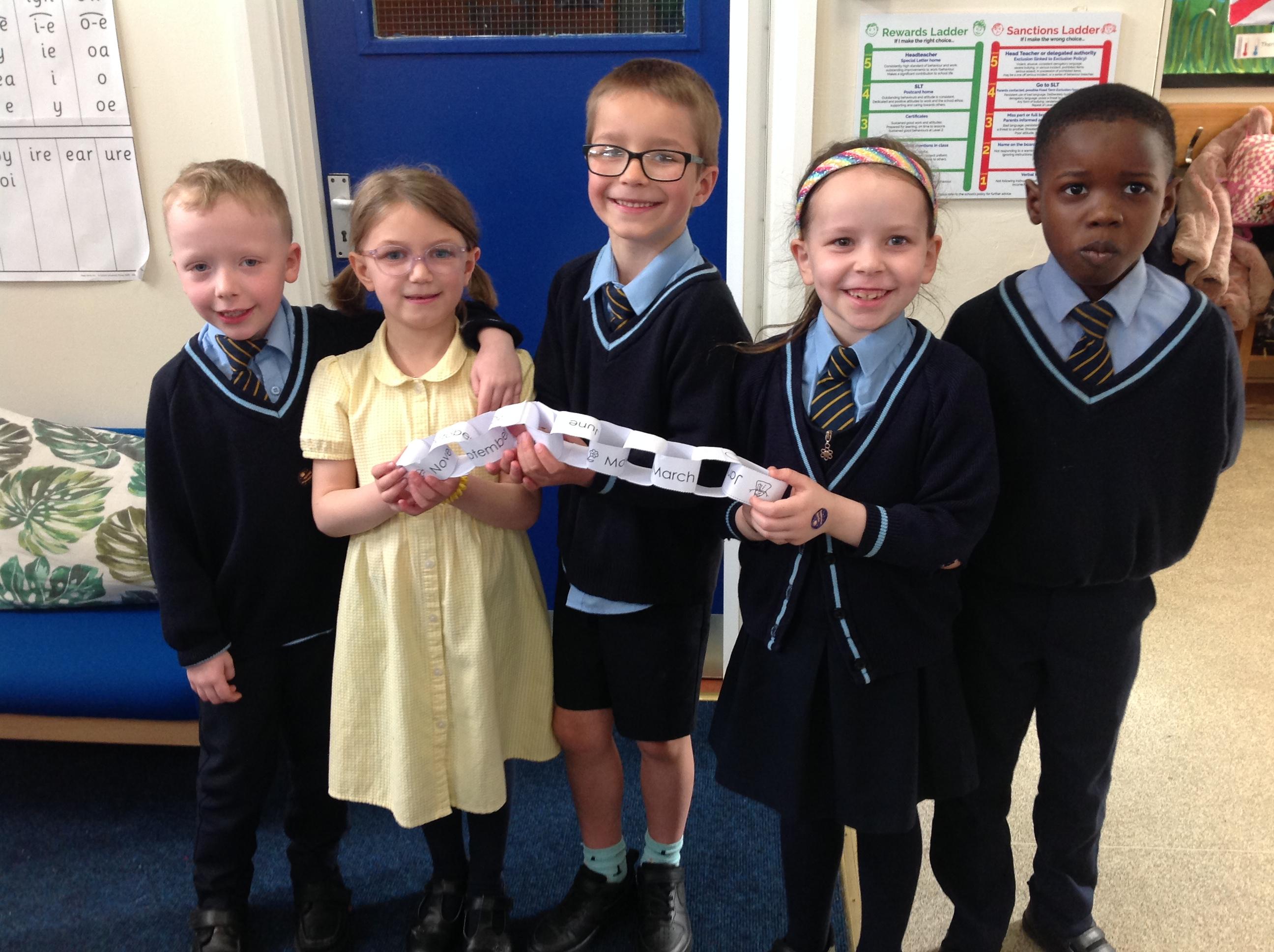 Year One have been identifying and ordering the 12 months of the year. We linked this to our previous lessons of ordinal numbers by saying which is the 3rd month, etc. We made a paper chain of the months of the year.
