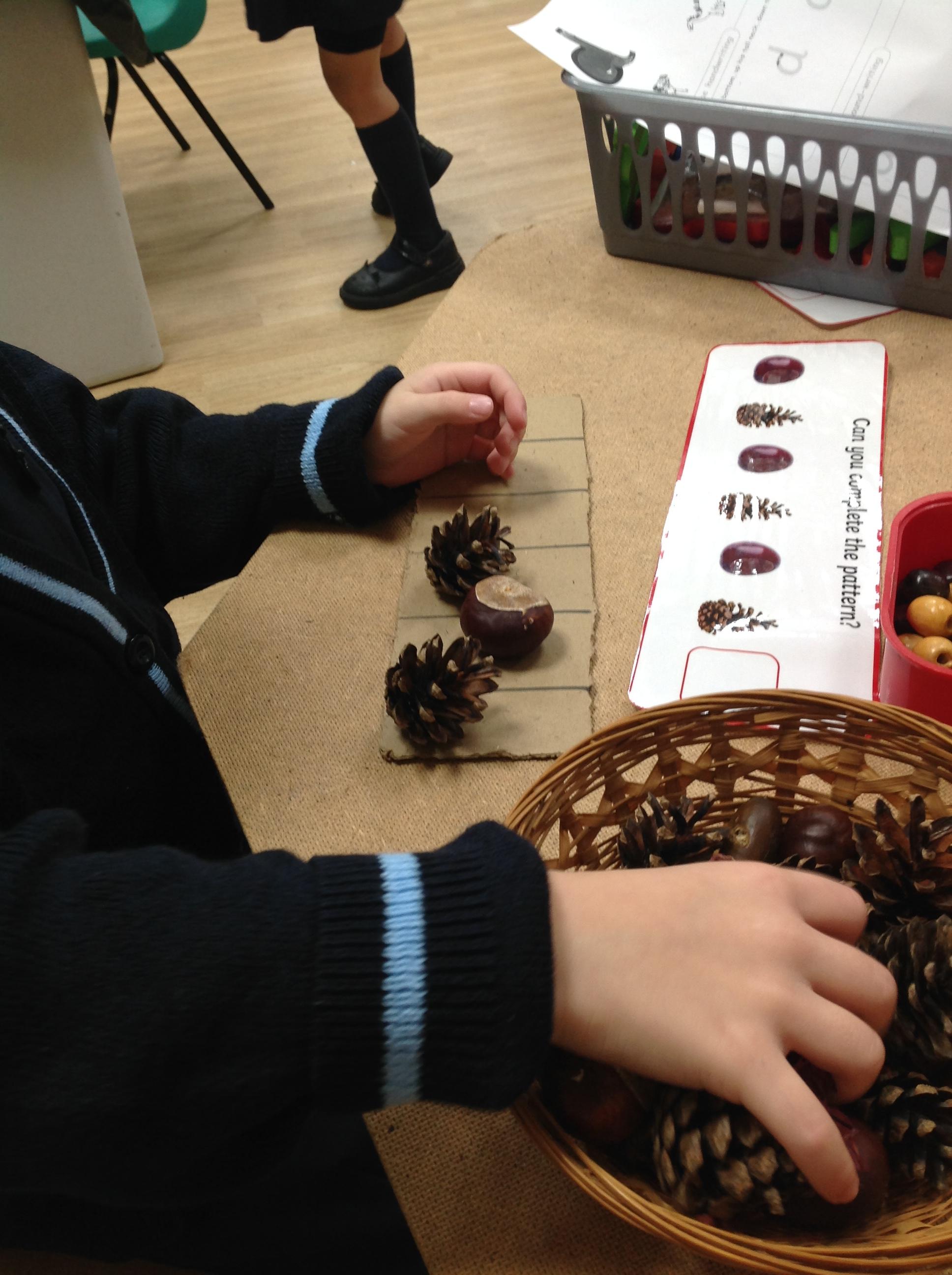 Exploring Patterns - In maths reception children have been exploring patterns. Children have been making patterns using natural materials and also from different objects in the school!