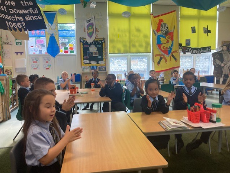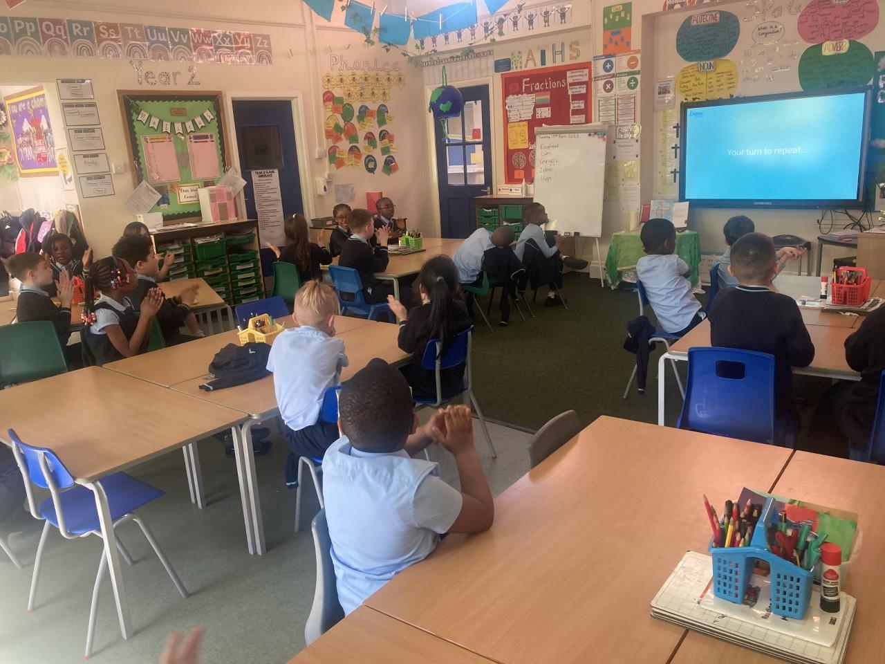 Year 2 have been learning how to create rhythms to represent a safari, linked to their Geography topic of 'Life In Kenya'. They also learnt a traditional African call and response song called 'Che Che Kule'. They had great fun performing it!