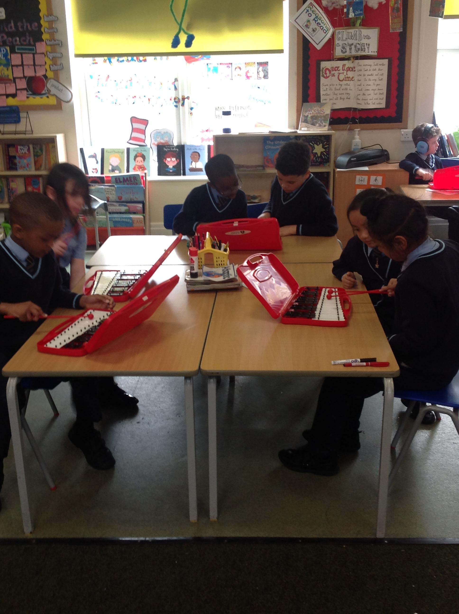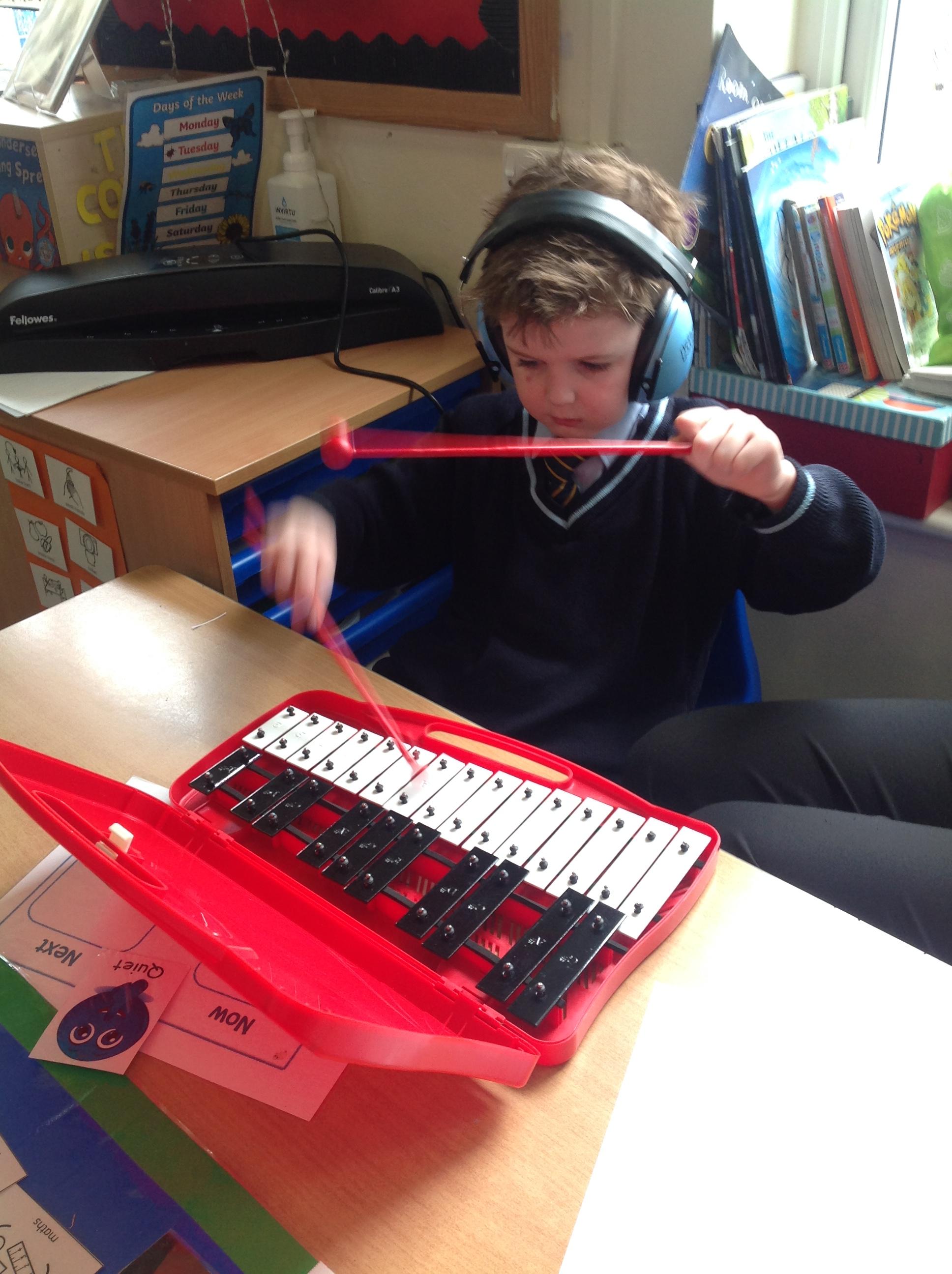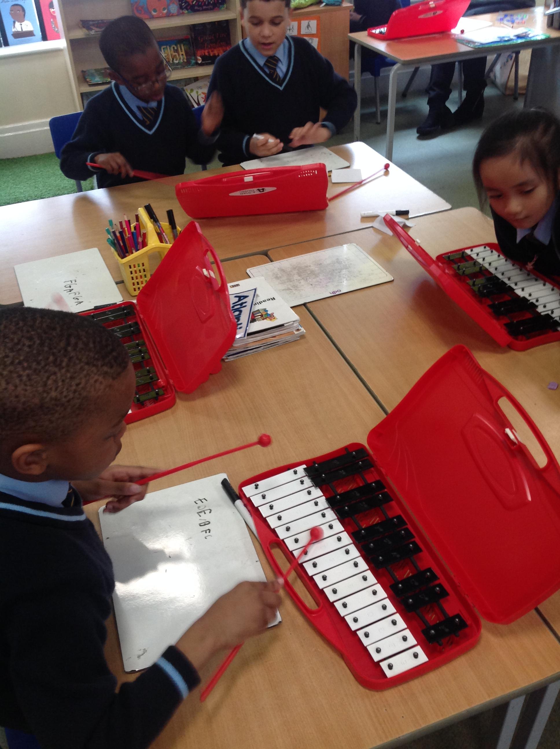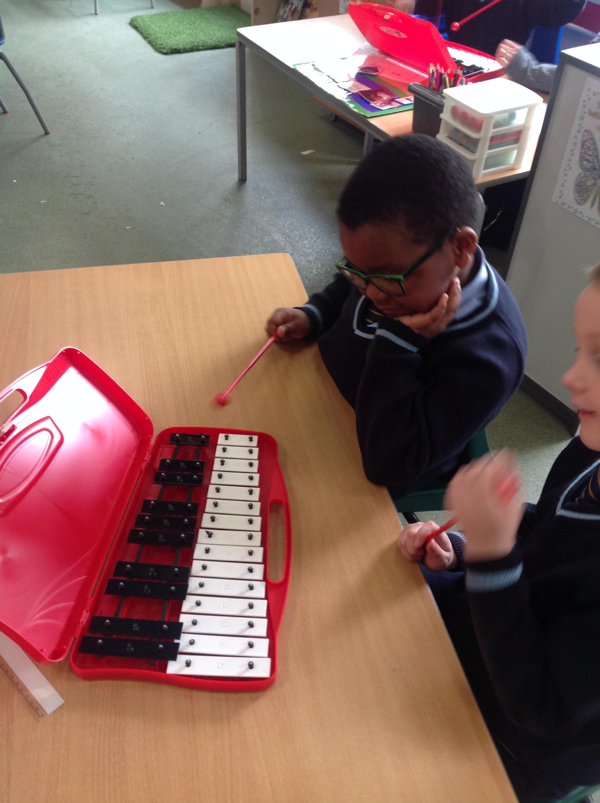 Year 2 used xylophones to practice playing the famous motif from Beethoven's 'Symphony No. 5'. They then created their own simple motif.