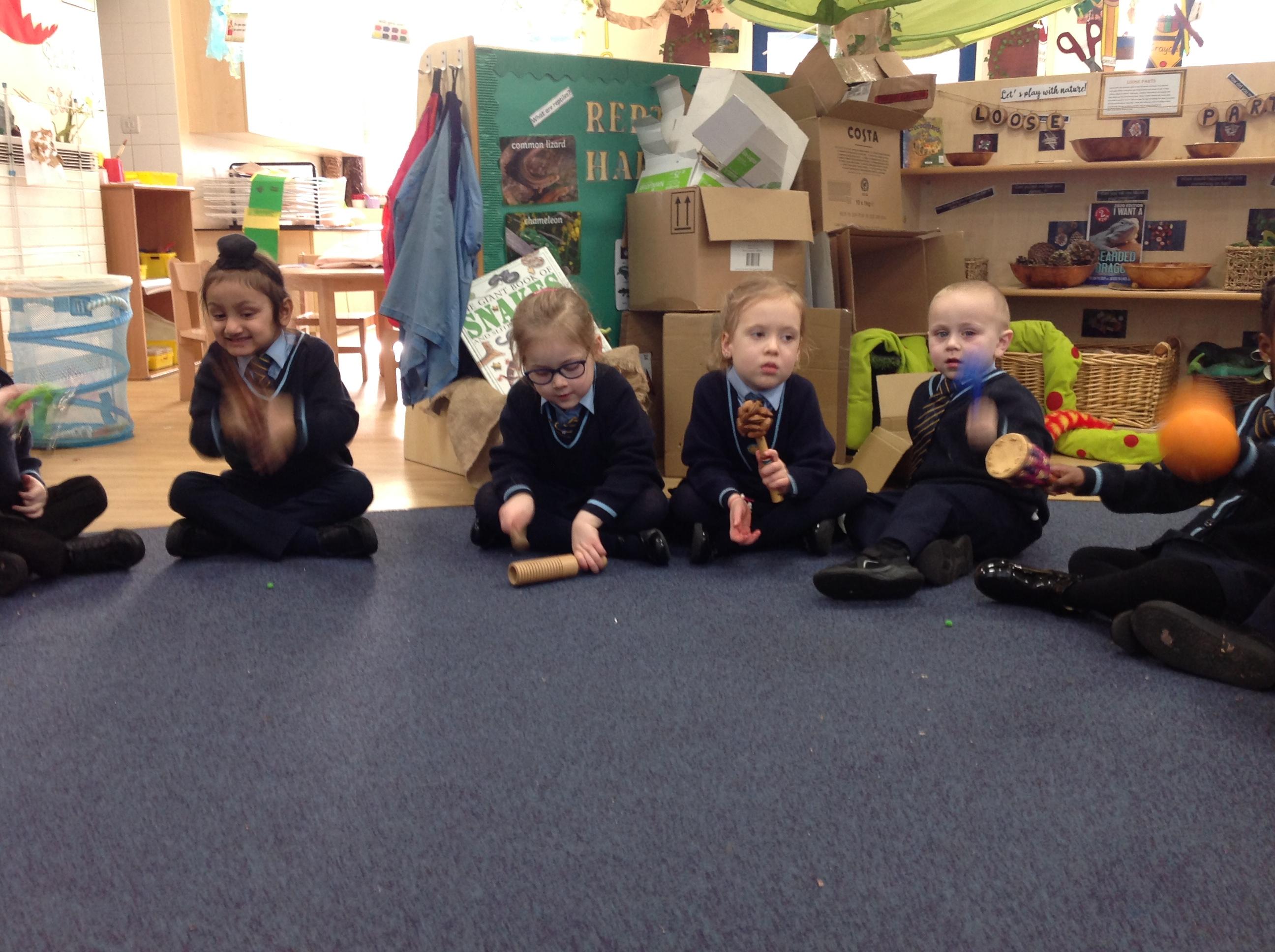 This week the children have been exploring beats in music. We created them using our bodies, and instruments.