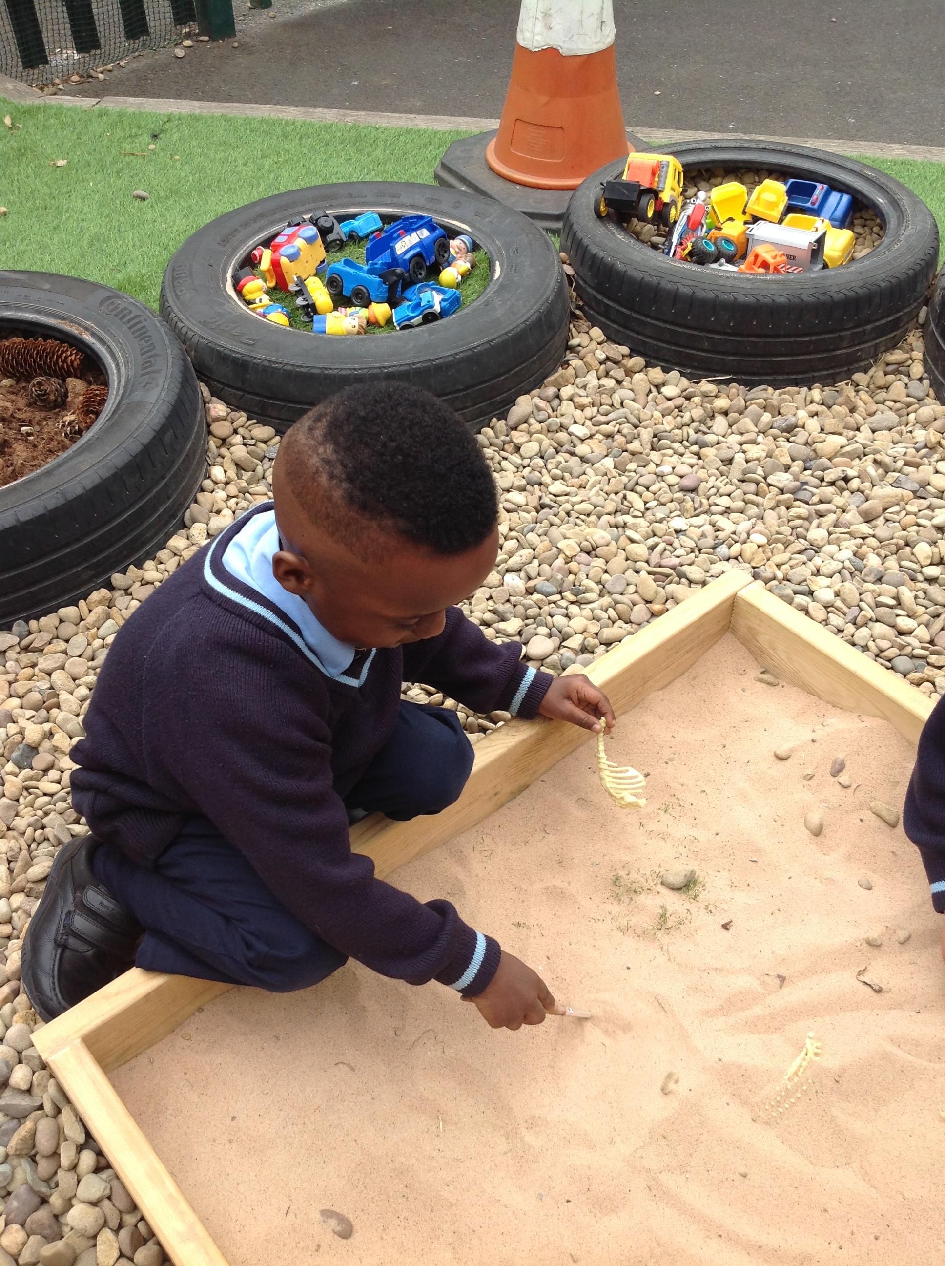 Today nursery children have been looking at all the places a dinosaur could have lived. We had different boxes that represented different areas. We had sticks for a forest, leaves for a plain, sand for a desert and water for the sea. Each child pretended to be a dinosaur and touched and smelt the different objects. Nursery were then asked what they could feel and smell. The children really enjoyed this activity and was able to tell Miss May which habitat they would like to live in if they were a dinosaur!