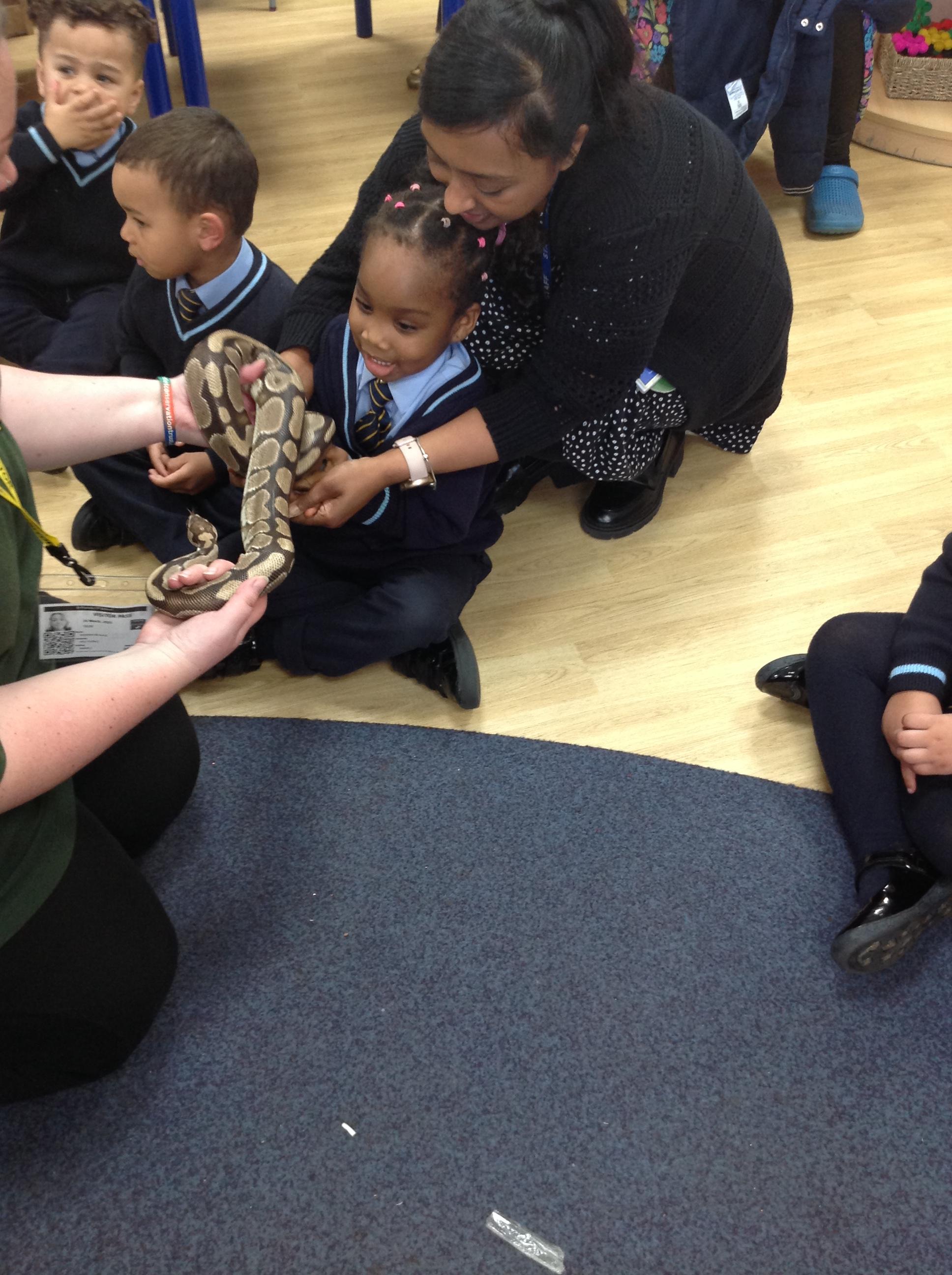 Reptiles you say? What are they? They are cold-blooded and have no vertebra! Nursery children have enjoyed learning all about reptiles this week. Our classroom has been took over by snakes, lizards, crocodiles and alligators. They are everywhere! Hanging from our painting area, in our playdough area, there are so many, but we love them! Nursery children have been learning about each reptile. Nursery have been especially working extremely hard on their phonological awareness. The children have been clapping the syllables of each animal name and have even been working on clapping their own syllables in their name.