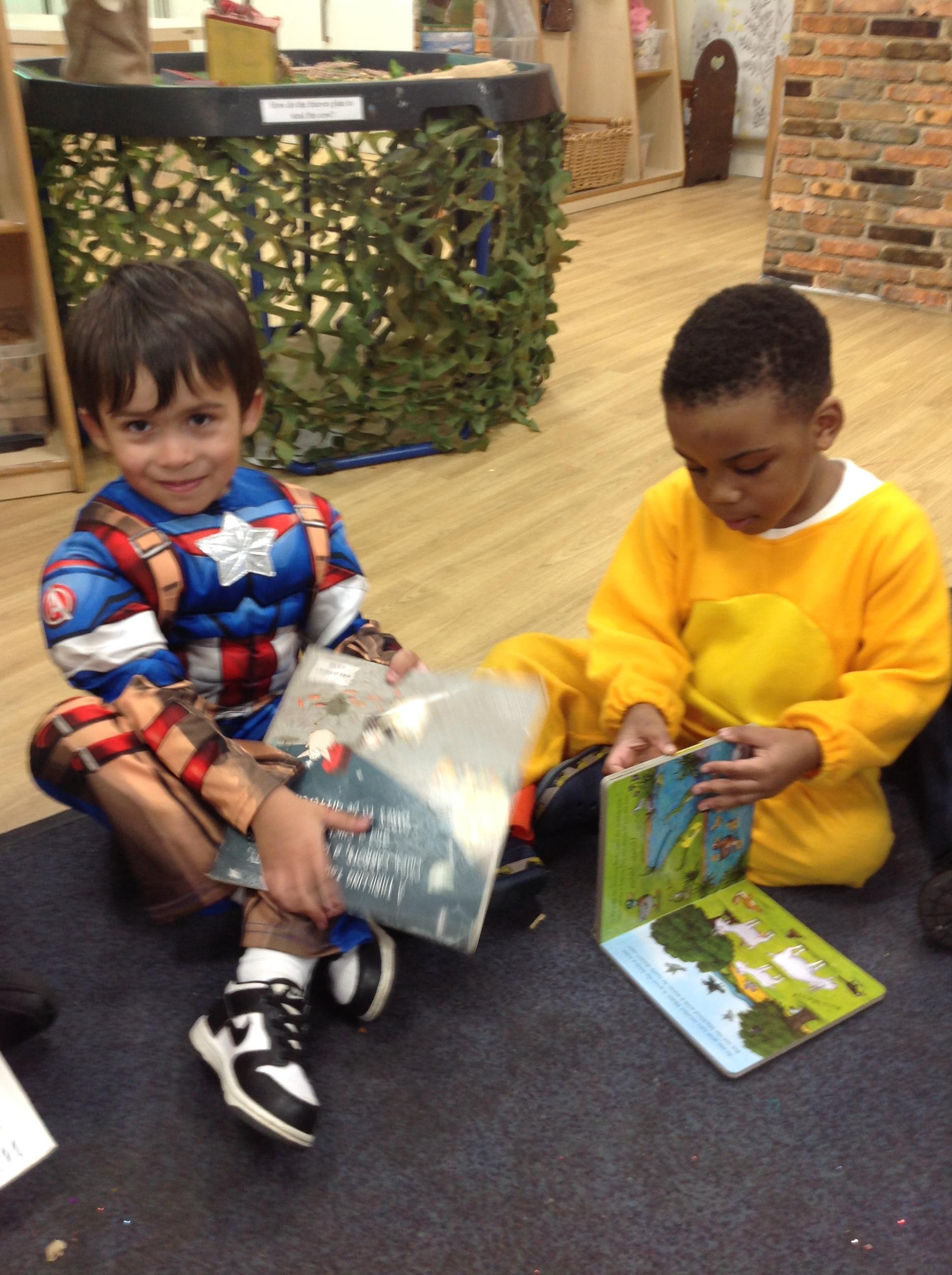 Children spent some time looking at different books. Children all sat in a circle and some children even shared the book they were reading with another friend! Children in nursery love to read different books! We love that they love to read and love books!