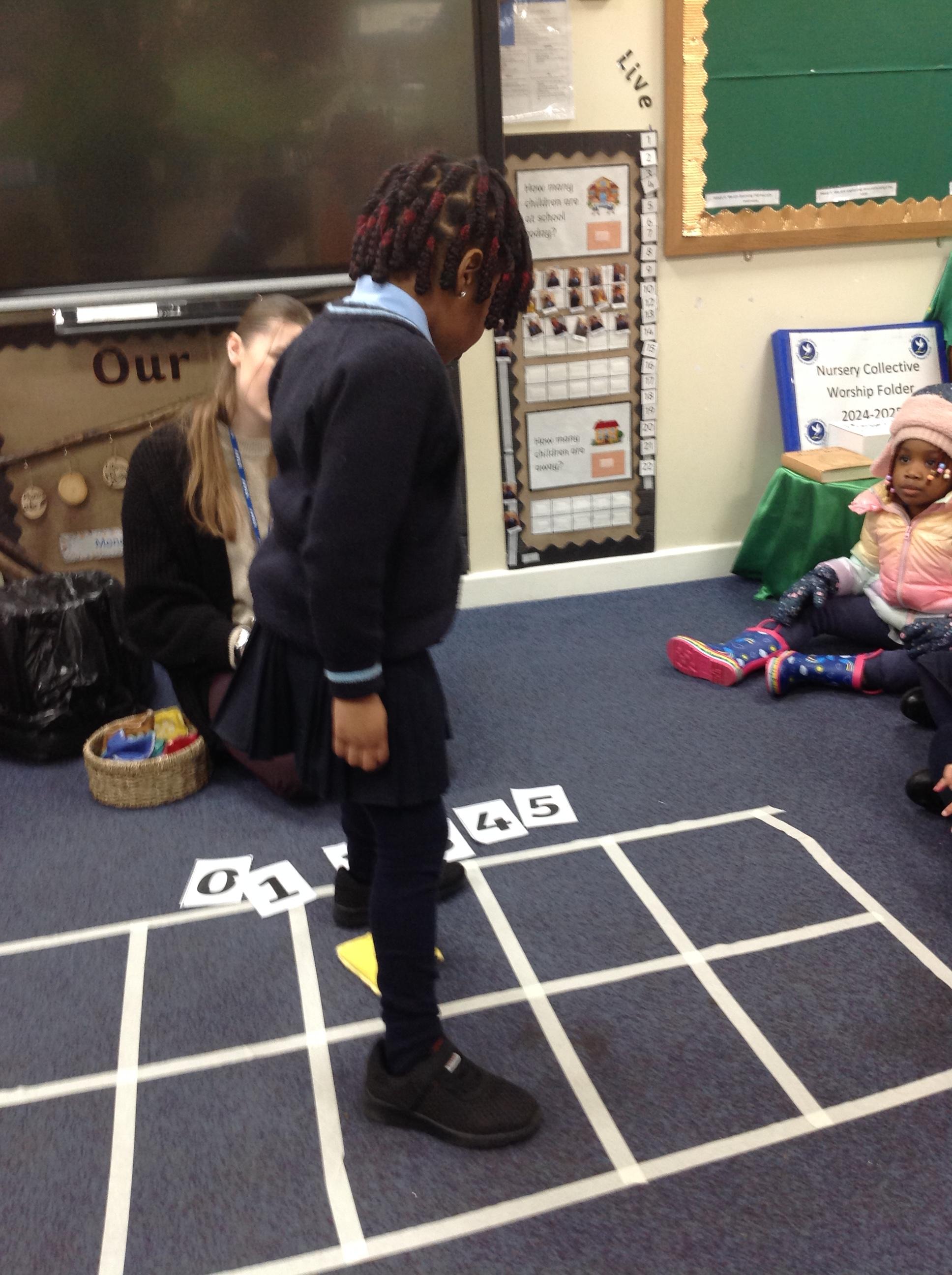 This week nursery have been working really hard on linking their numbers to amounts. Nursery children have been making groups of objects that match the number shown. The children especially enjoyed counting out dinosaurs!