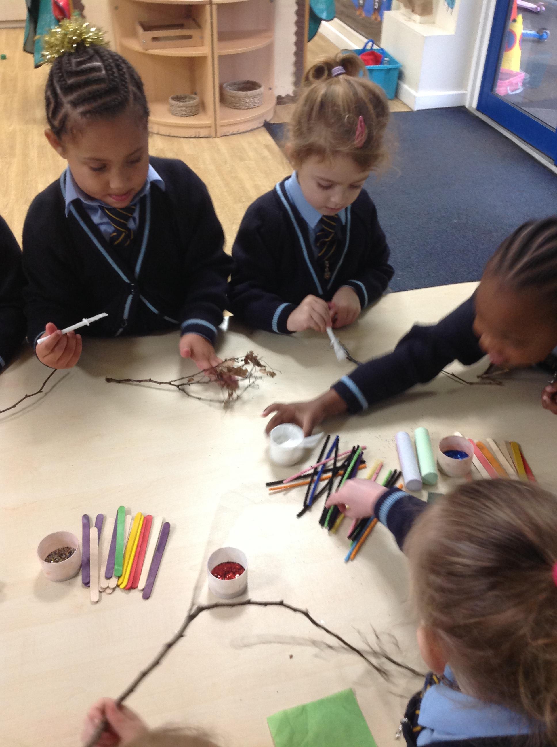 In Nursery the children have been decorating their own dragon scales. The children have been gluing and sticking different materials. Don't they look so beautiful and colourful!
