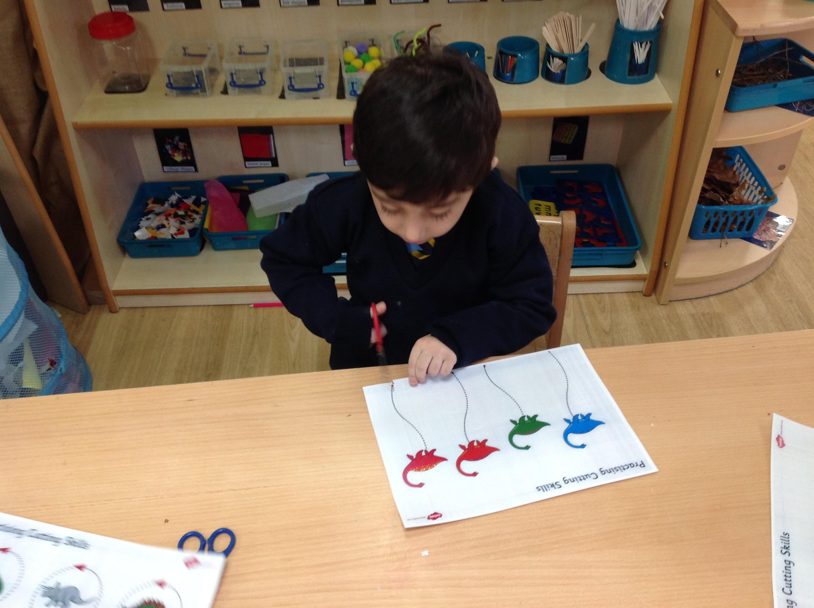 Nursery children have been developing their cuttings skills using some dinosaur cutting skill sheets. The children have loved cutting along the lines of our dinosaurs!