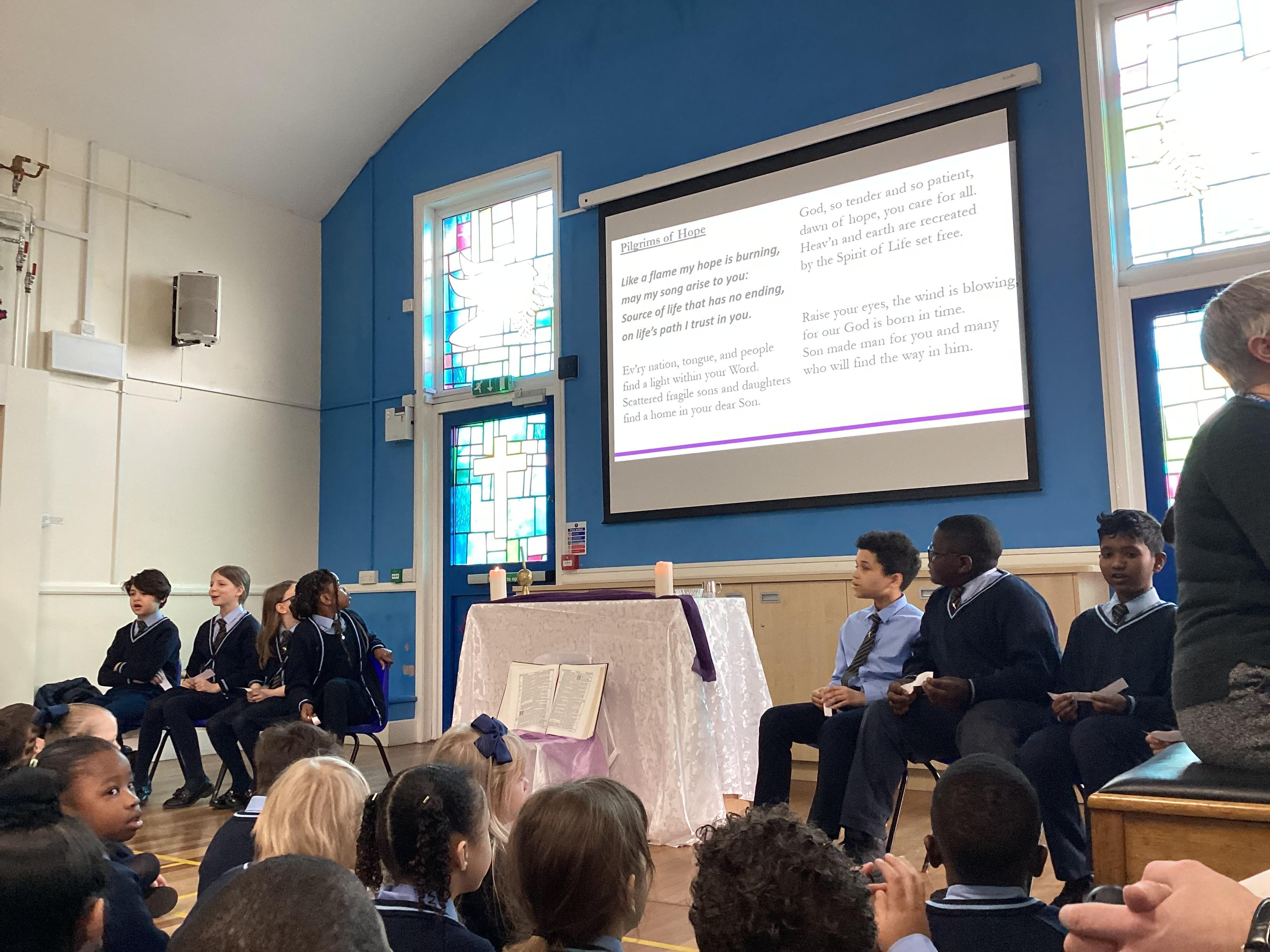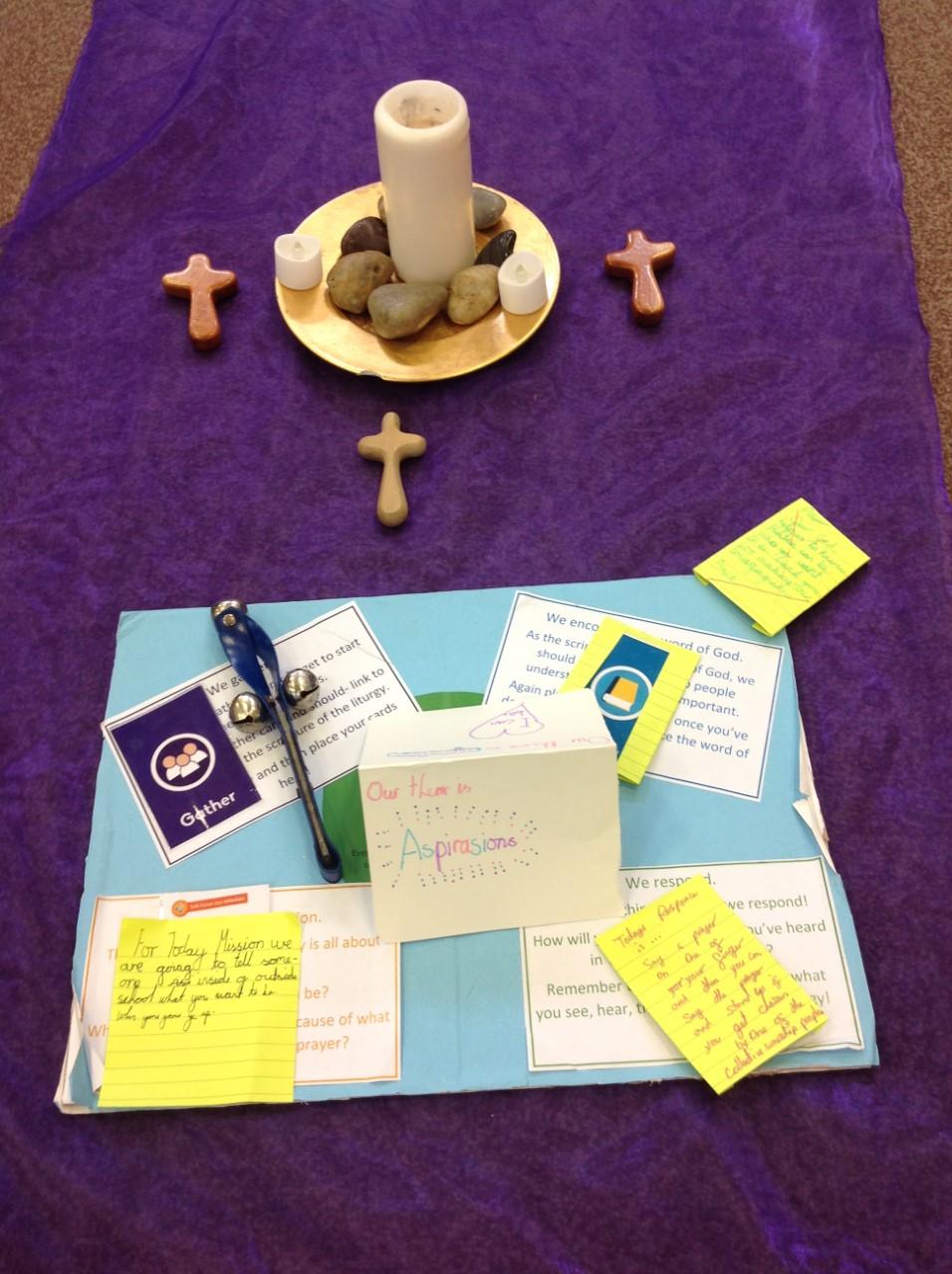 Year Three's prayer and liturgy team decided they wanted the collective worship theme to be aspirations. They planned the whole liturgy from the gather through to the mission, finding their own scripture linking to the theme. They even created a song to call and response with the rest of the class, 'I can be anything I want to be.'