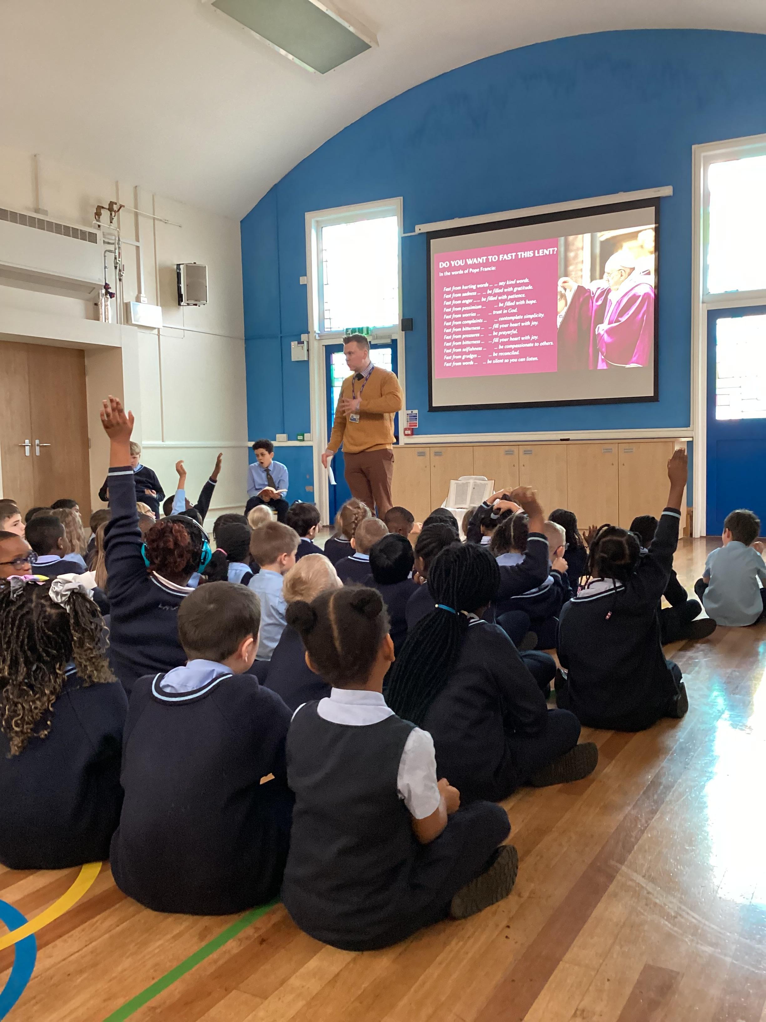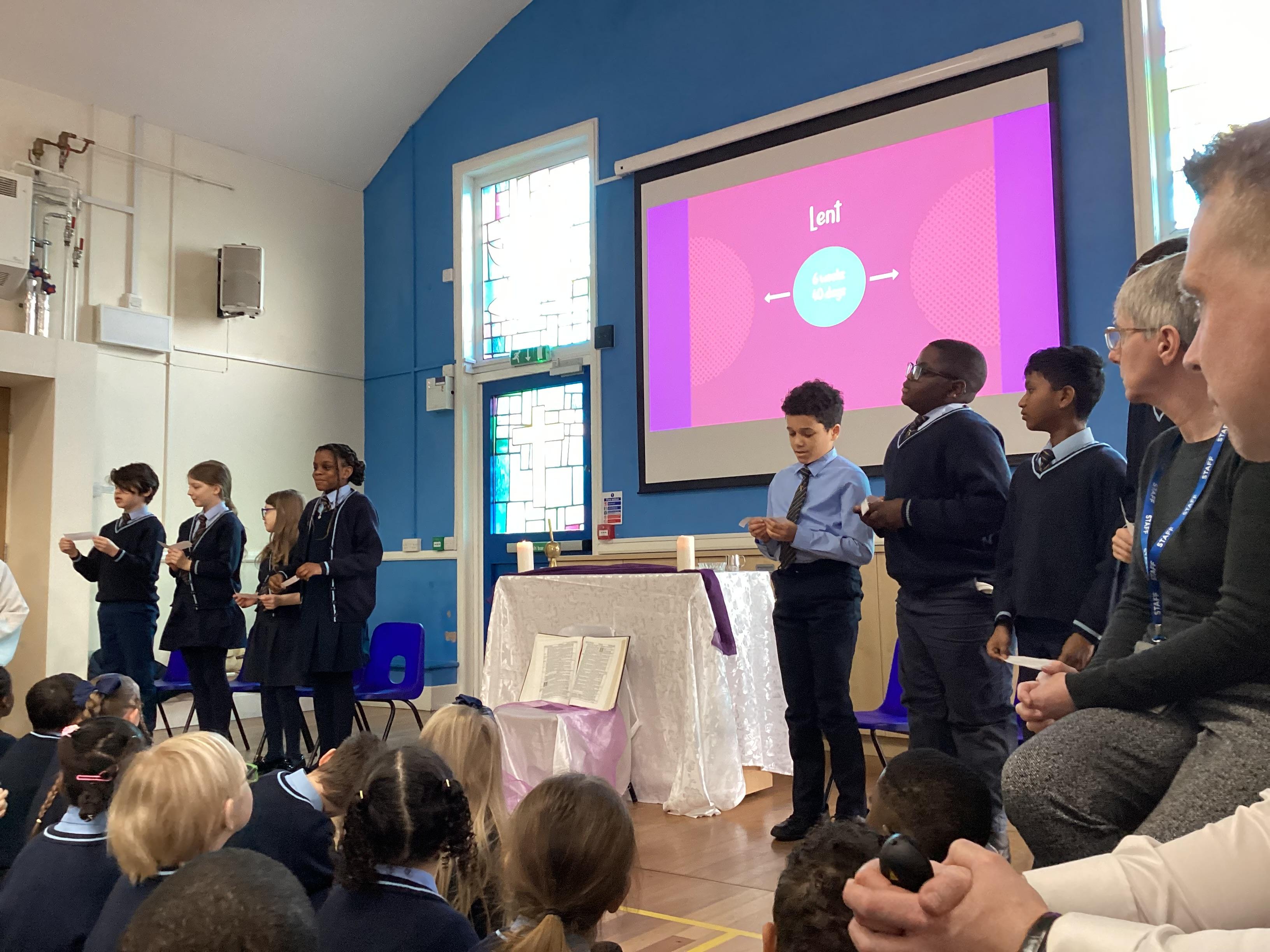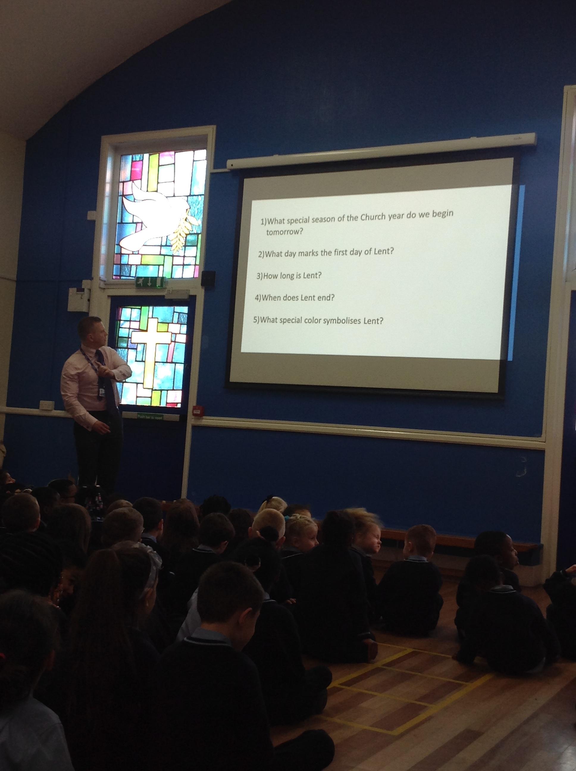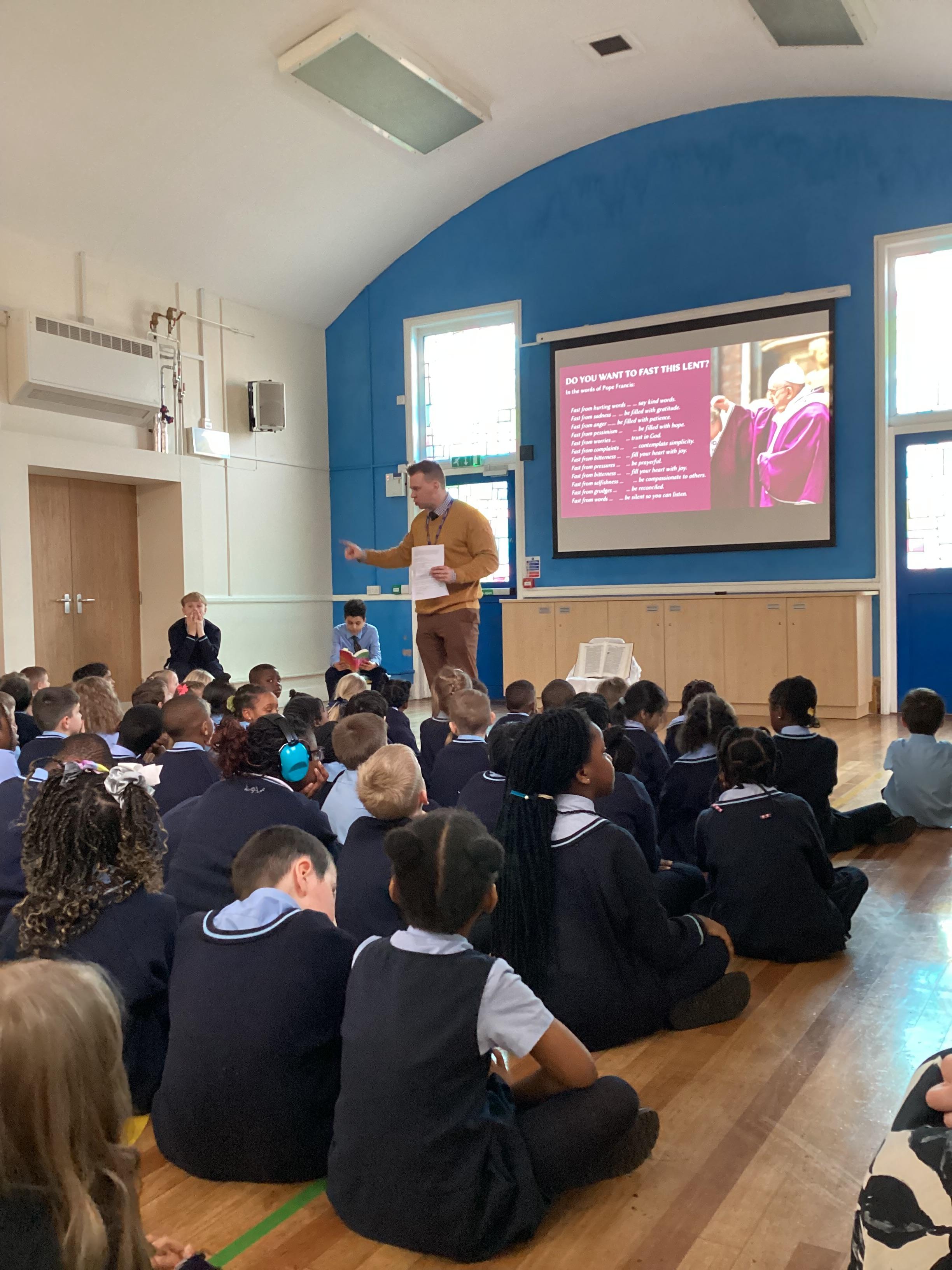 Today in Gospel Assembly we learnt about Ash Wednesday. We learnt how we don't say hallelujah during Lent and it lasts 40 days. Then we heard the word from the Gospel of Luke. We reflected on the word and how it can relate to us. Finally, we prayed for Pope Francis and said the Hail Mary.