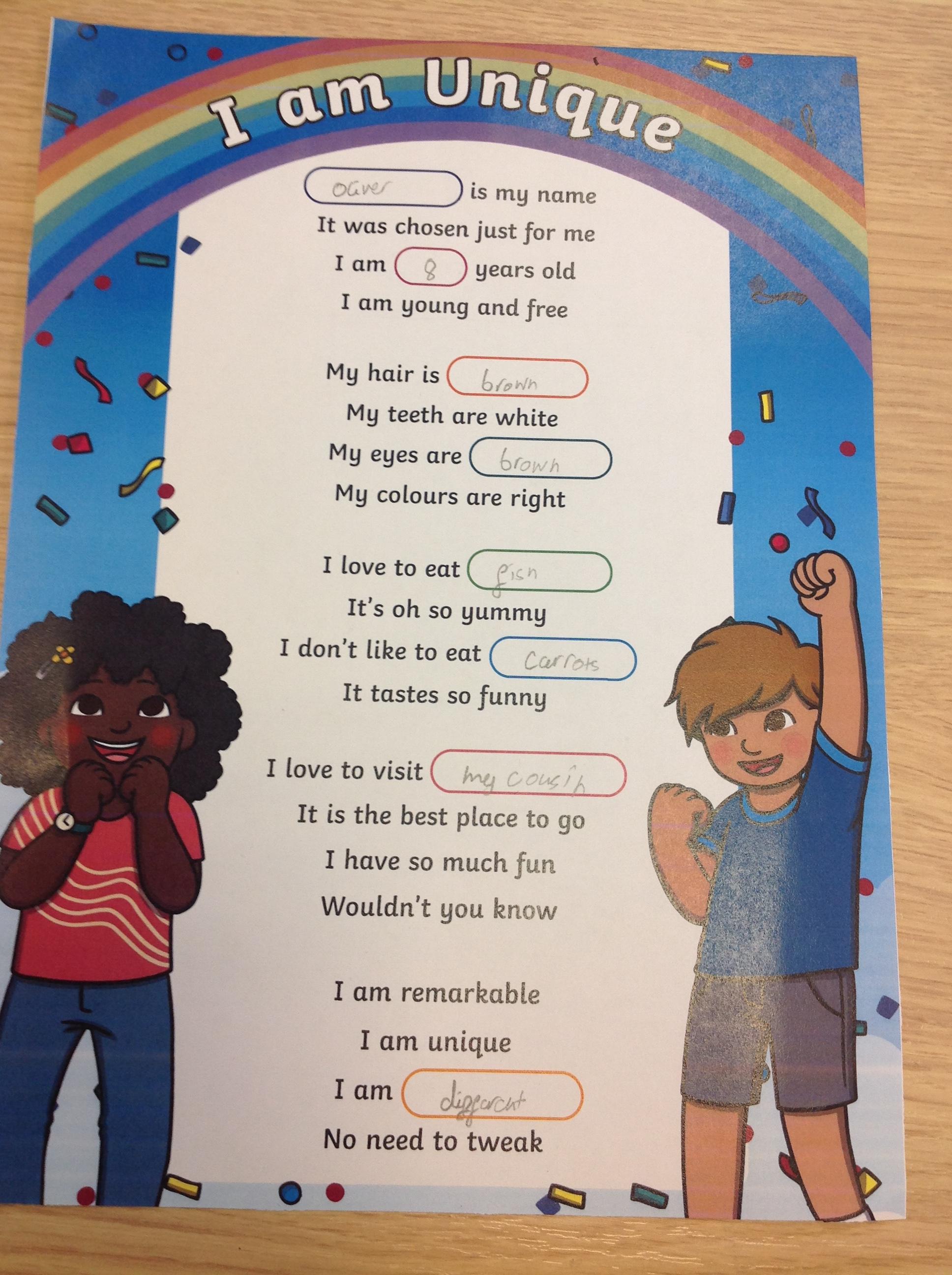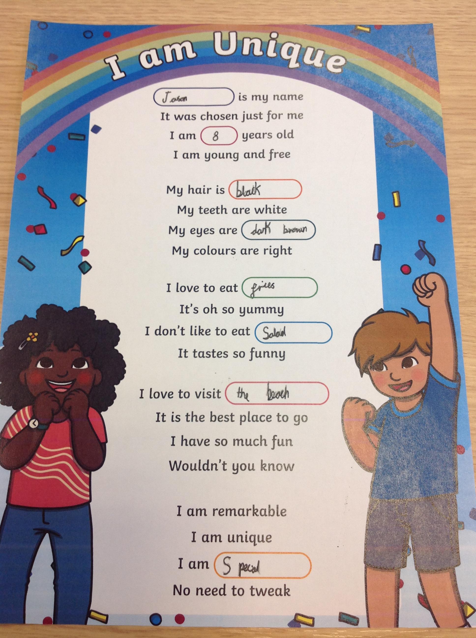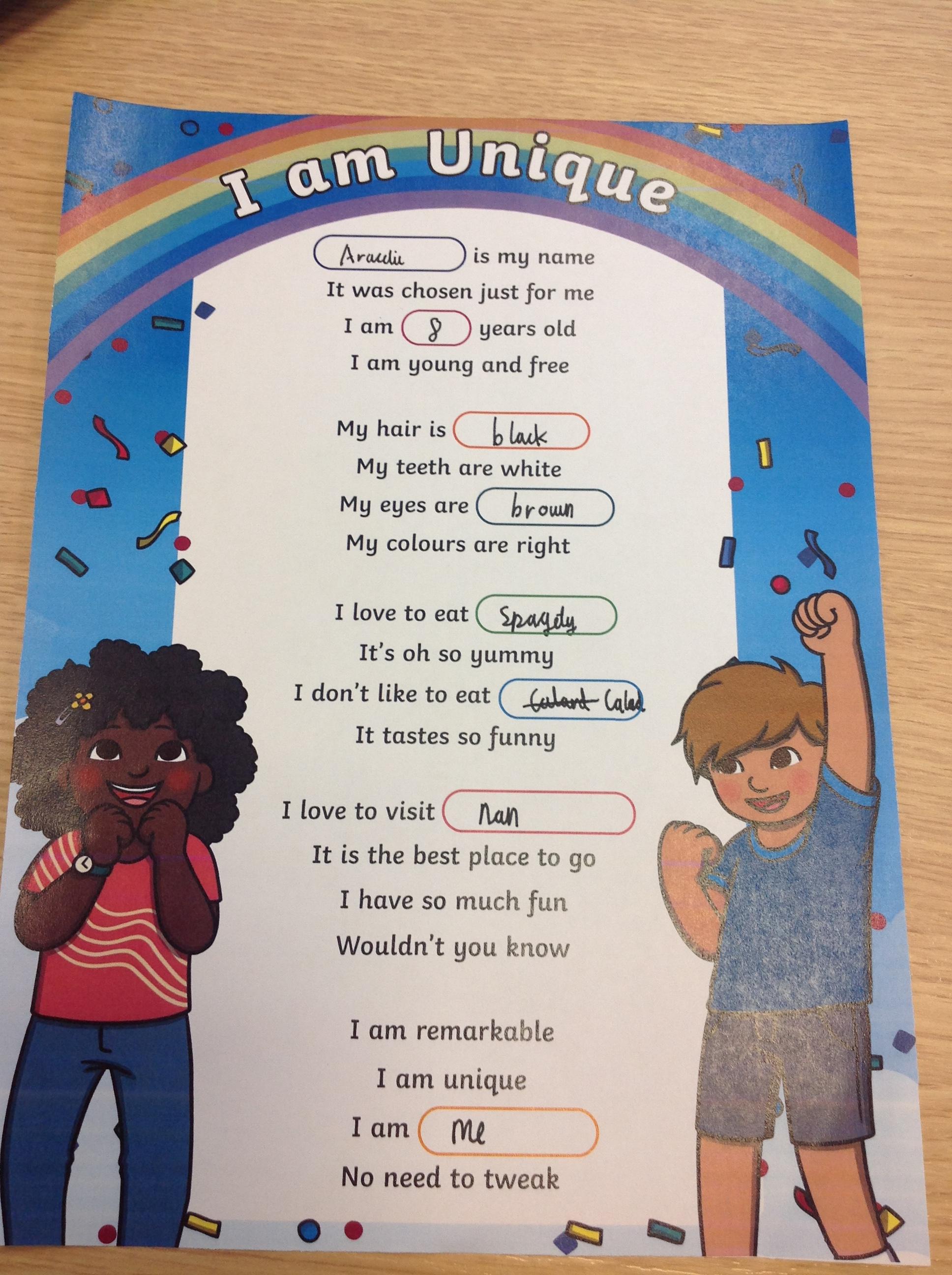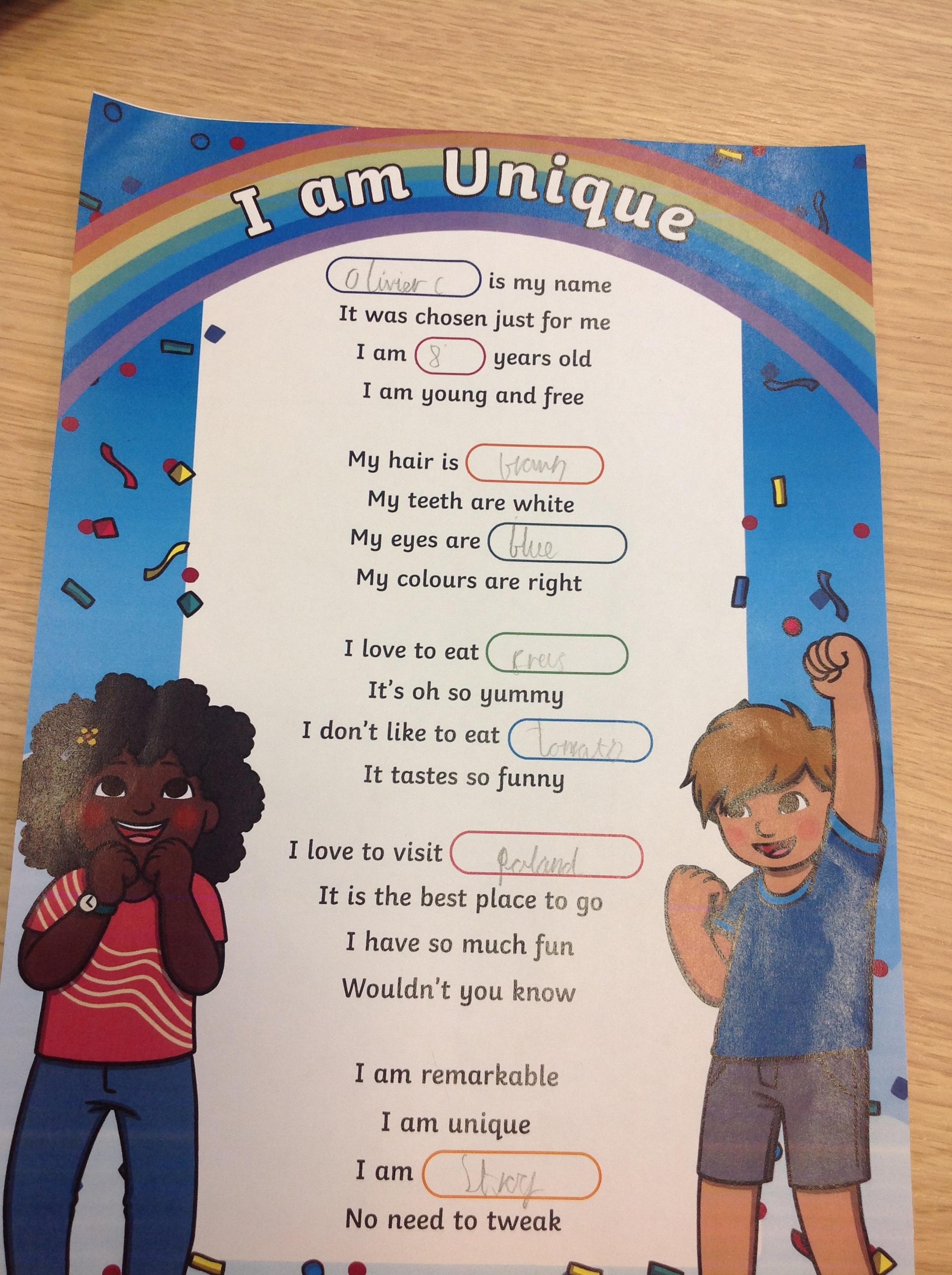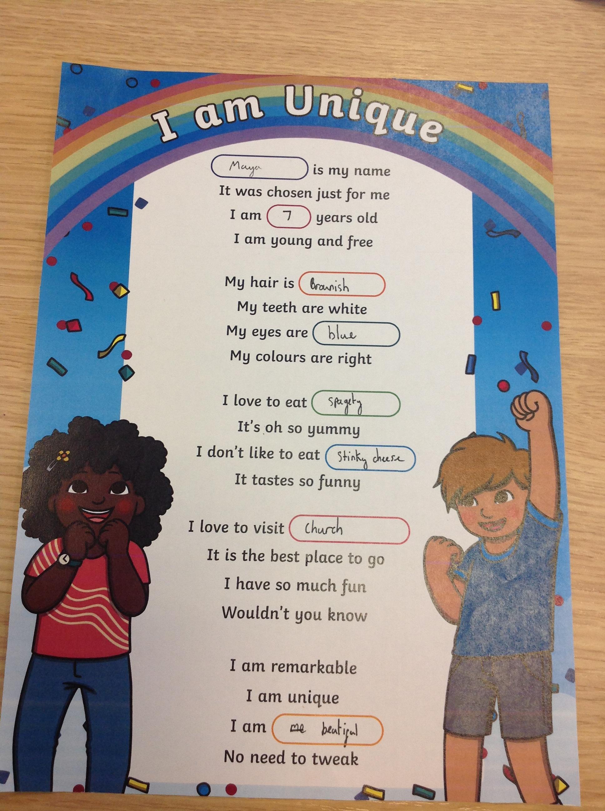 Year 3 liturgy- I am unique