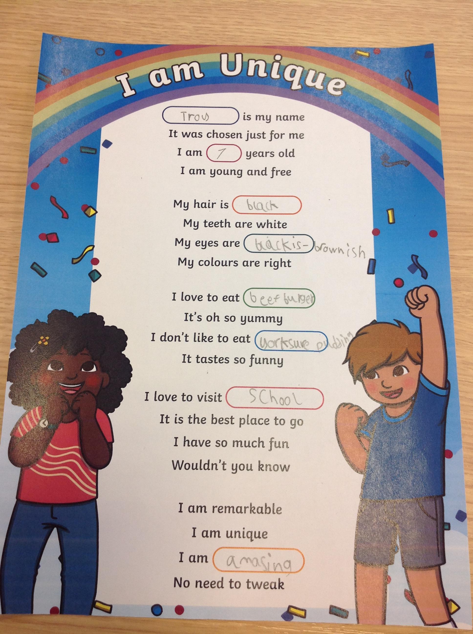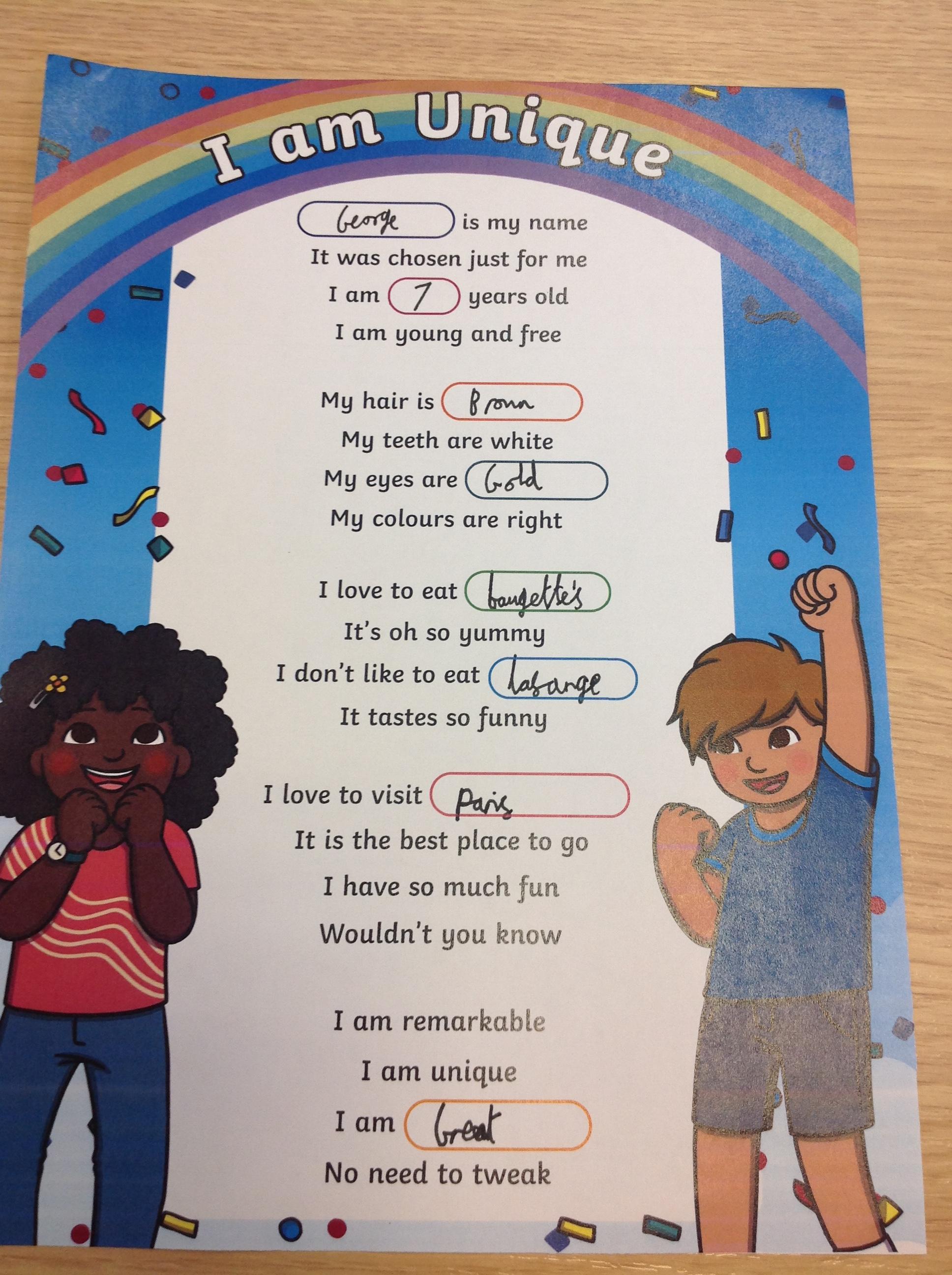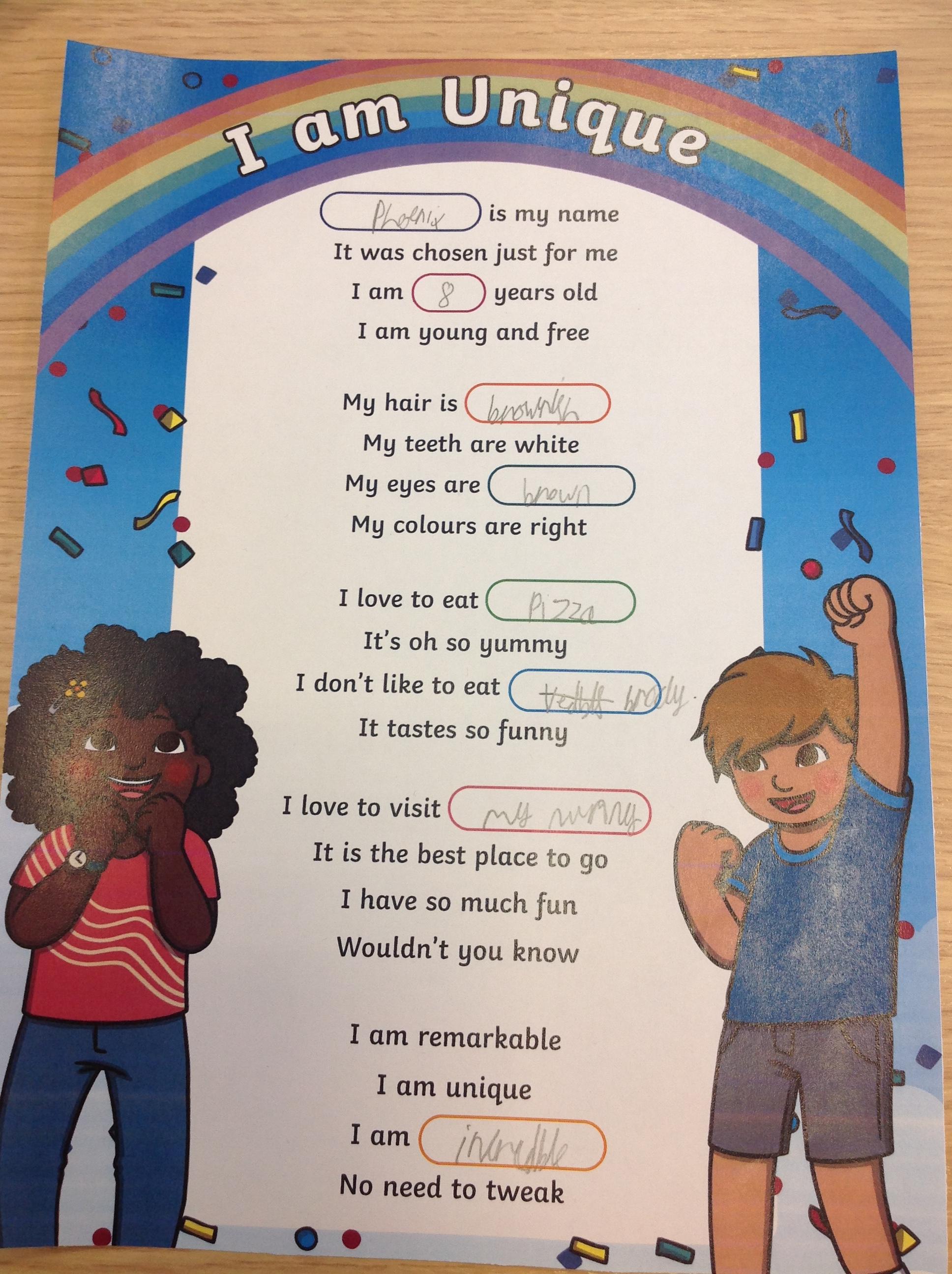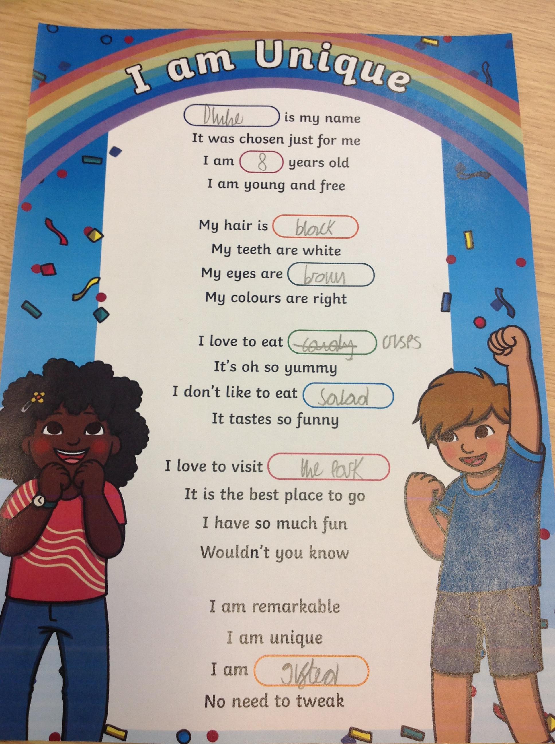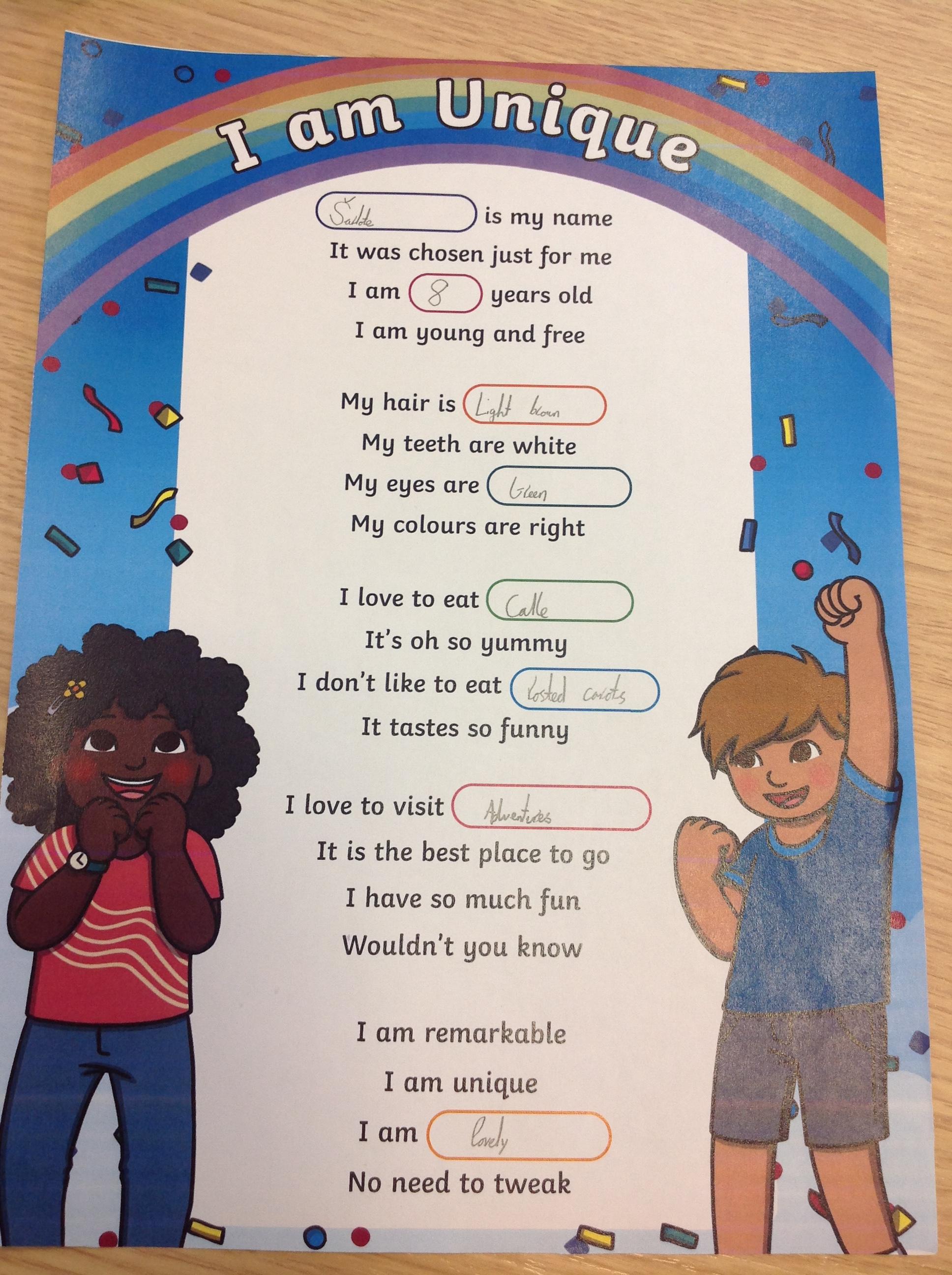 Year 3 liturgy- I am unique
