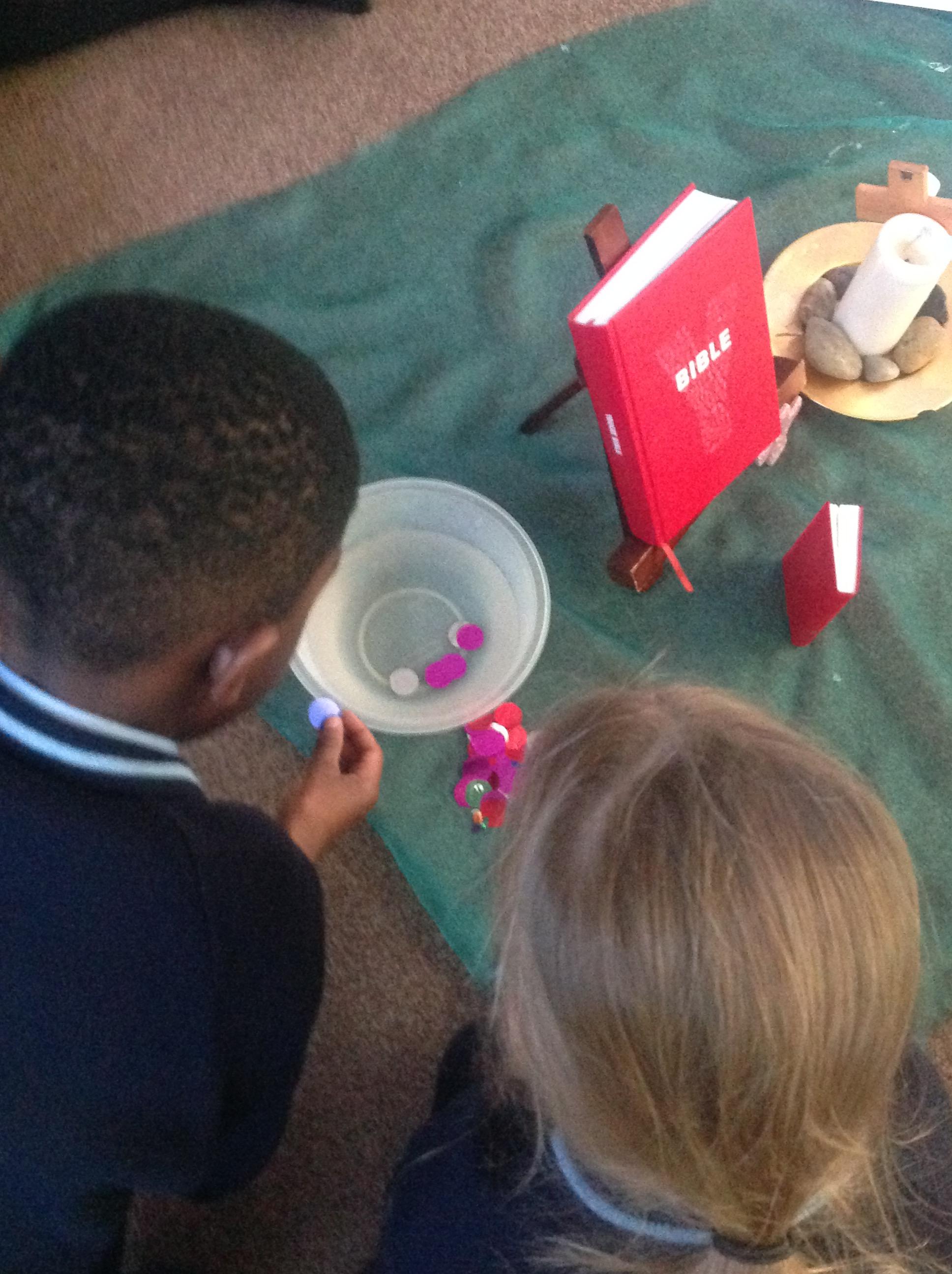 Our liturgy focus is gifts. We started by gathering in a circle listening to peaceful music whilst thinking about God. Before we listened to the word we placed both our hands together like a bowl and thought of a memory or thought to offer God. Then we listened to the word from 1 Corinthians 12:12-30. In response to this we dropped a sequin in a bowl of water whilst praying to God thanking him for the gifts he has given us. Our mission is to tell someone their special gift.