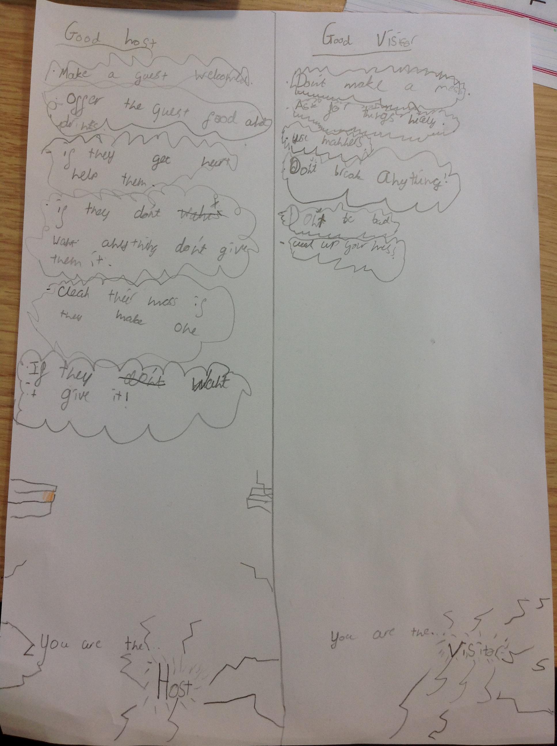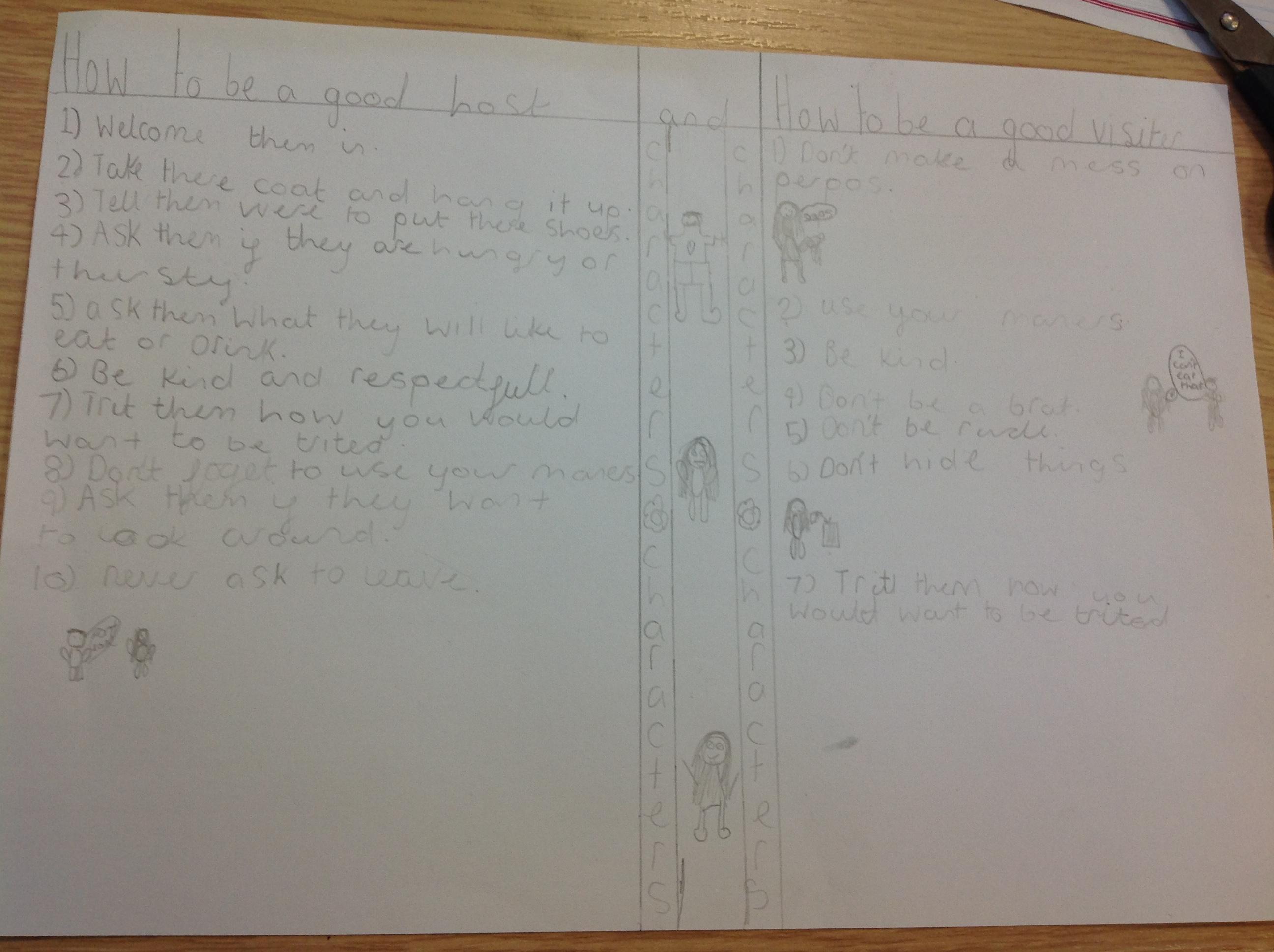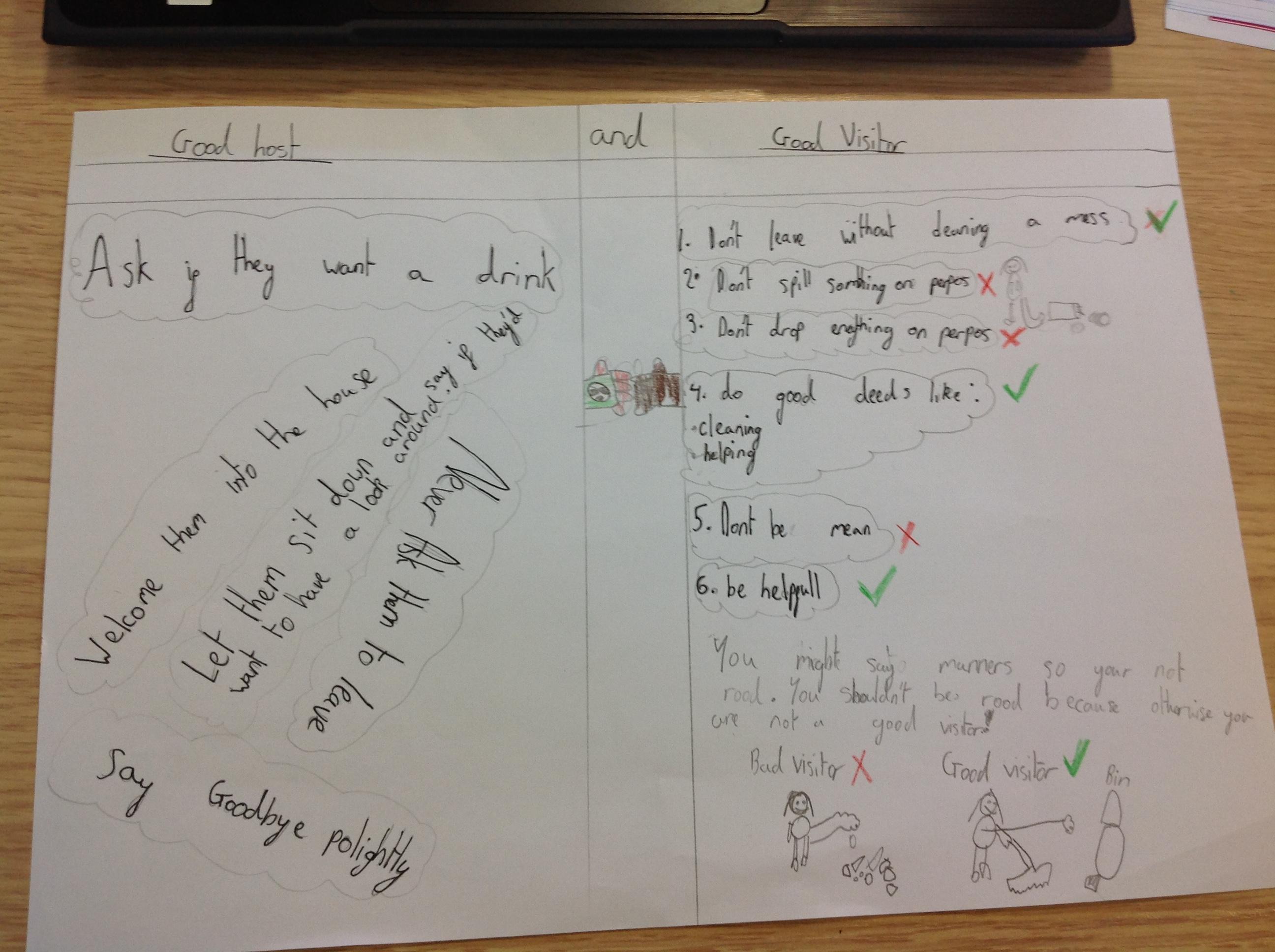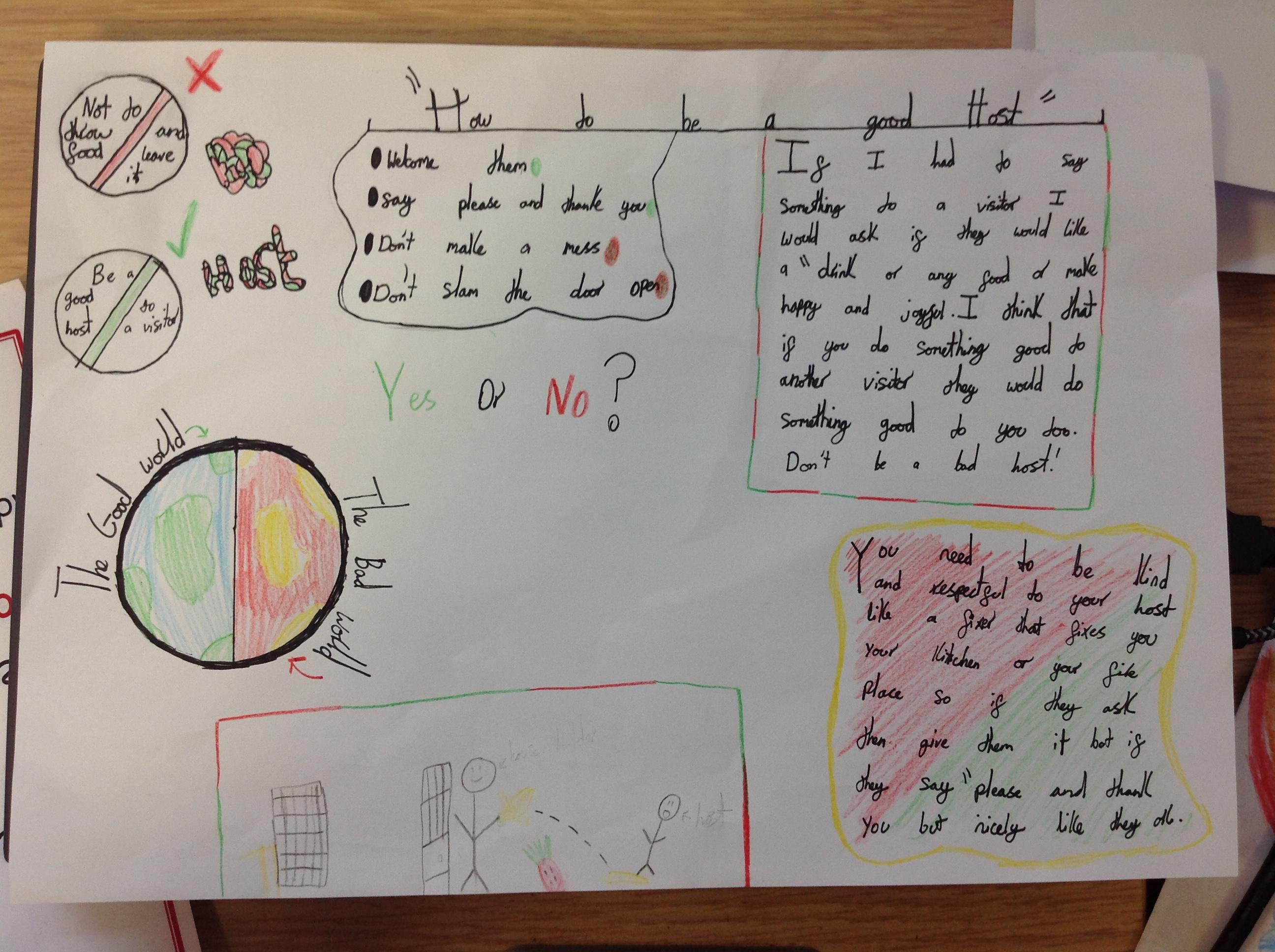 Our RE topic in Year 3 is visitors. We reflected on everything we had learnt through class liturgy. We responded by making posters showing what makes a good host and a good visitor. Here are the children's responses to our Liturgy: