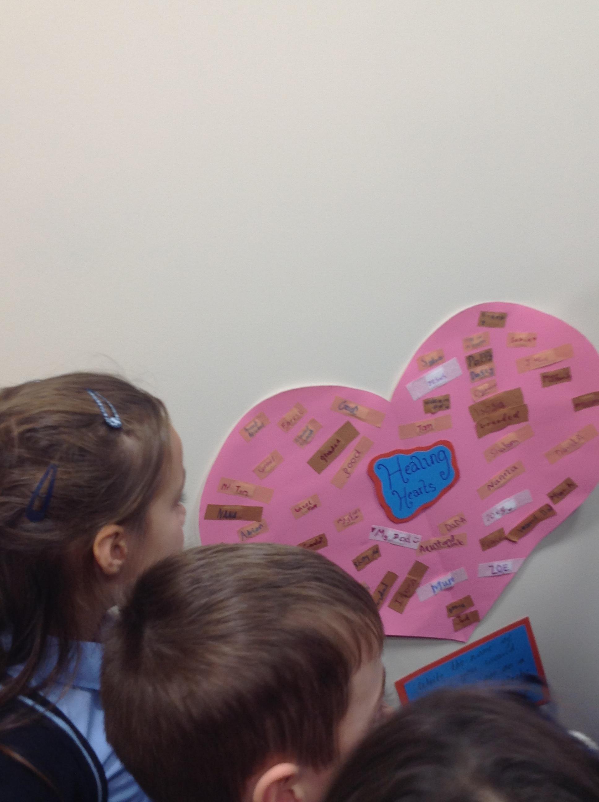 With the focus of our liturgy being prayer we visited the prayer room. We looked at the healing heart and read some of the names people have asked for prayers for. The children's mission is to use the prayer room and the healing heart to pray for someone in need in their lives.