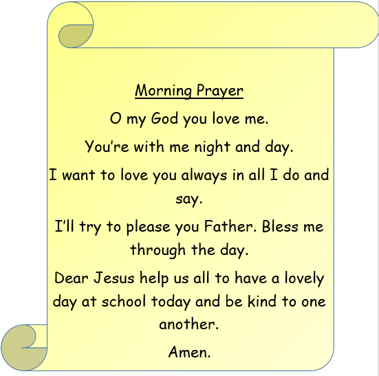 Today children took part in a prayer and liturgy all about kind words. Children focused on God's word and how it is important to be kind to one another and say nice things instead of hurtful things. Children spoke about all the kind words that they could say to someone. Children said that the nicest thing to say to someone is "I love you." At the end of our worship we prayed to God.