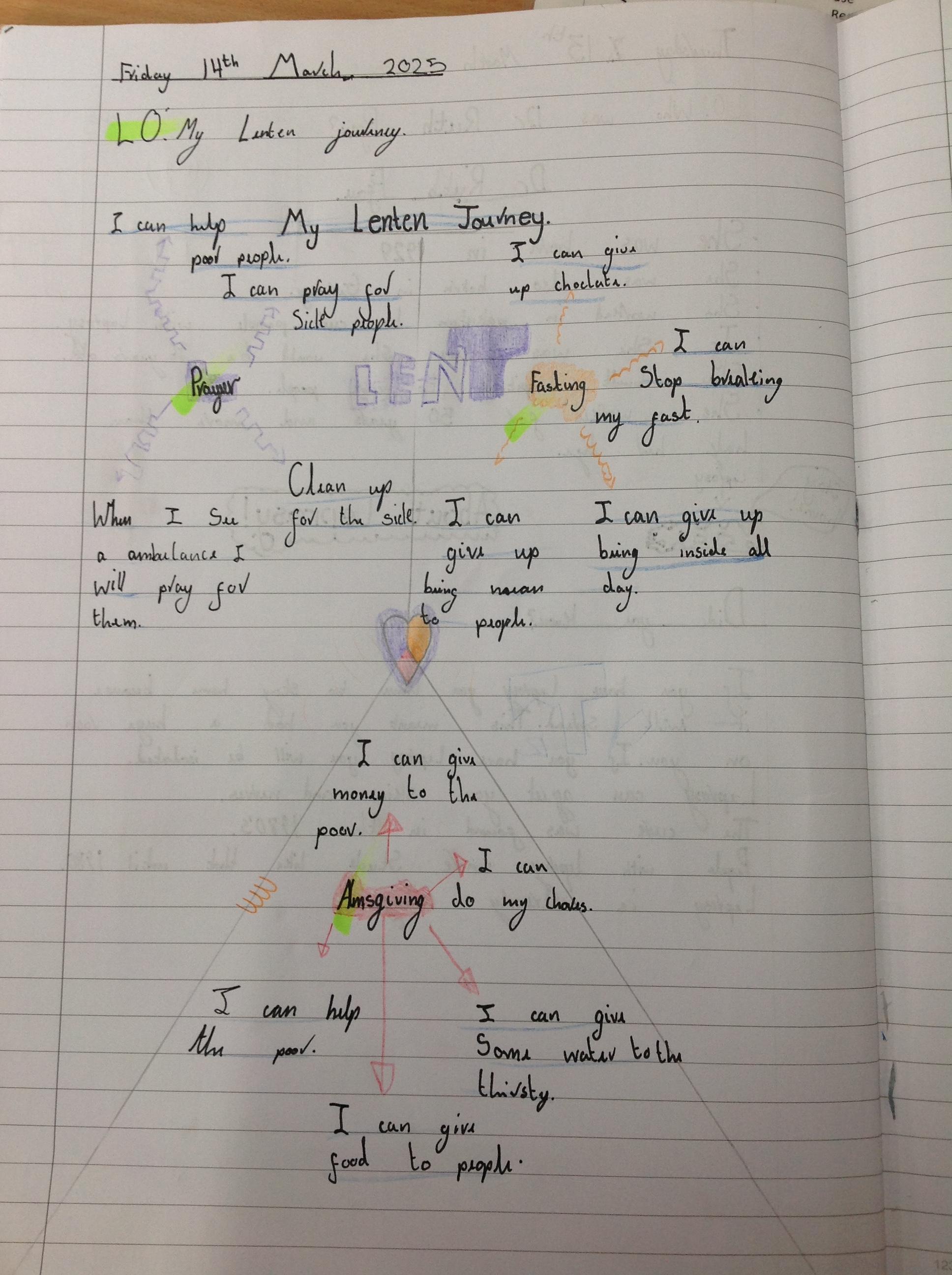 In Year One, we have explored Lent and looked at how we can Pray, help others and fast during the next 40 days. We worked as a group to think of different ideas.