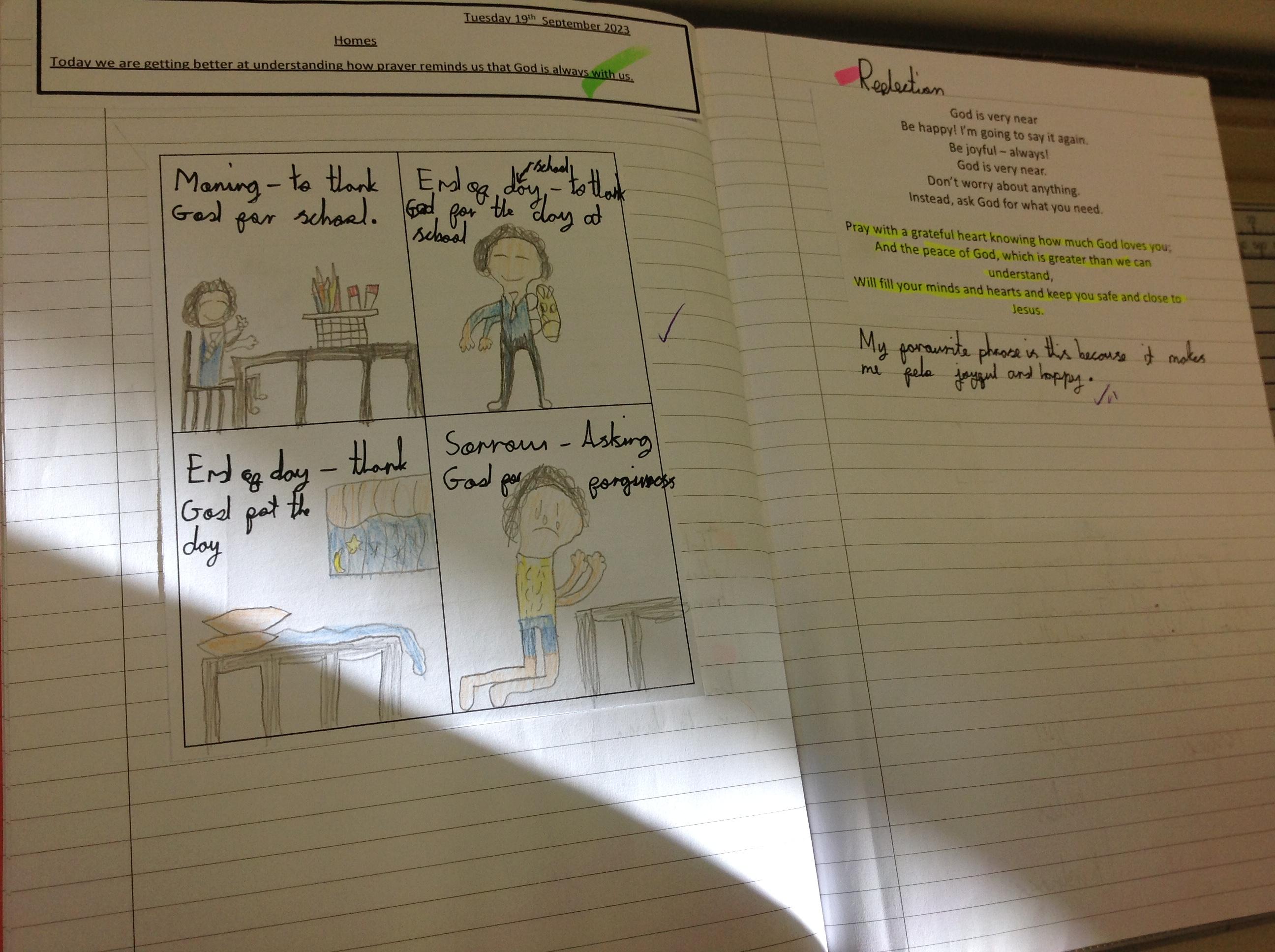 In Year 2, they have created a piece of artwork in RE to represent and celebrate the fact that God is always with us.