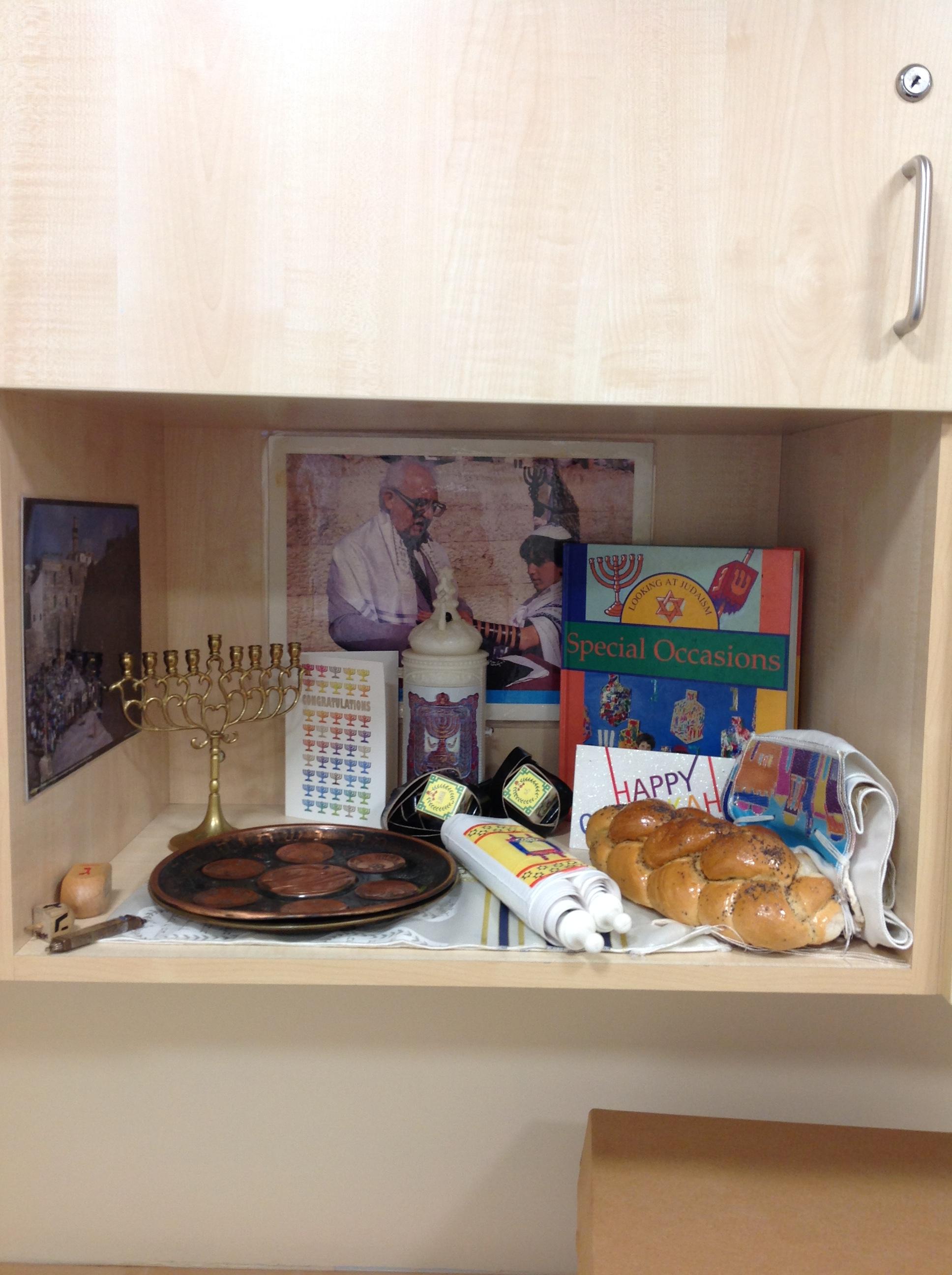 Nursery class explored Judaism and Hanukkah. We used books to look at photographs and find information and new vocabulary together. We used our senses to explore artefacts and objects from the faith and from the past. Mrs Searson talked to the children about her experience of visiting Jerusalem and the important places in the photographs. Children are beginning to know that there are different religions. They are beginning to understand that some things are similar and different to the Catholic faith. They can use their senses to talk about artefacts and objects linked to religion.