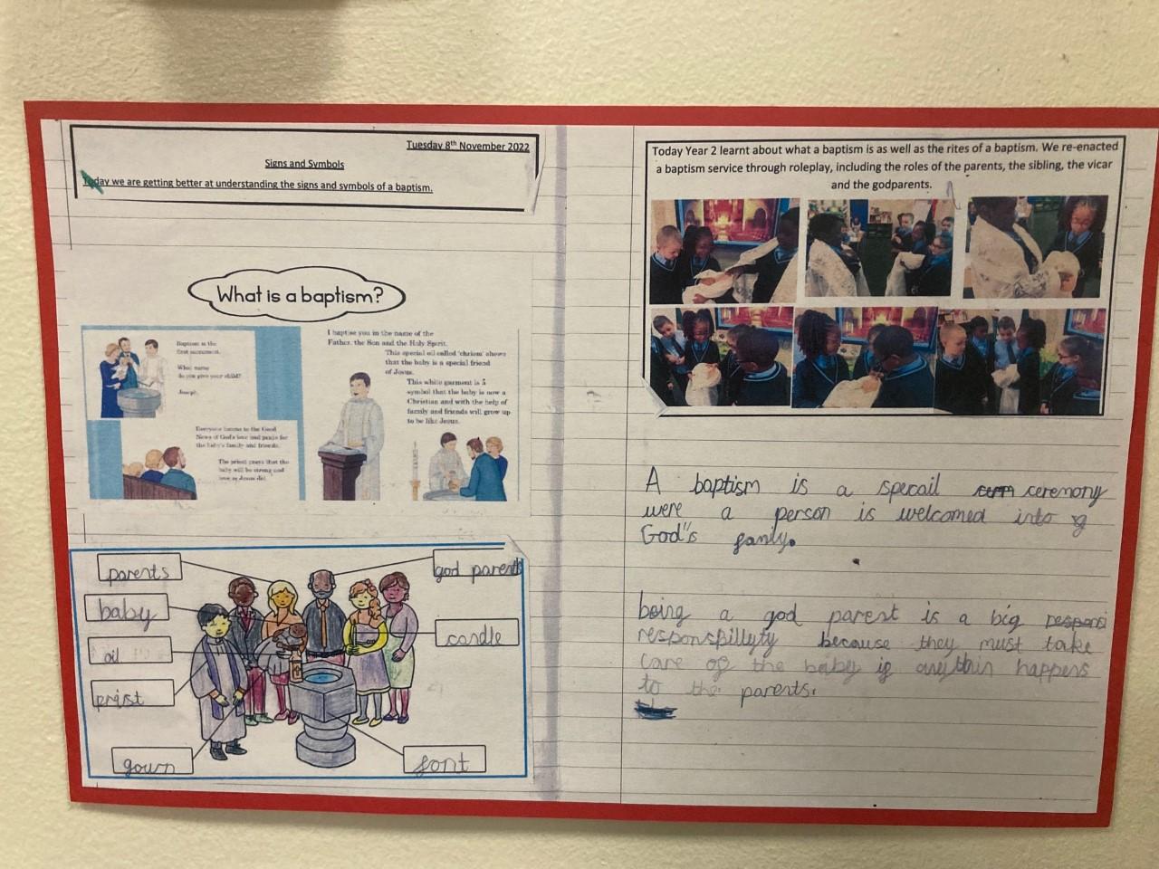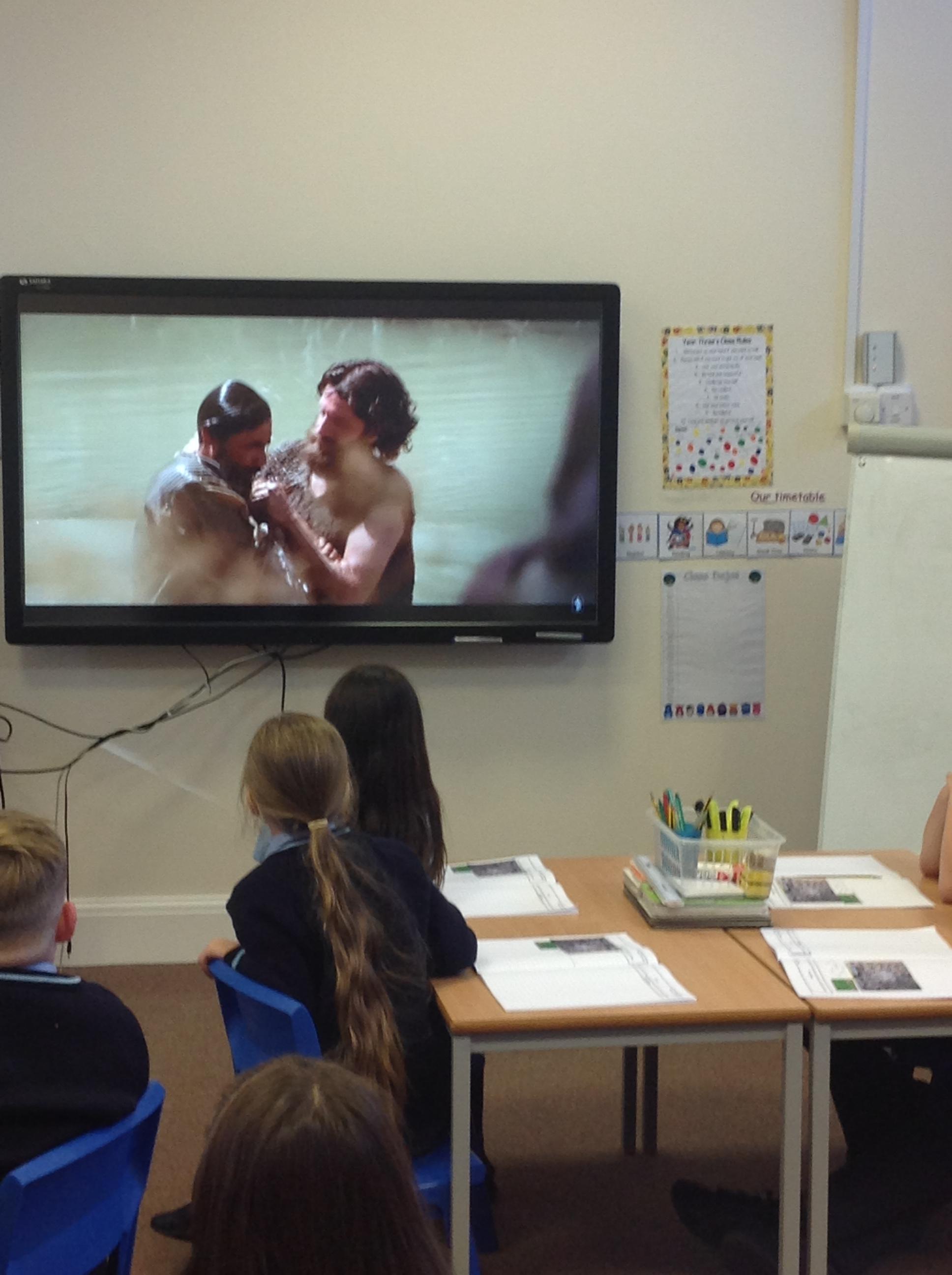 We then looked at Baptism as a special Sacrament where both our families, Godparents and ourselves make a promise to God. We compared the similarities and differences between Jesus' Baptism and a Baptism that would take place in a Church today.