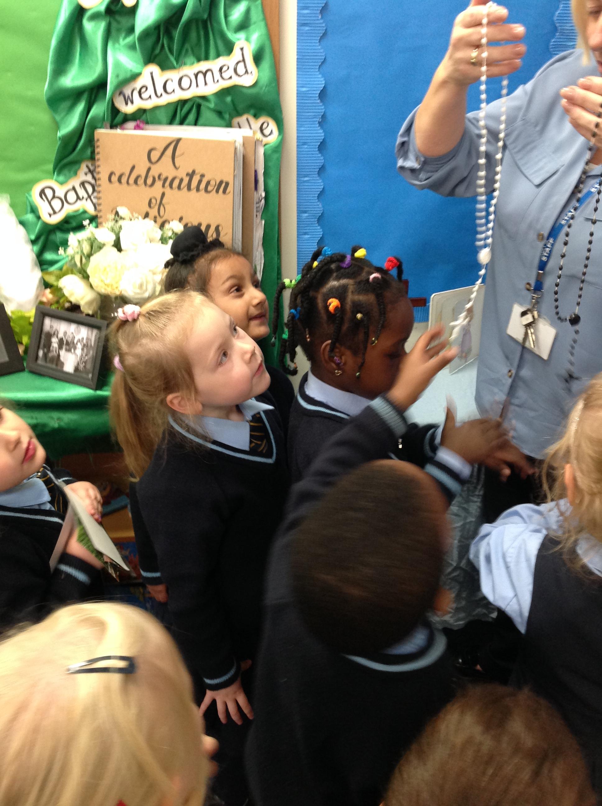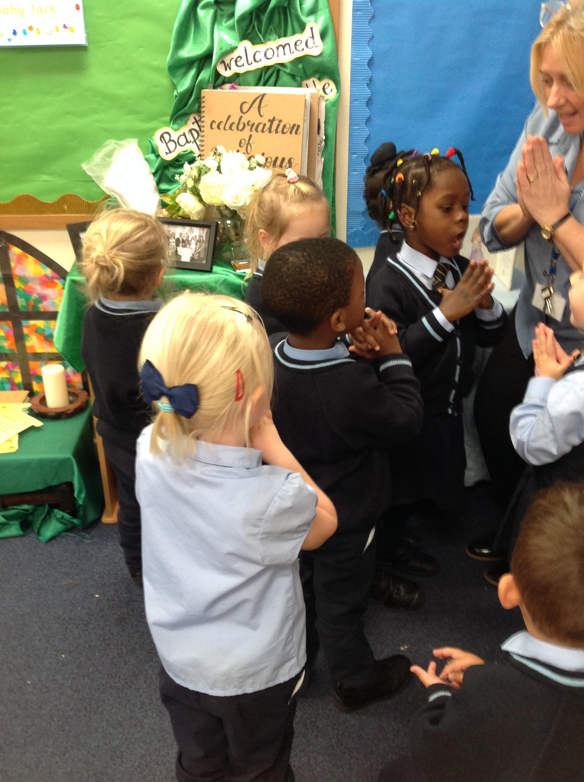Reception enjoyed role playing a baptism. We spoke about how a baptism welcomes people into God's family and talked about how objects are used throughout this celebration.