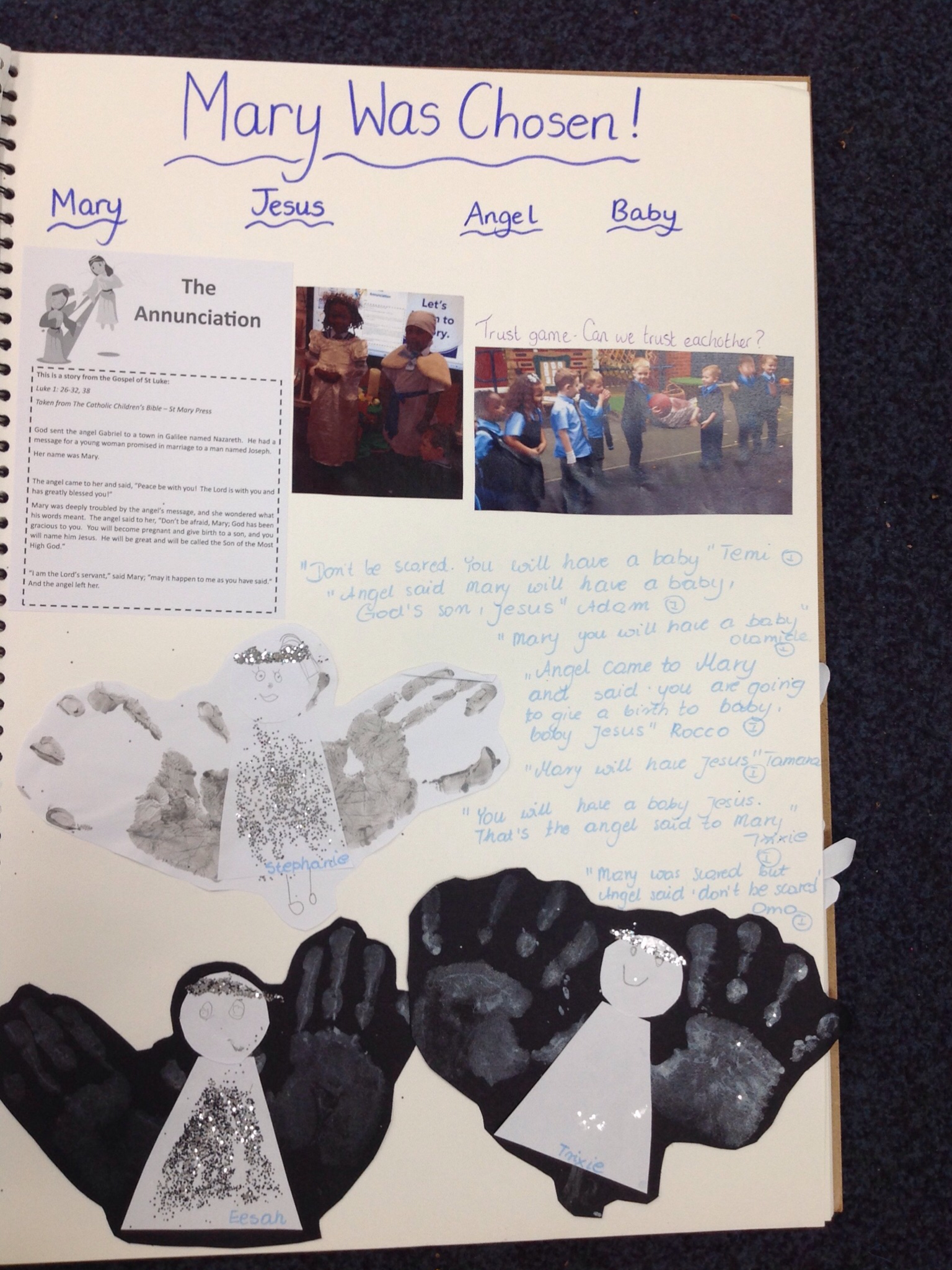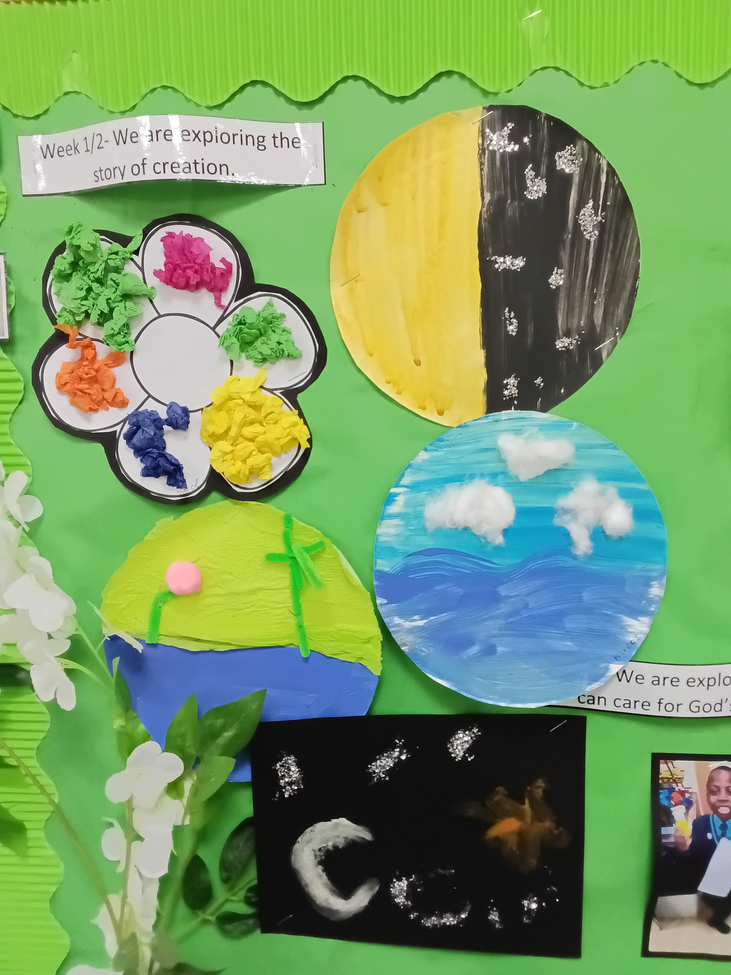 Our RE topic is 'Myself'. We have been developing an understanding of our first and family names. We also discussed happy times we have shared with our families.