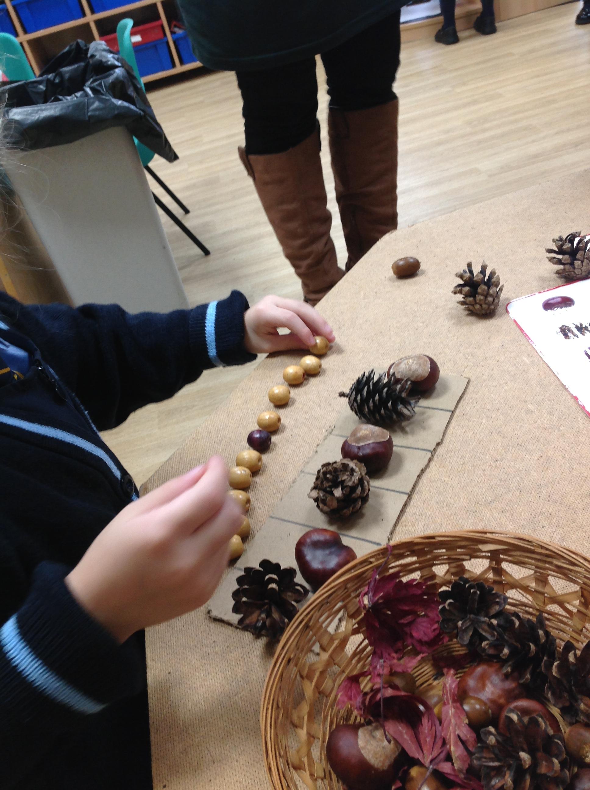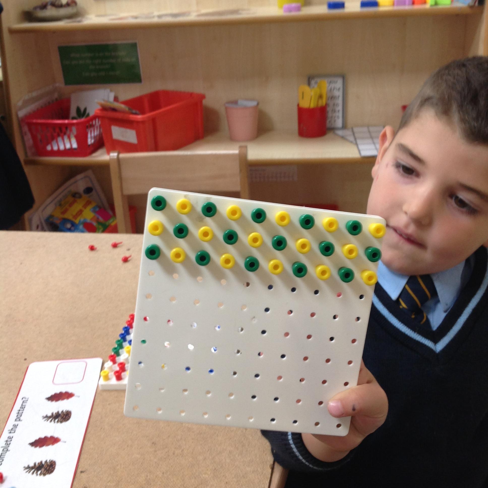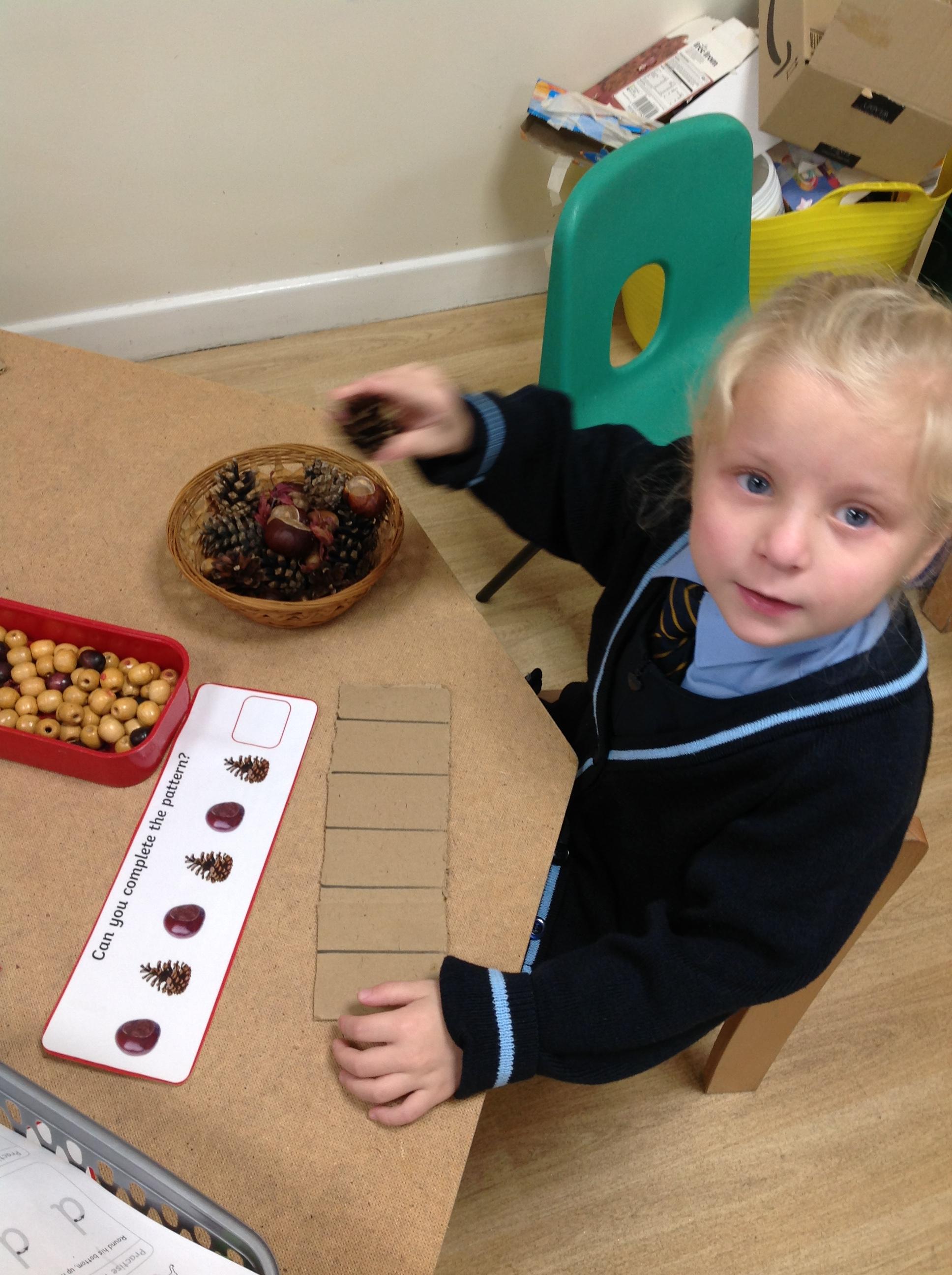 Exploring Patterns - In maths reception children have been exploring patterns. Children have been making patterns using natural materials and also from different objects in the school!